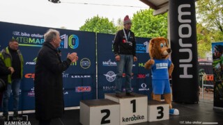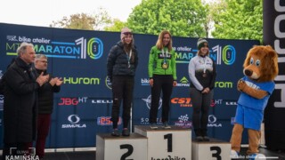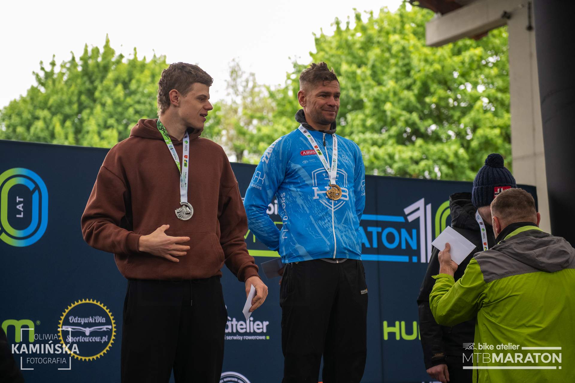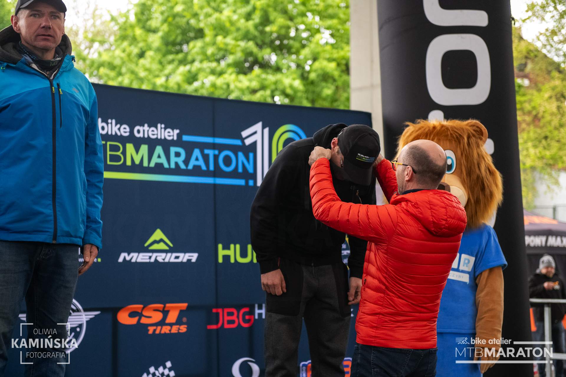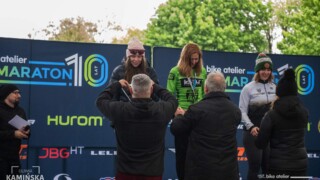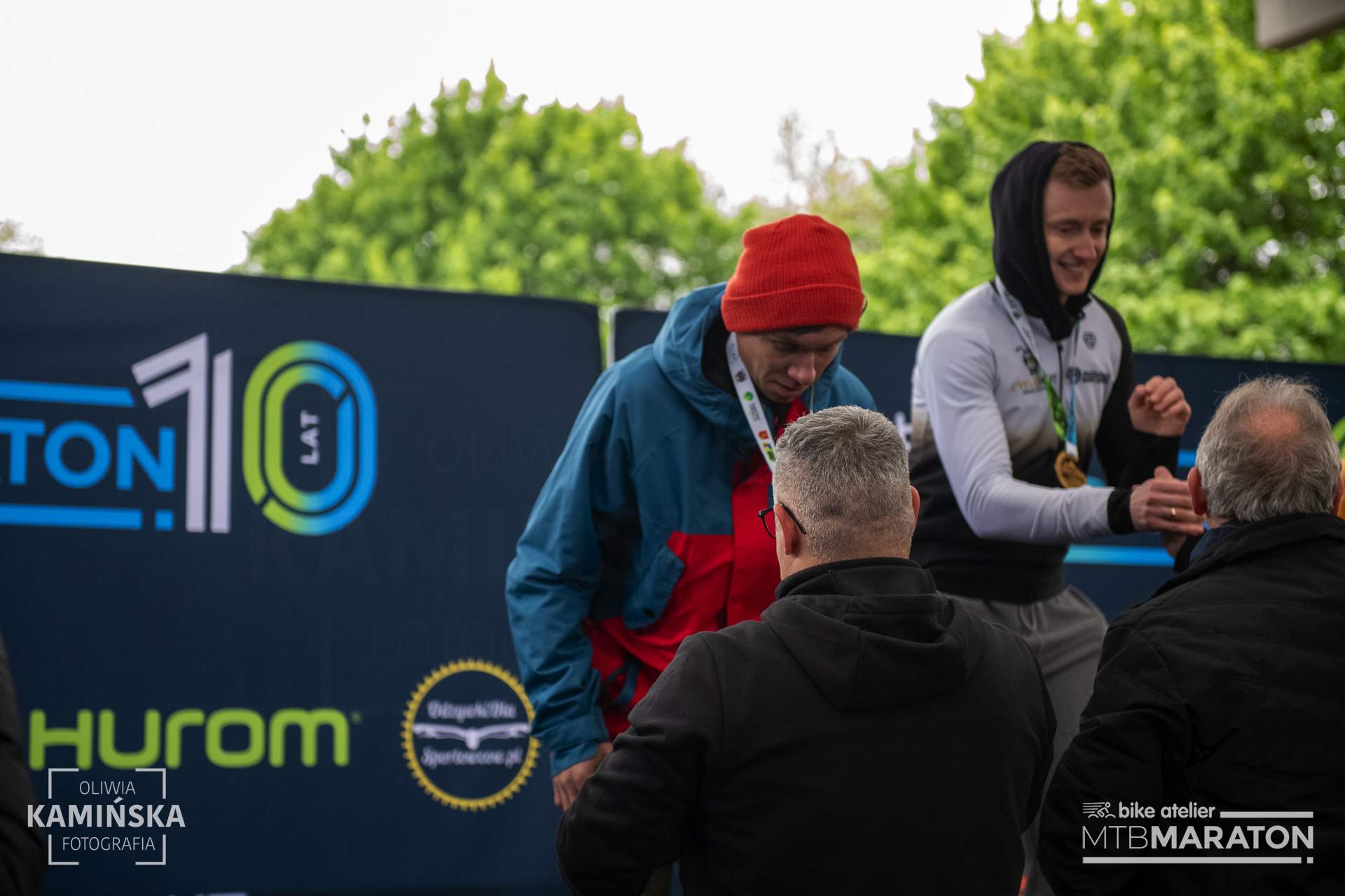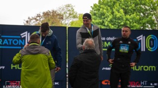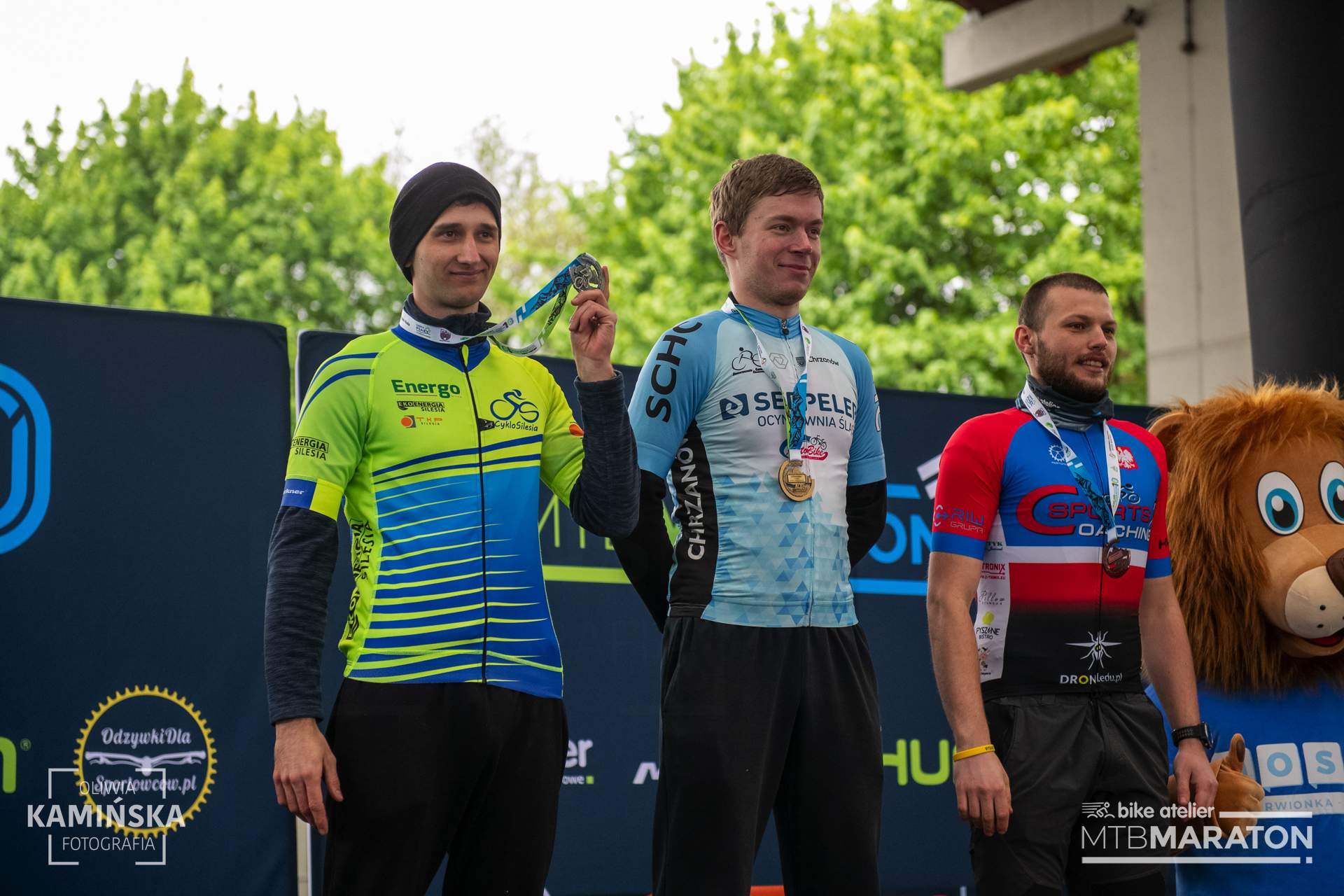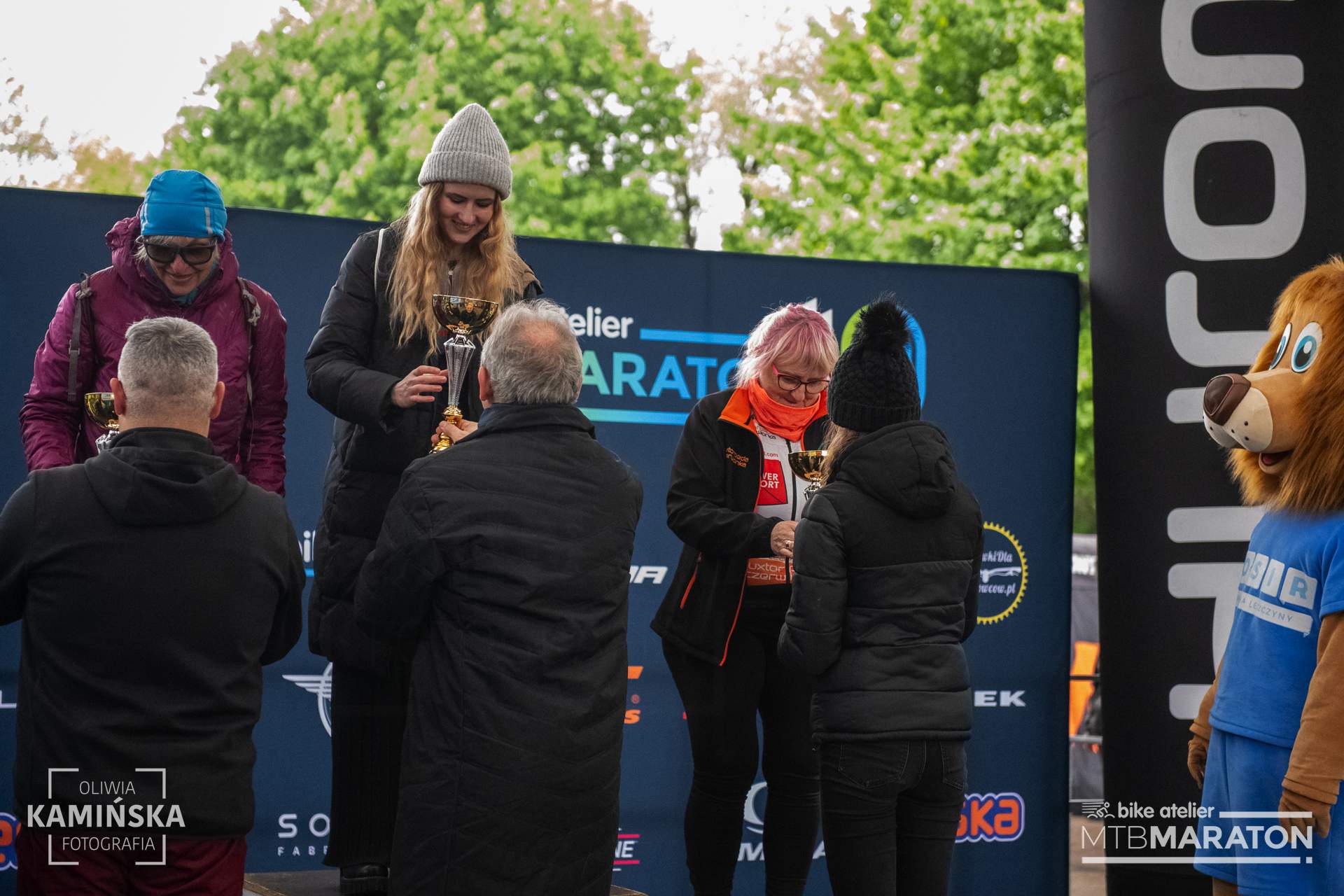 Ceremonie dekoracji najszybszych z najdzielniejszych zawodników, którzy wystartowali mimo surowych warunków na trasie maratonu w Czerwionce-Leszczynach. Foto: Oliwia Kamińska Fotografia