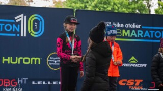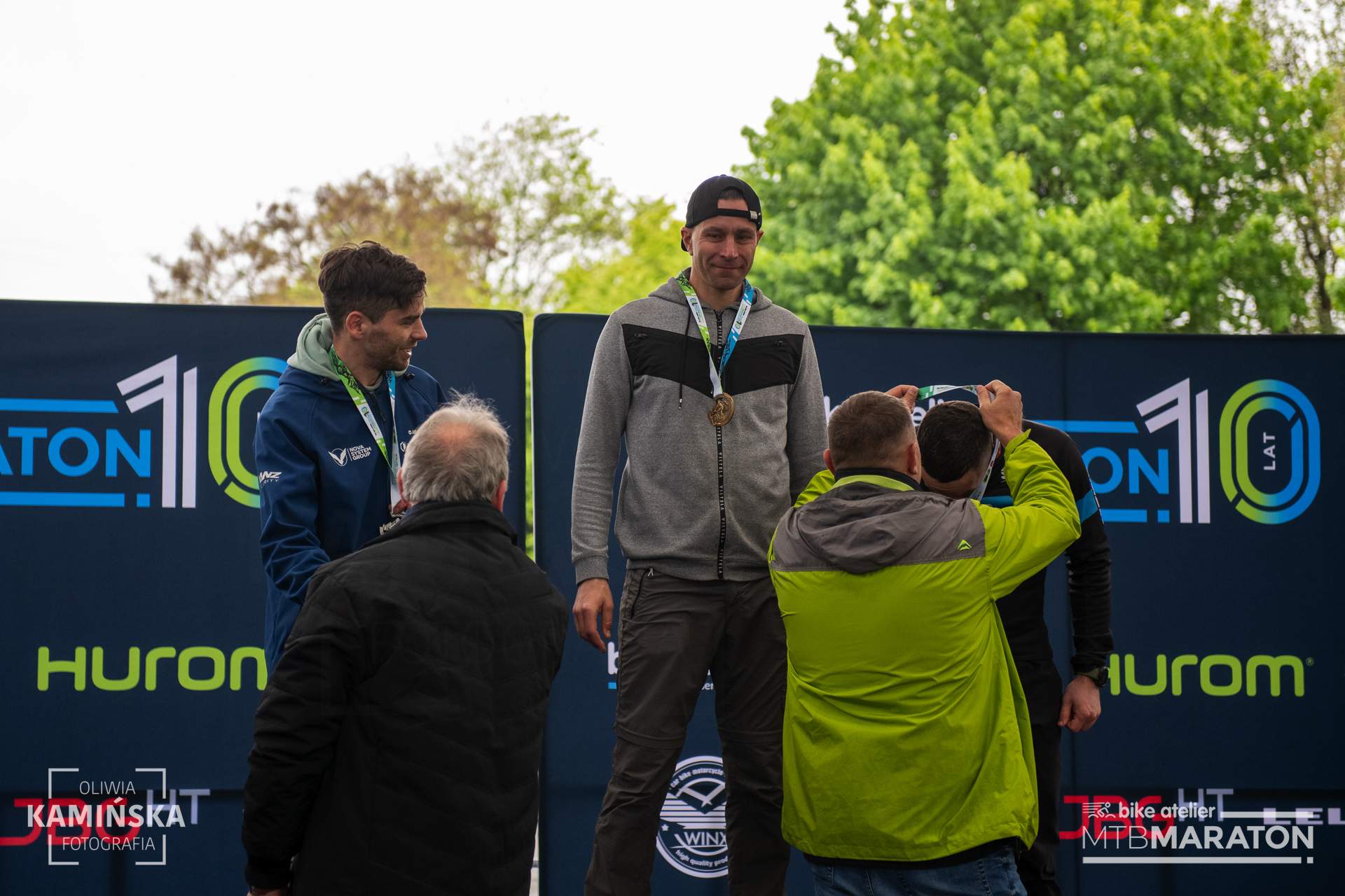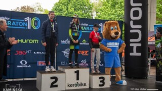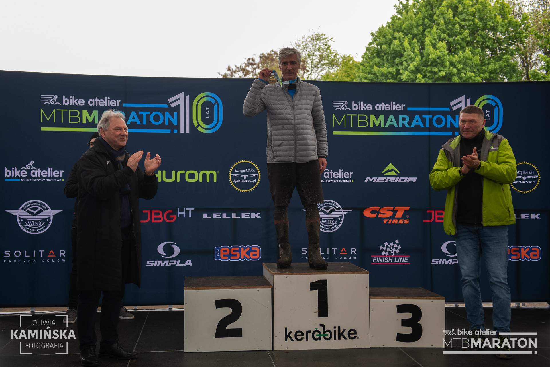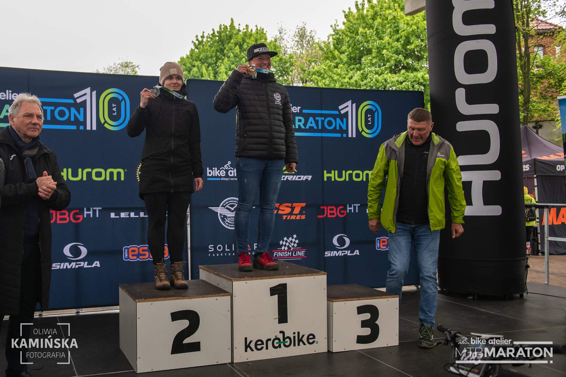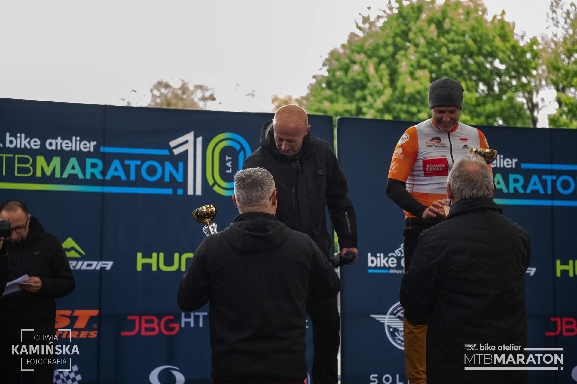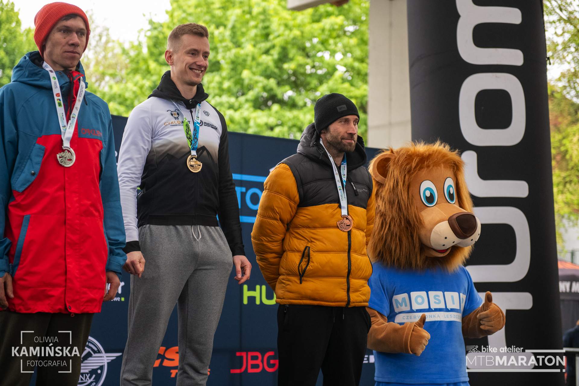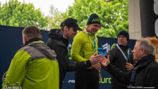 Ceremonie dekoracji najszybszych z najdzielniejszych zawodników, którzy wystartowali mimo surowych warunków na trasie maratonu w Czerwionce-Leszczynach. Foto: Oliwia Kamińska Fotografia