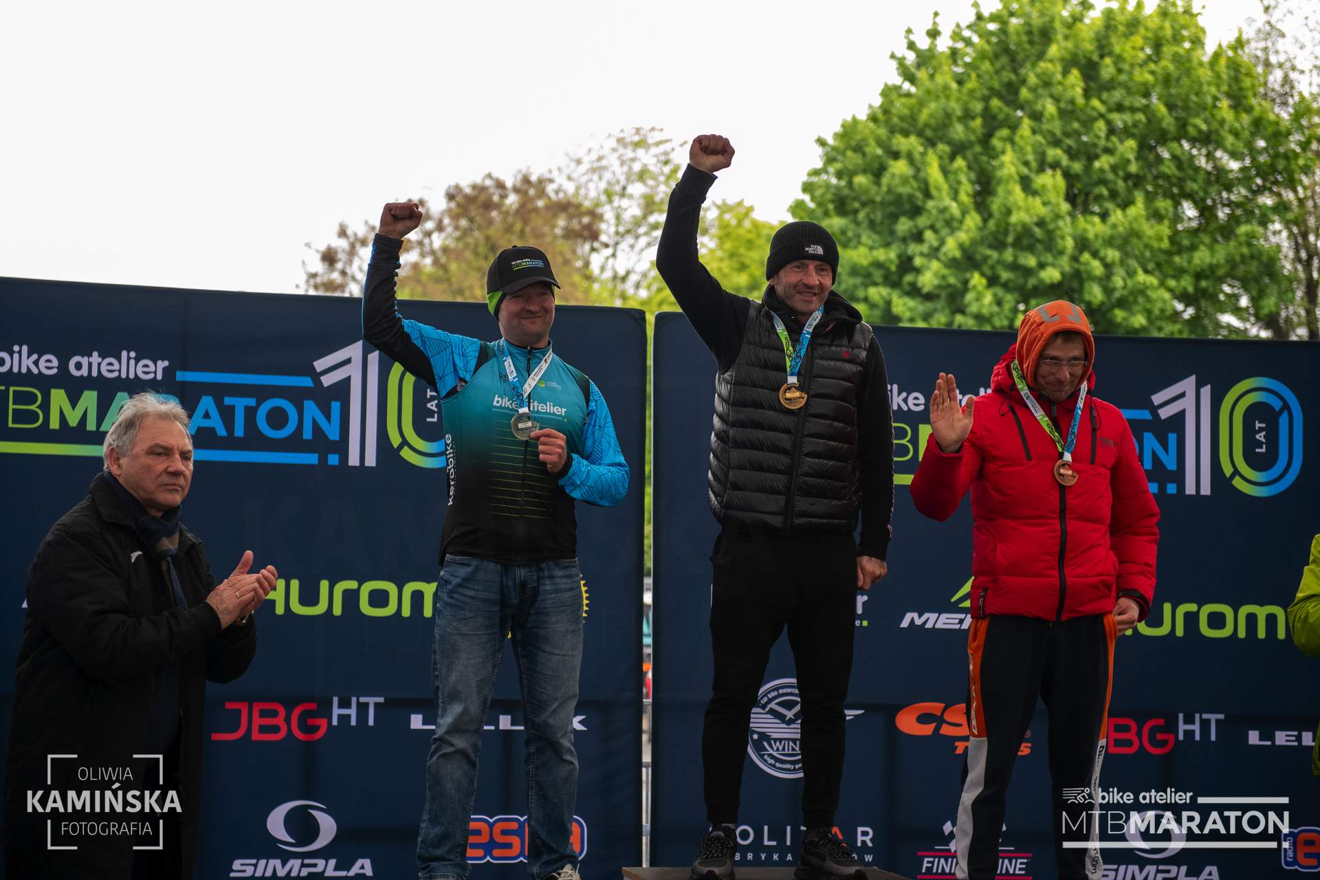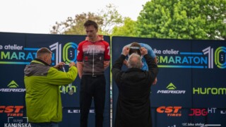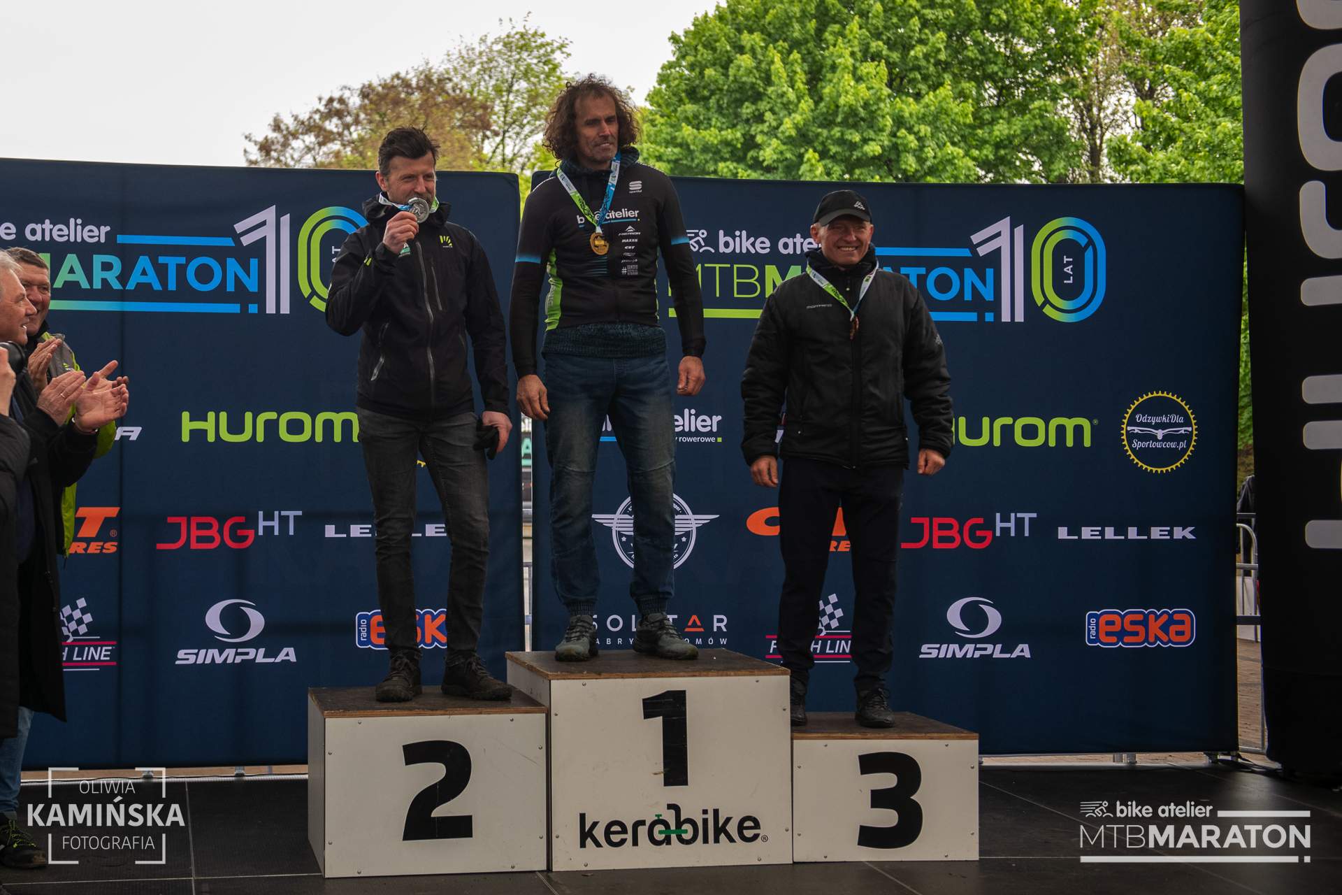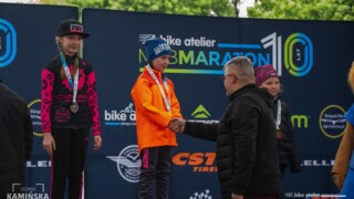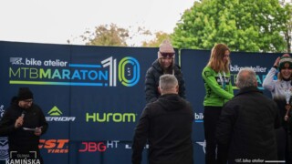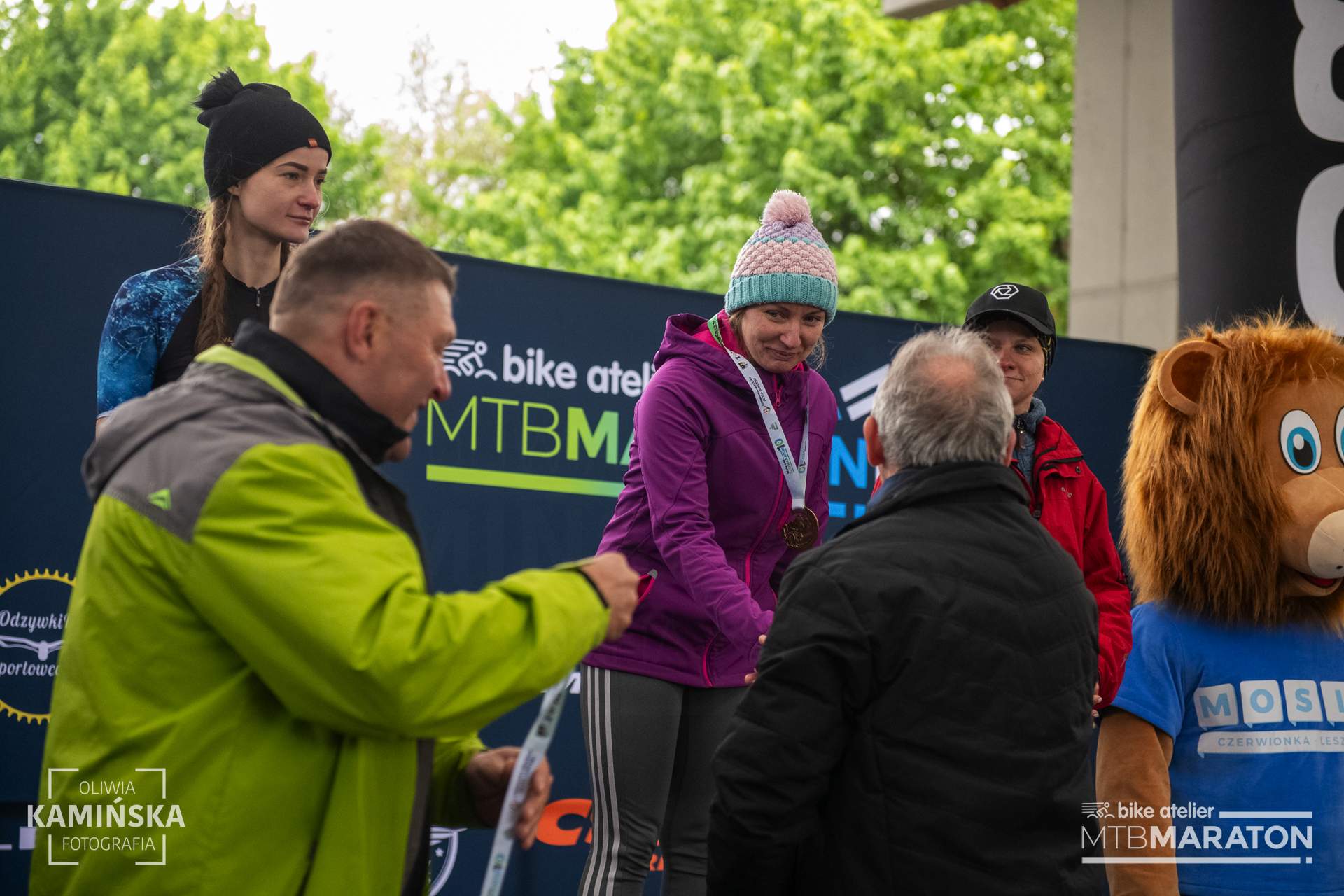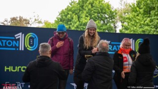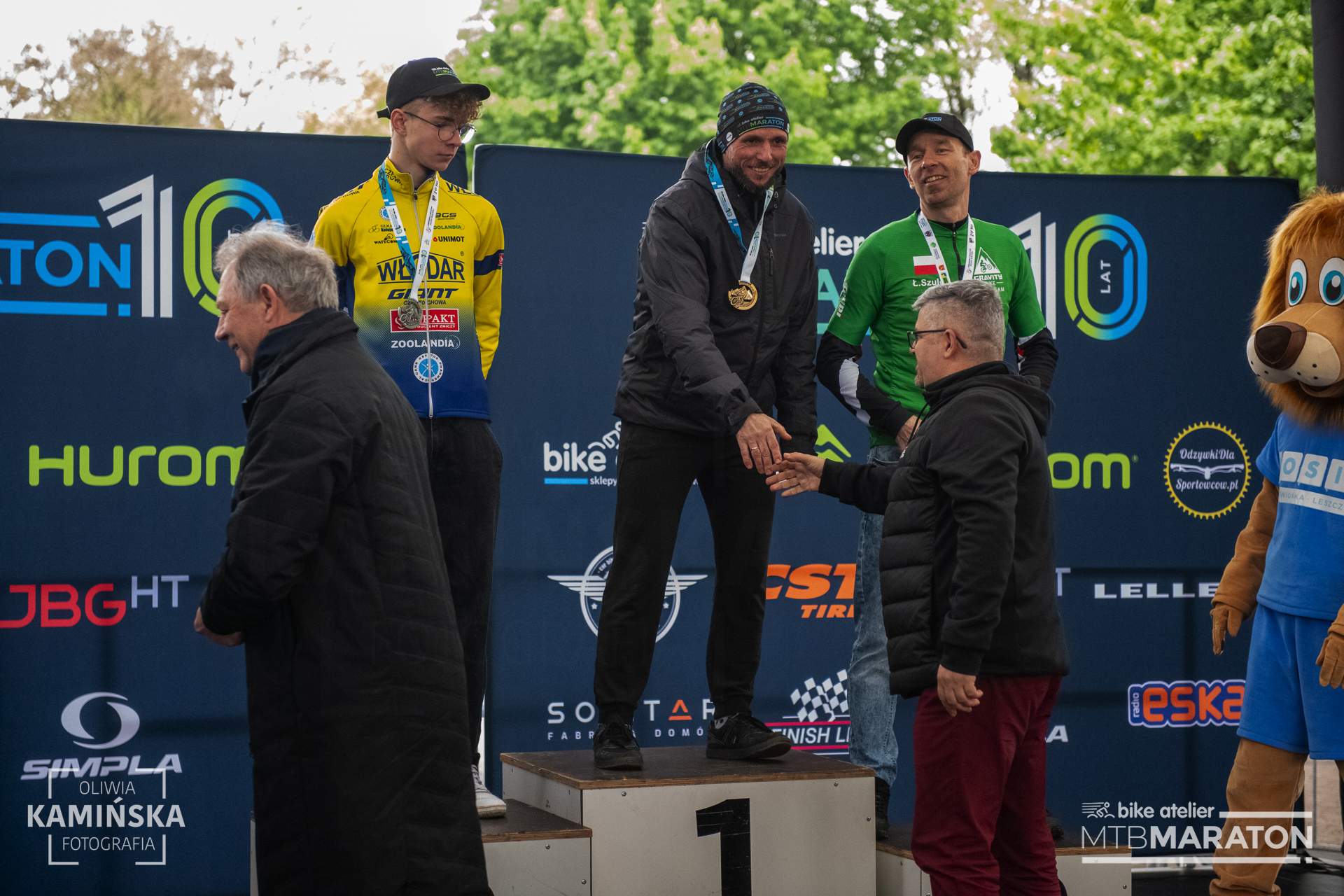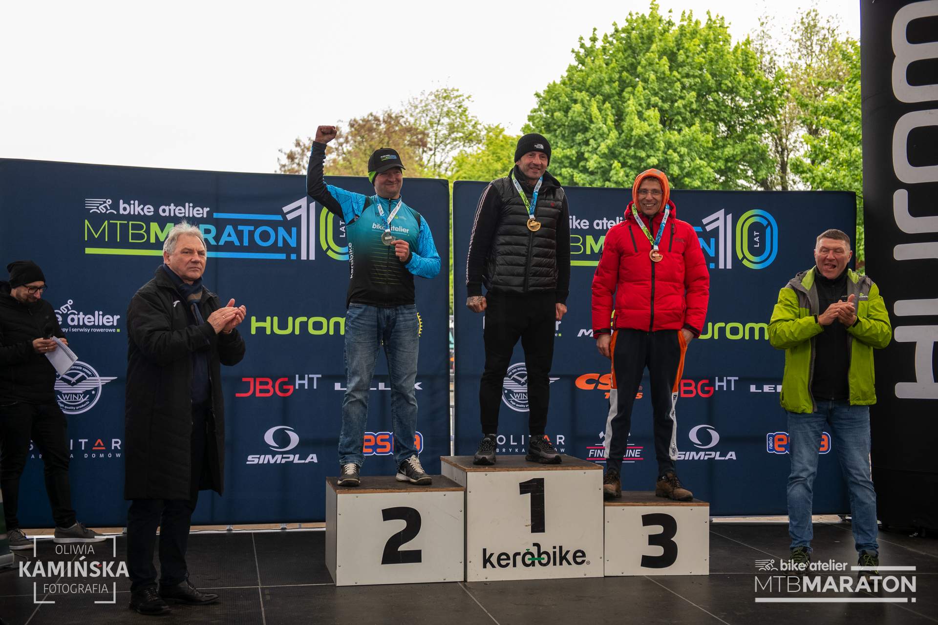 Ceremonie dekoracji najszybszych z najdzielniejszych zawodników, którzy wystartowali mimo surowych warunków na trasie maratonu w Czerwionce-Leszczynach. Foto: Oliwia Kamińska Fotografia
