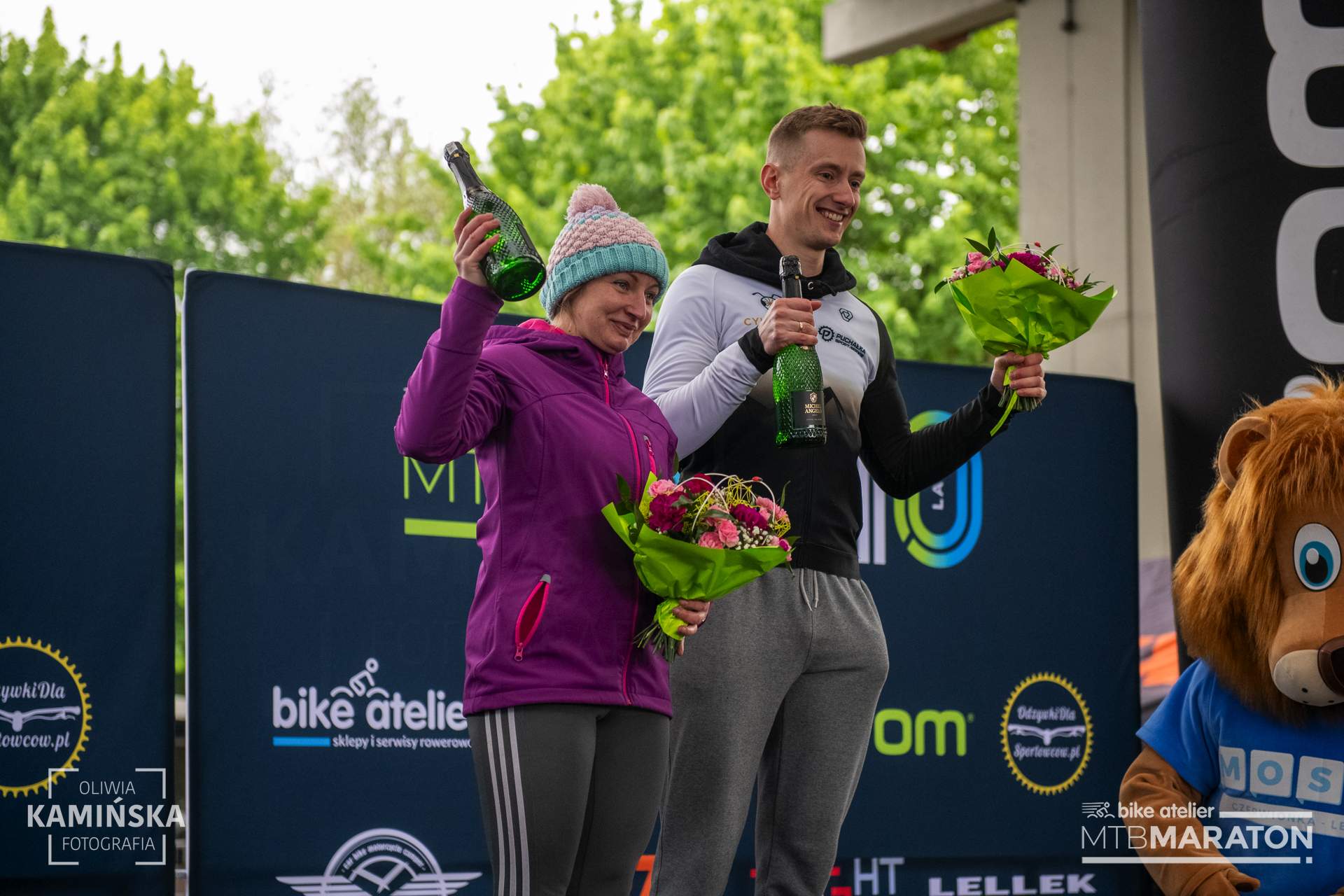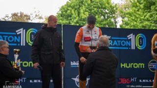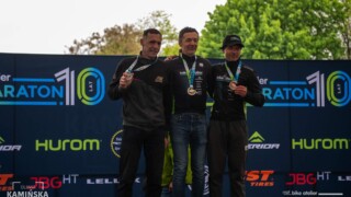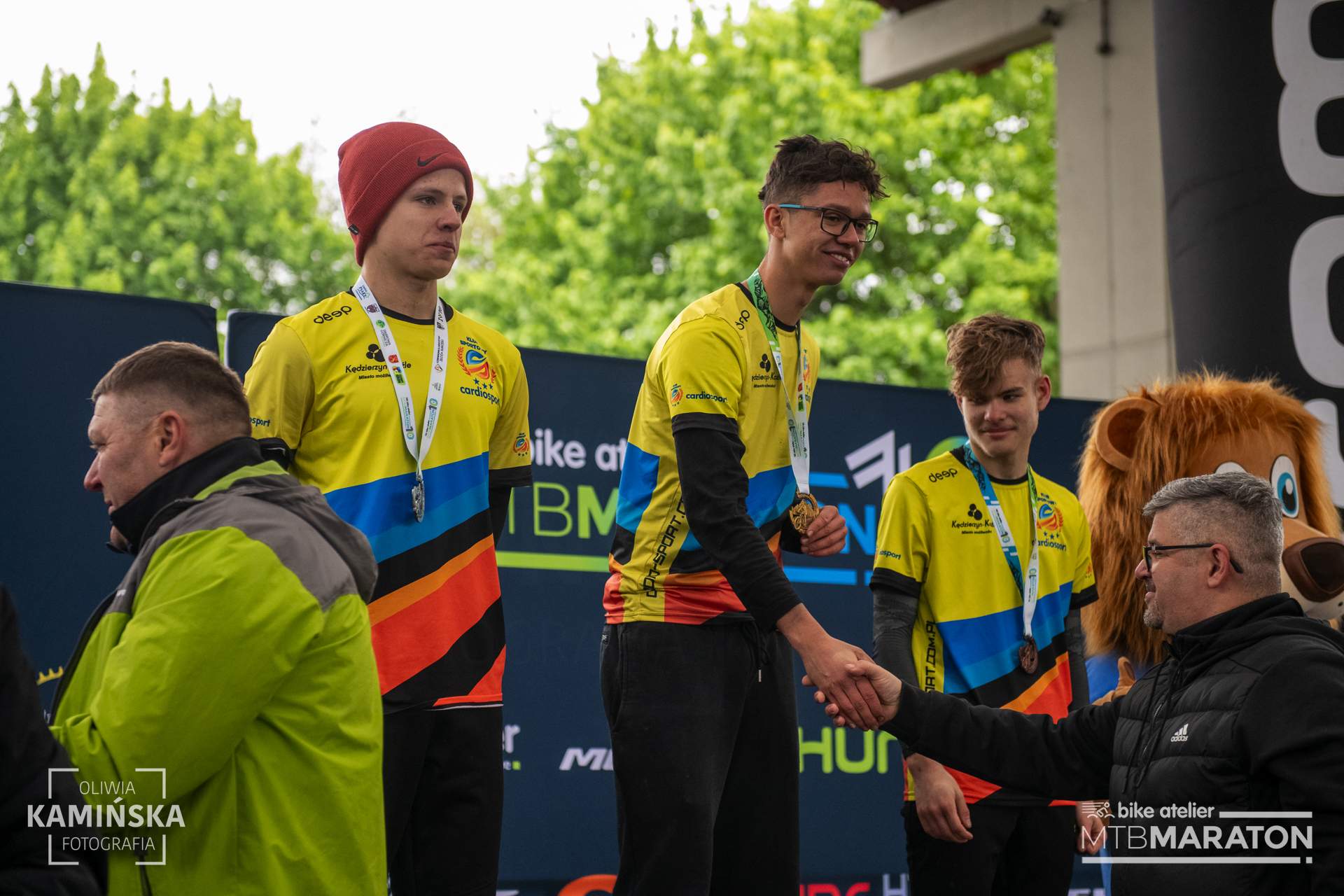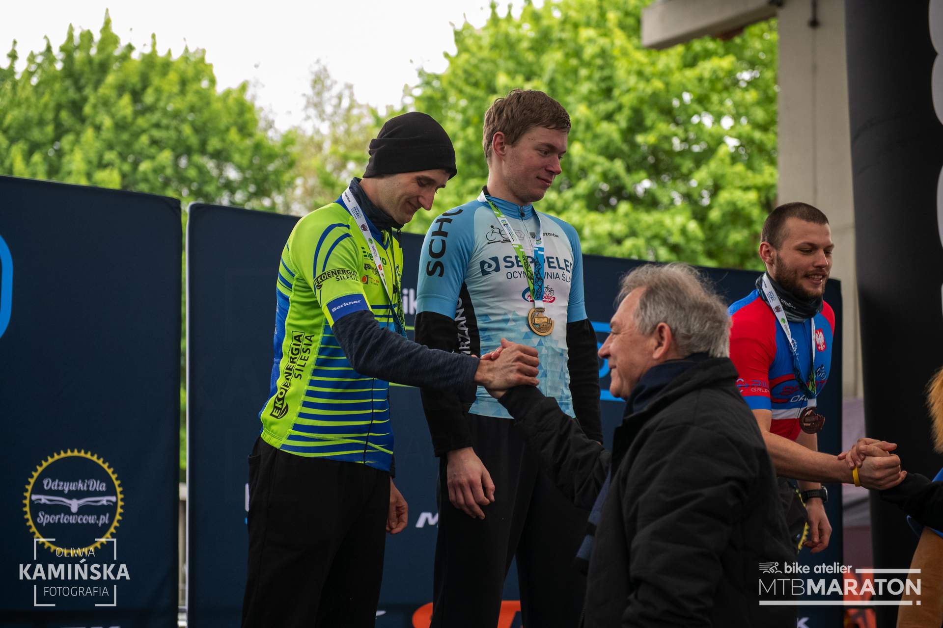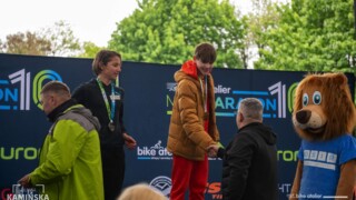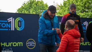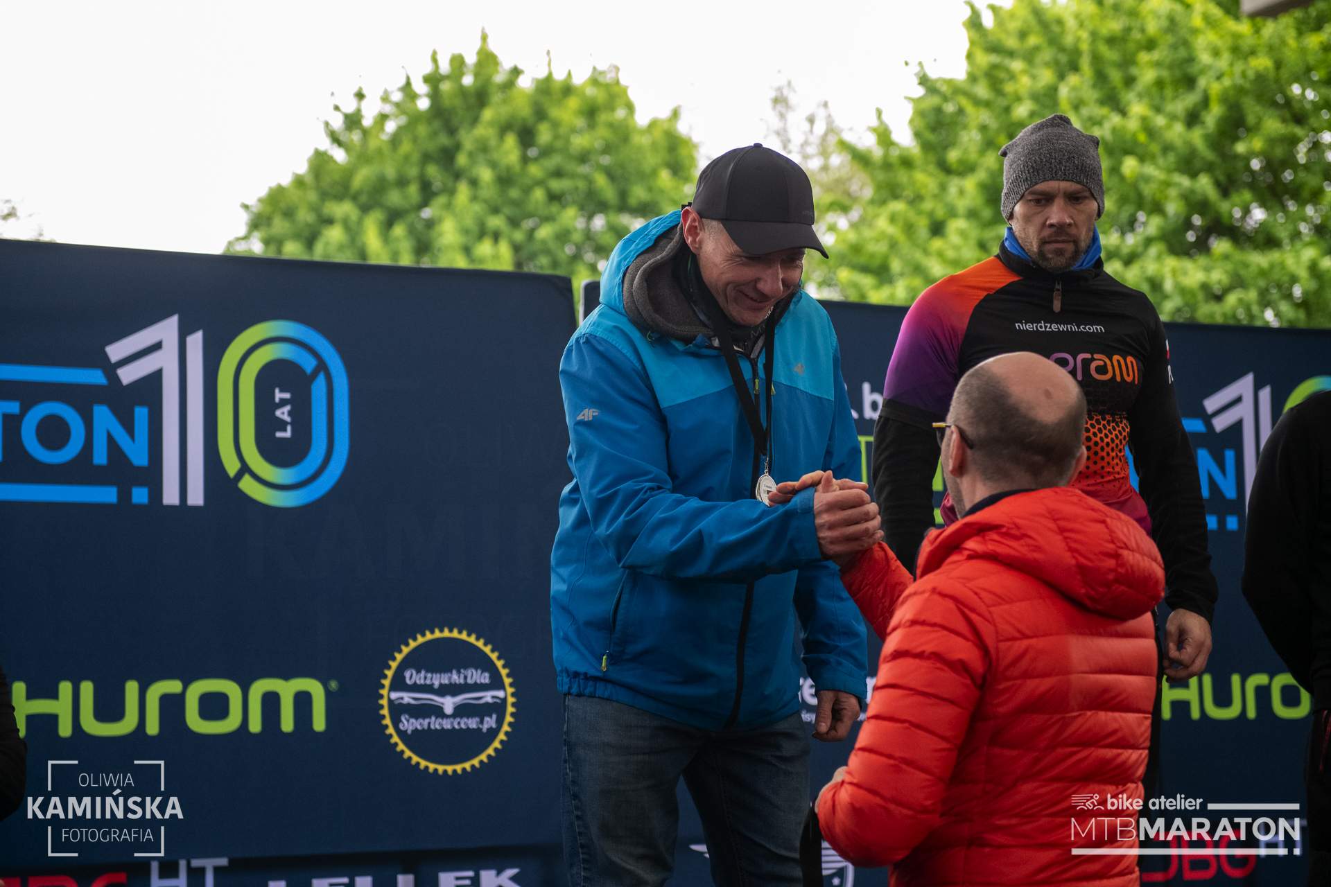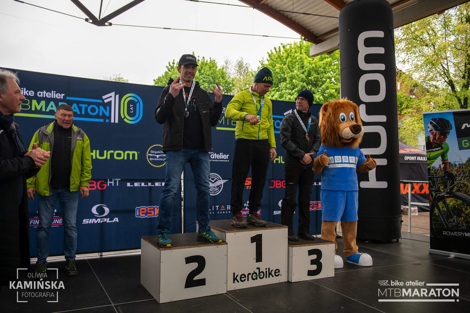 Ceremonie dekoracji najszybszych z najdzielniejszych zawodników, którzy wystartowali mimo surowych warunków na trasie maratonu w Czerwionce-Leszczynach. Foto: Oliwia Kamińska Fotografia
