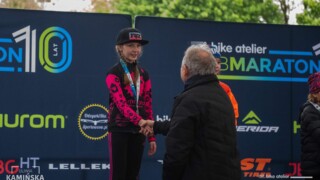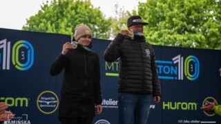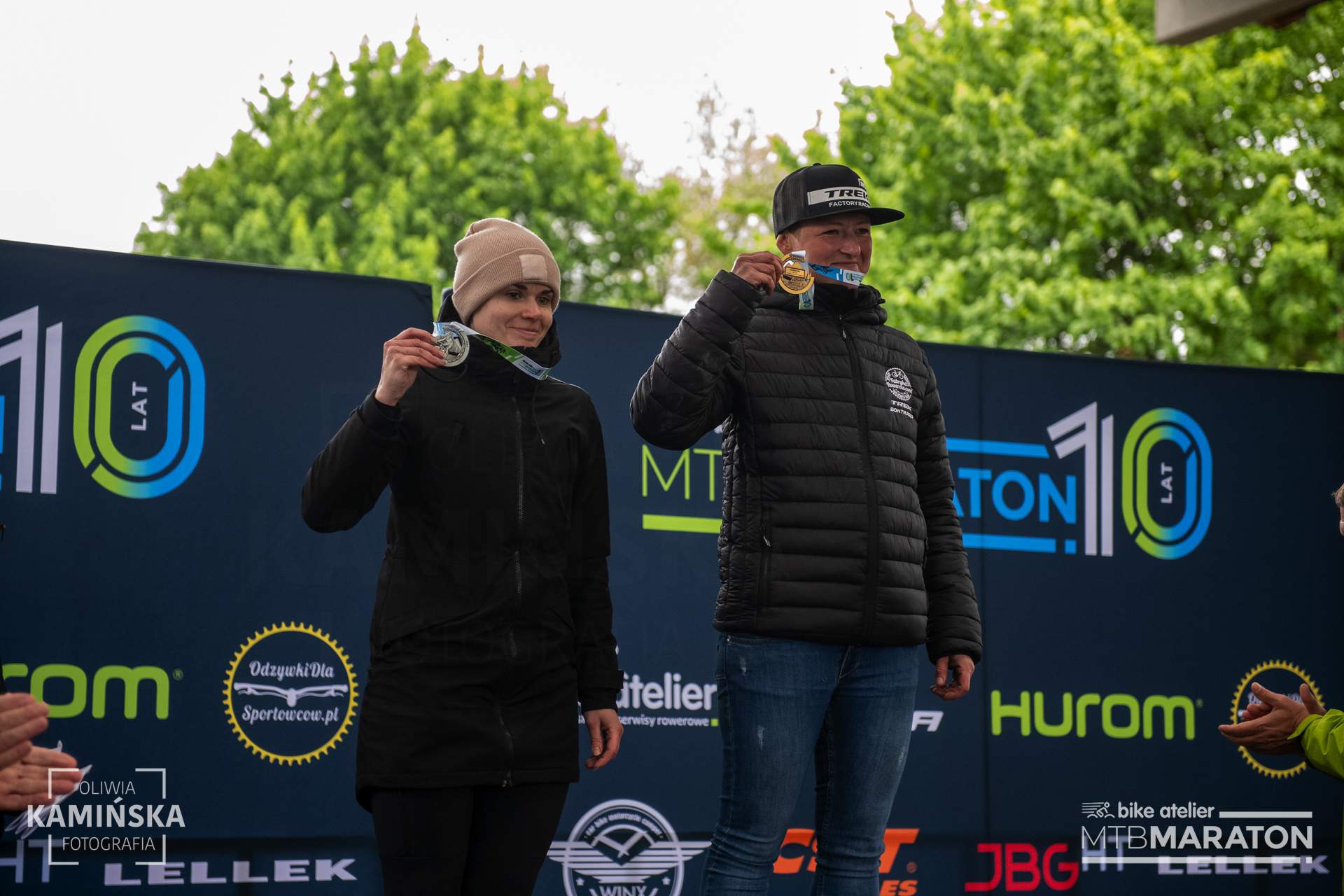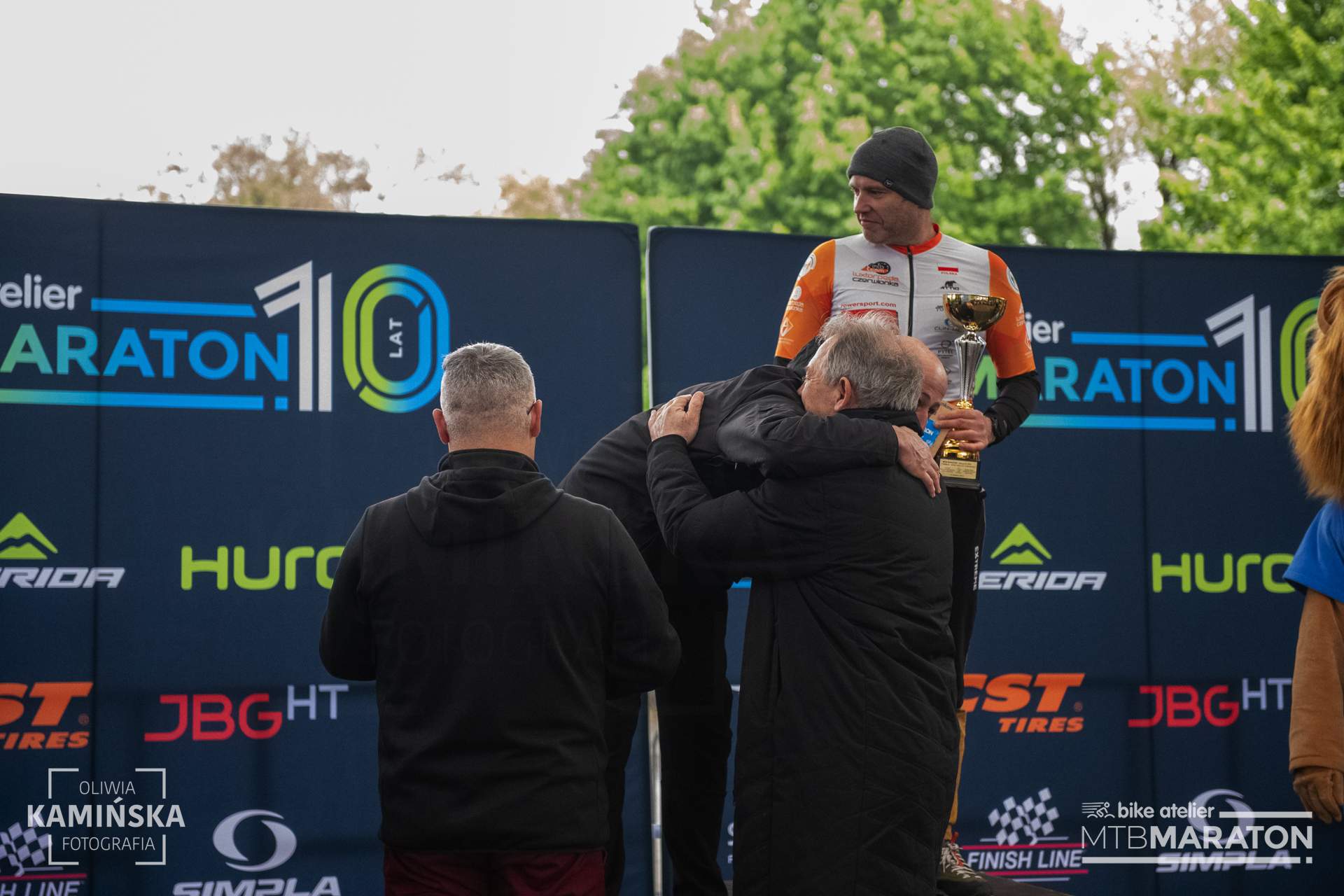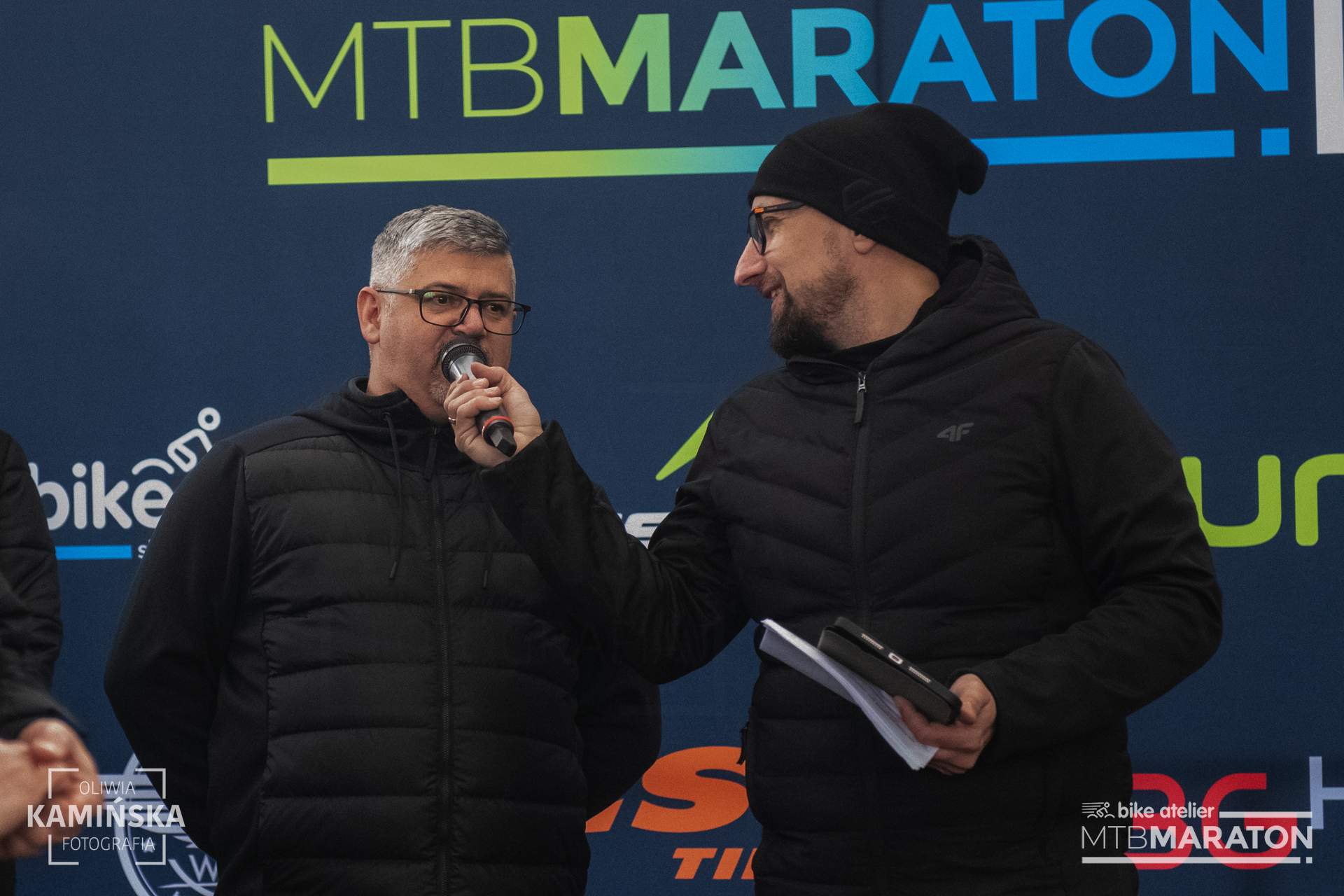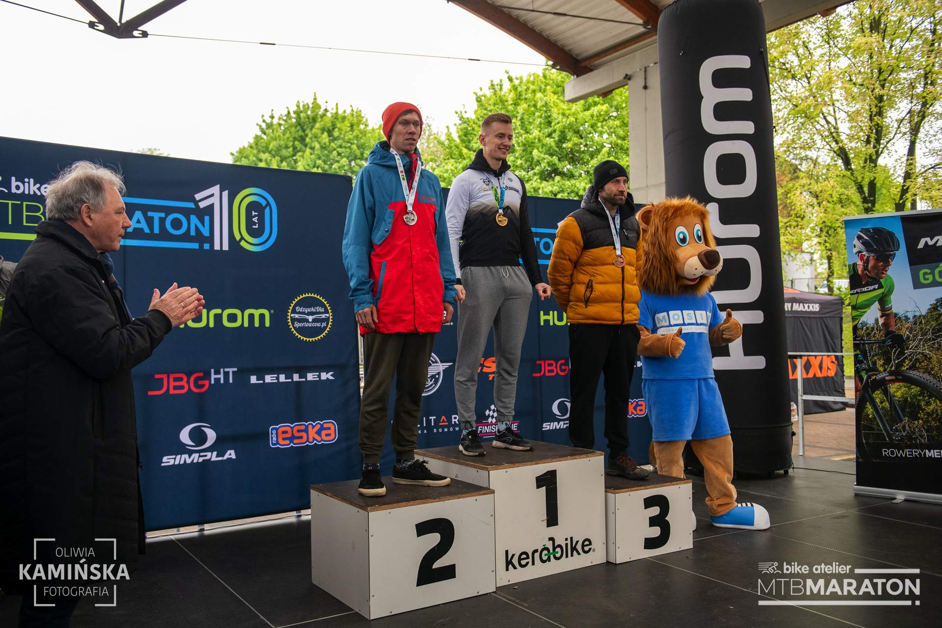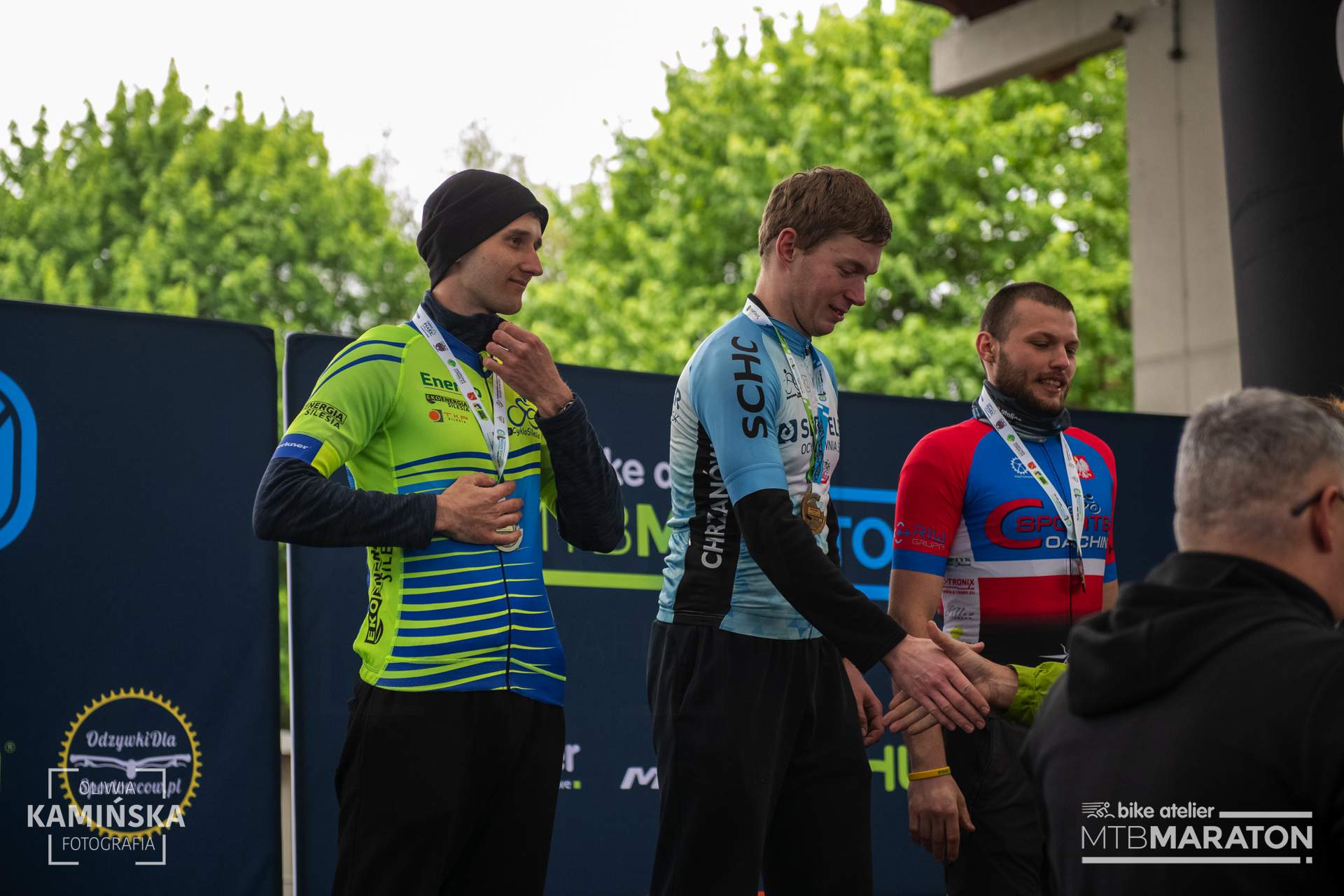 Ceremonie dekoracji najszybszych z najdzielniejszych zawodników, którzy wystartowali mimo surowych warunków na trasie maratonu w Czerwionce-Leszczynach. Foto: Oliwia Kamińska Fotografia