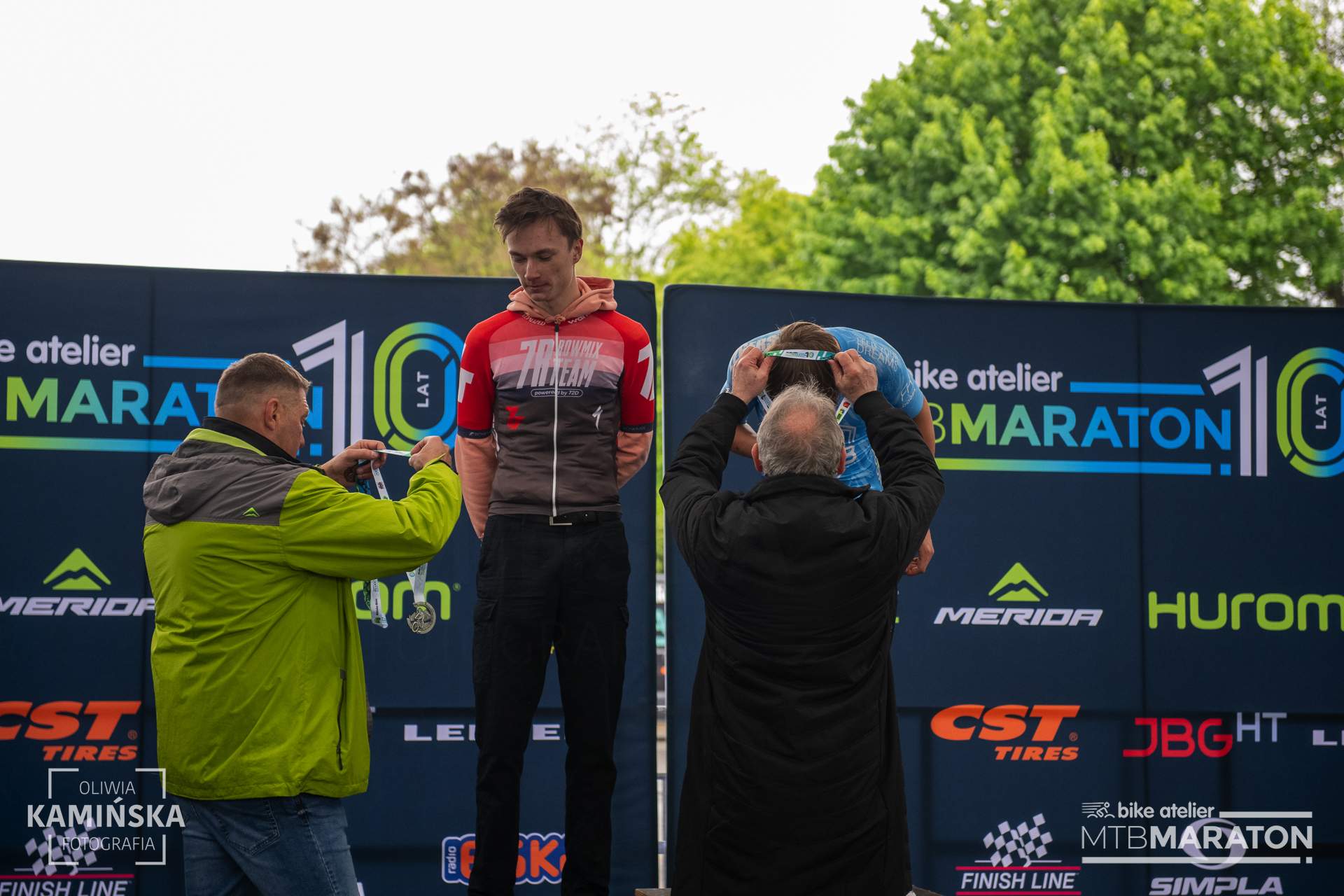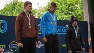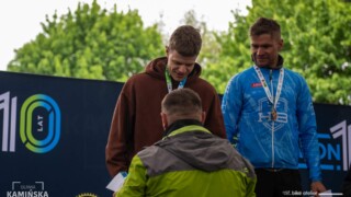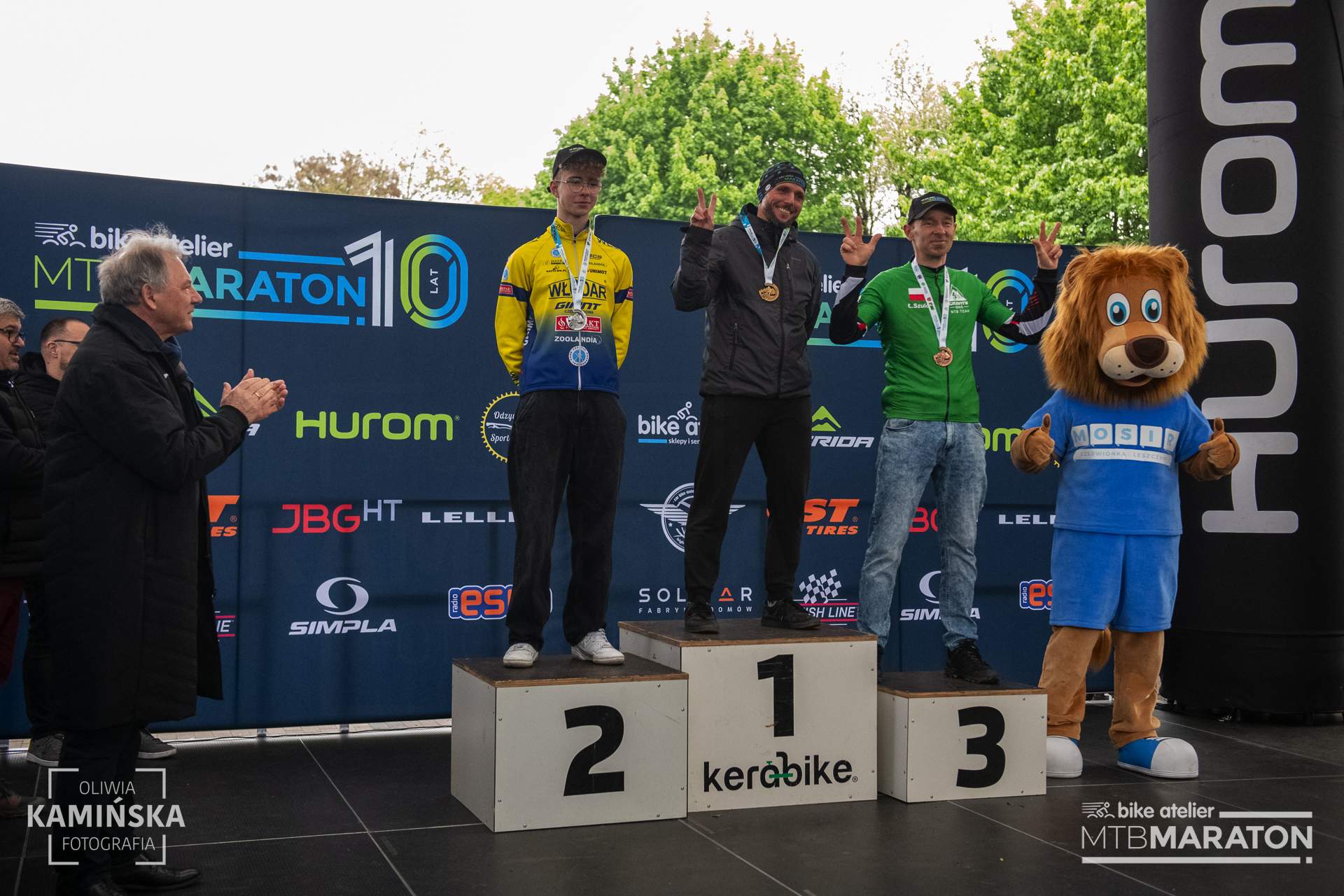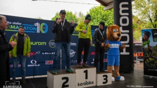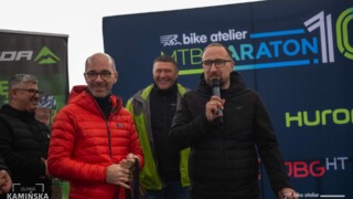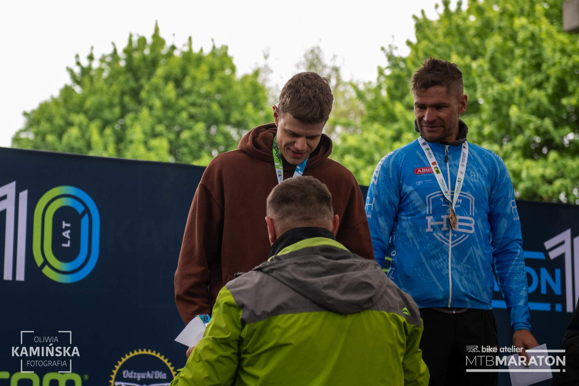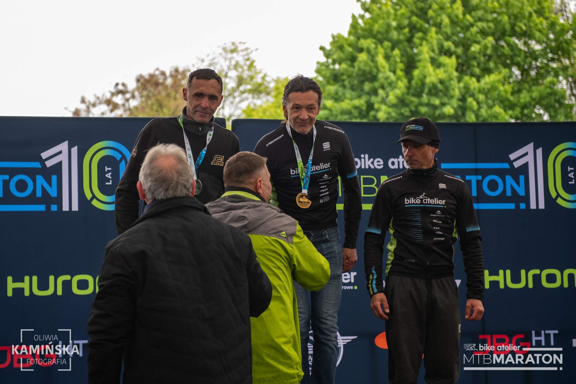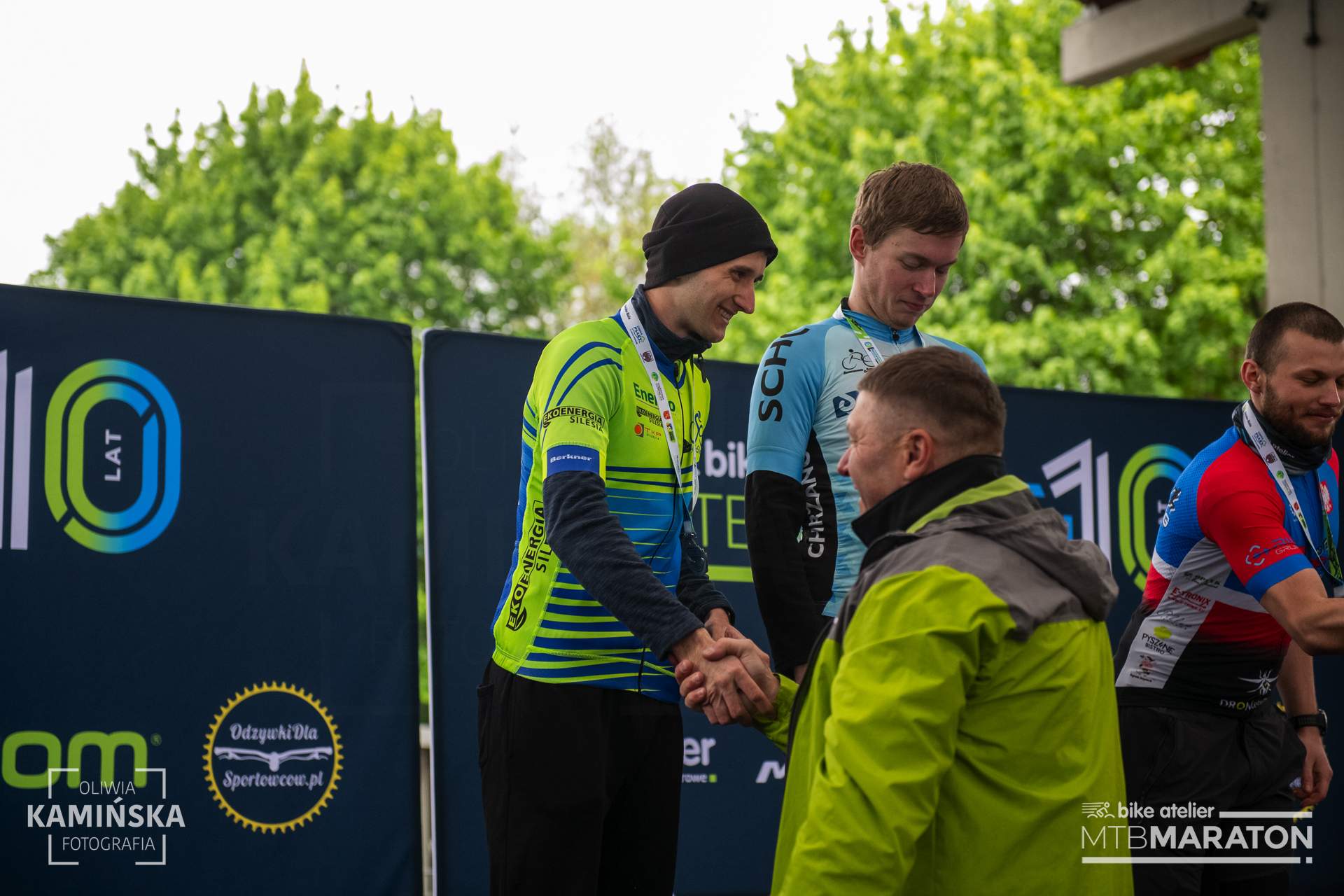 Ceremonie dekoracji najszybszych z najdzielniejszych zawodników, którzy wystartowali mimo surowych warunków na trasie maratonu w Czerwionce-Leszczynach. Foto: Oliwia Kamińska Fotografia