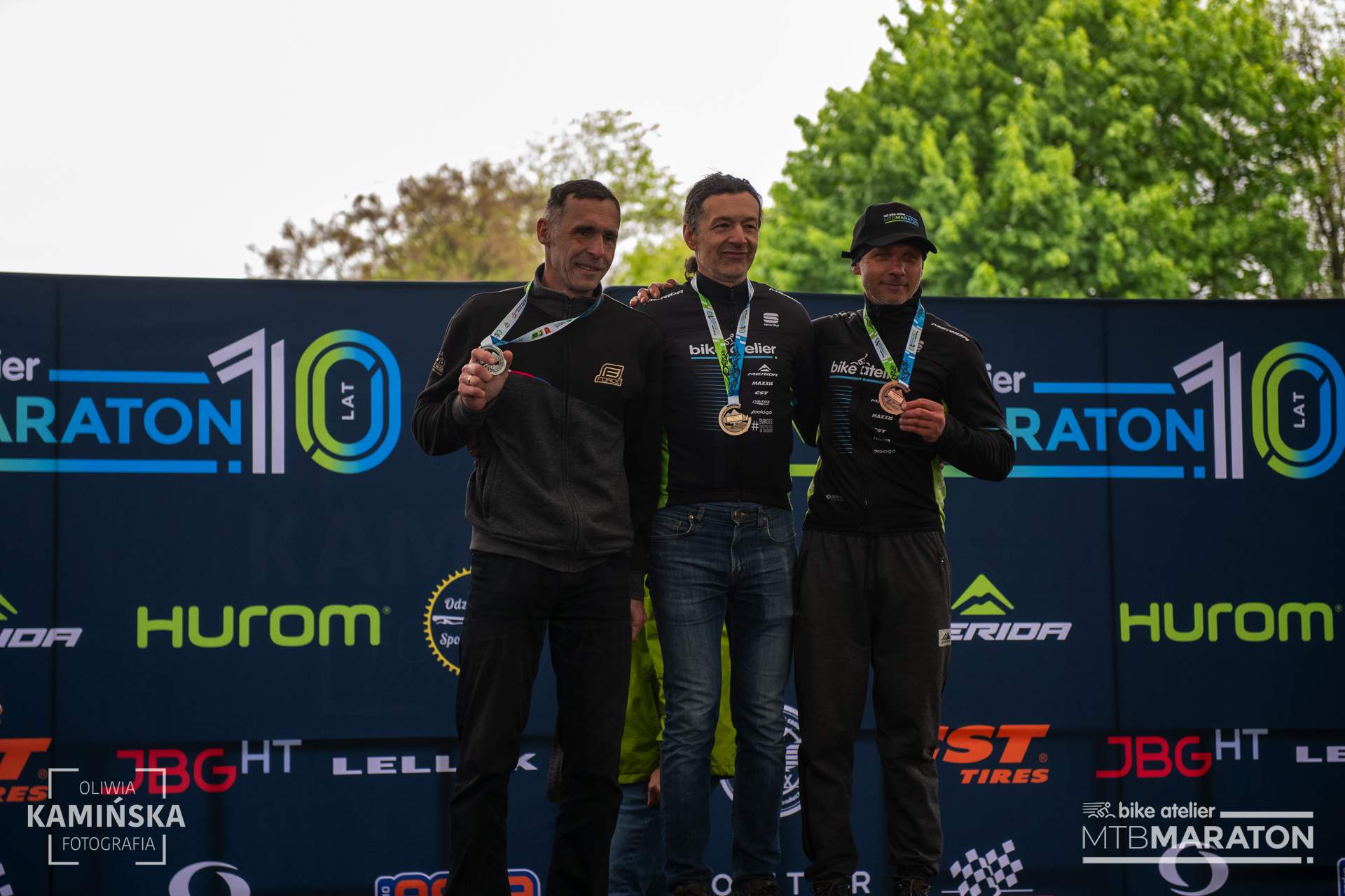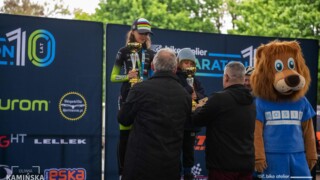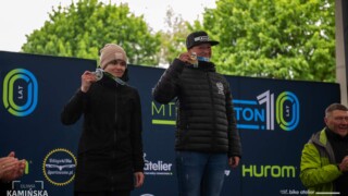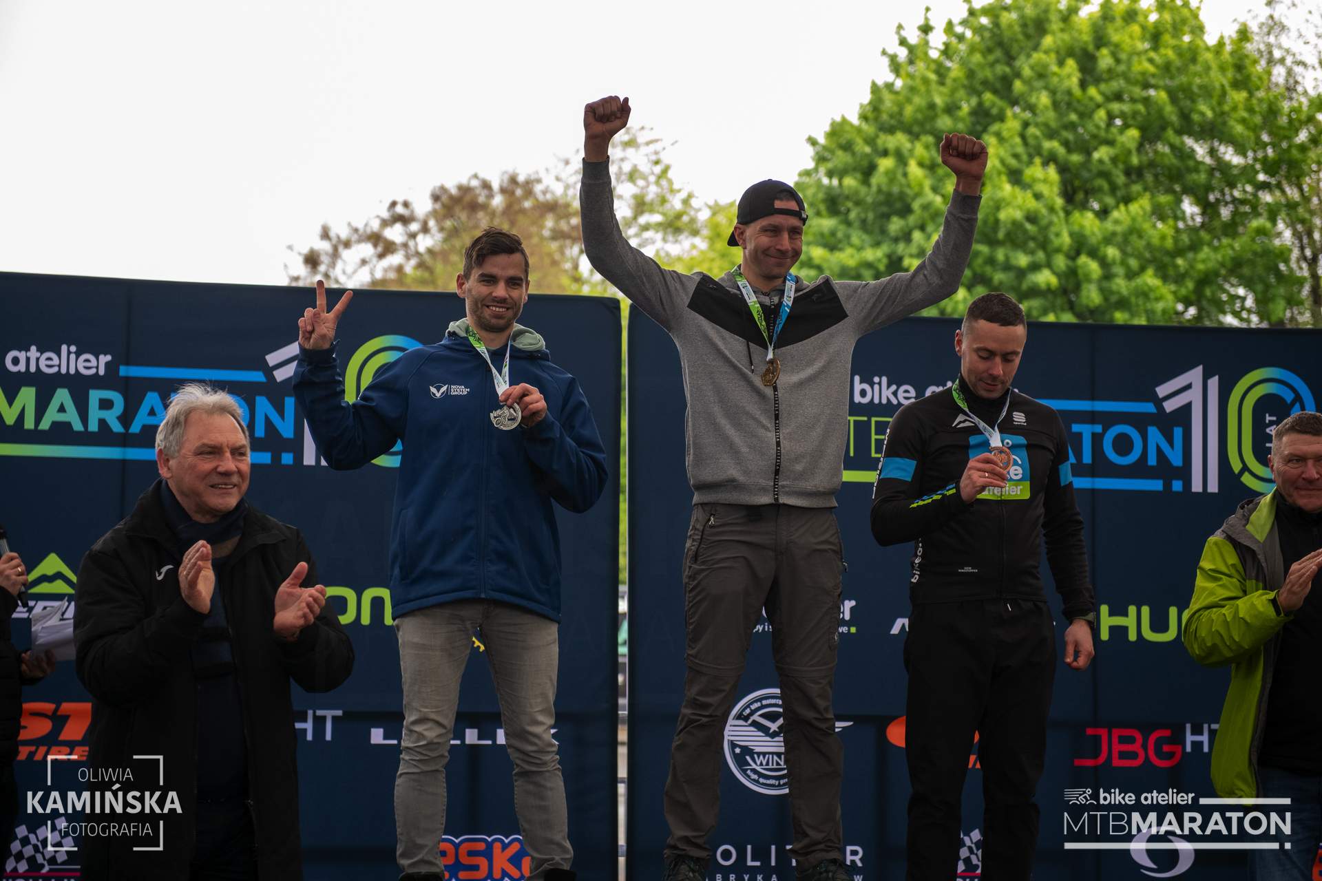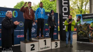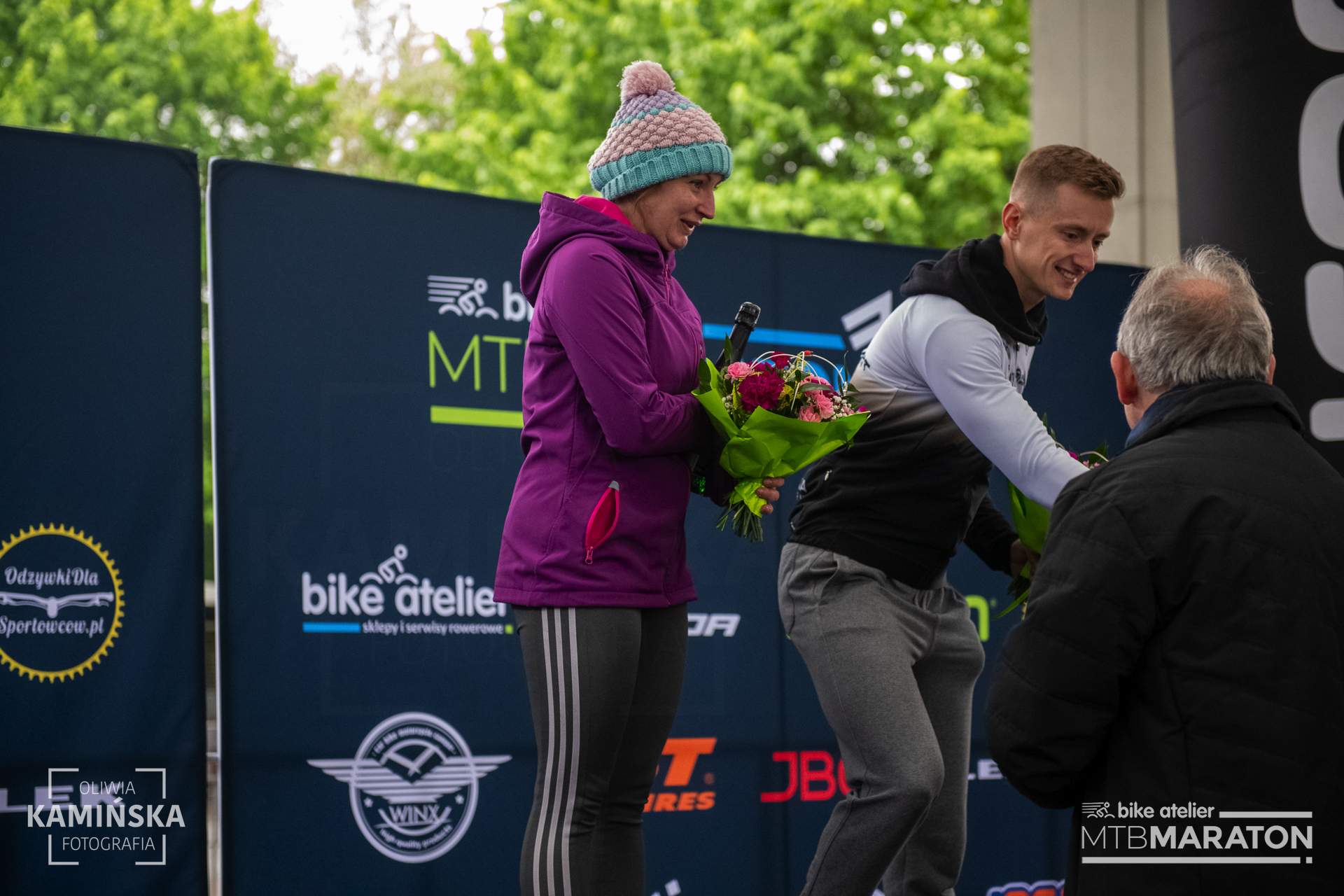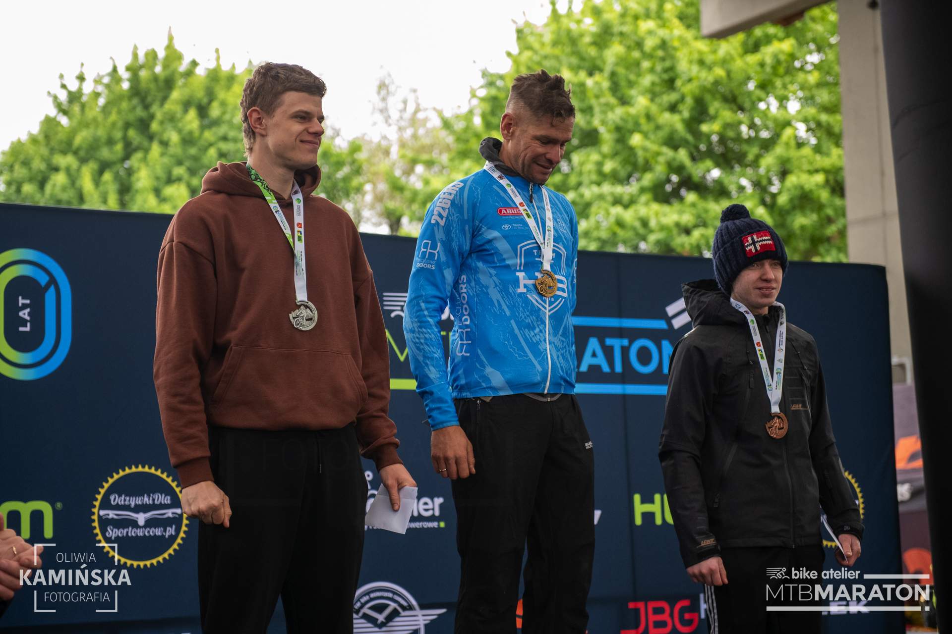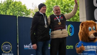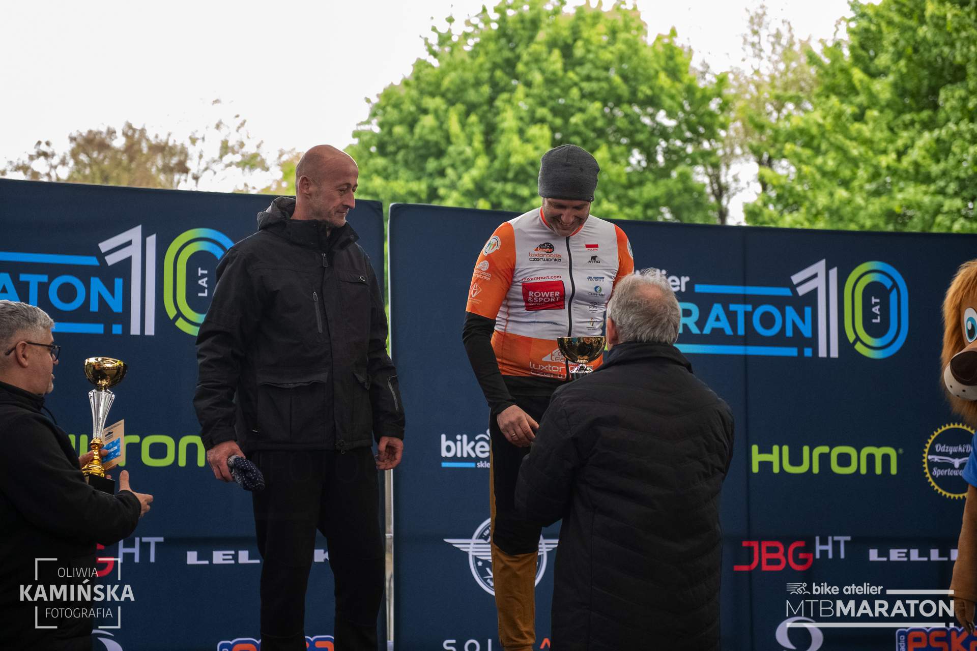 Ceremonie dekoracji najszybszych z najdzielniejszych zawodników, którzy wystartowali mimo surowych warunków na trasie maratonu w Czerwionce-Leszczynach. Foto: Oliwia Kamińska Fotografia