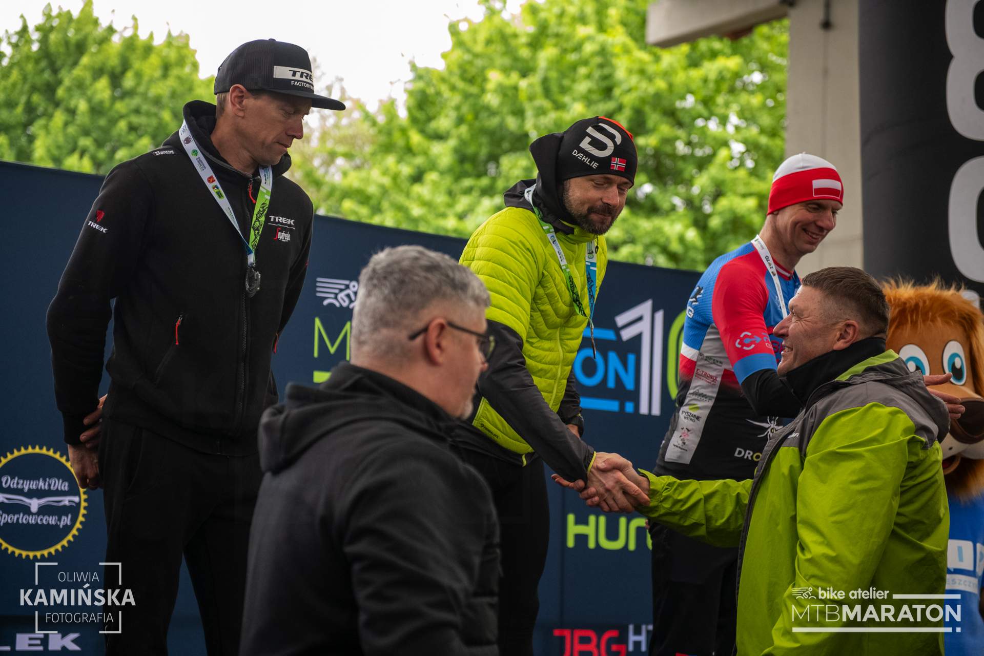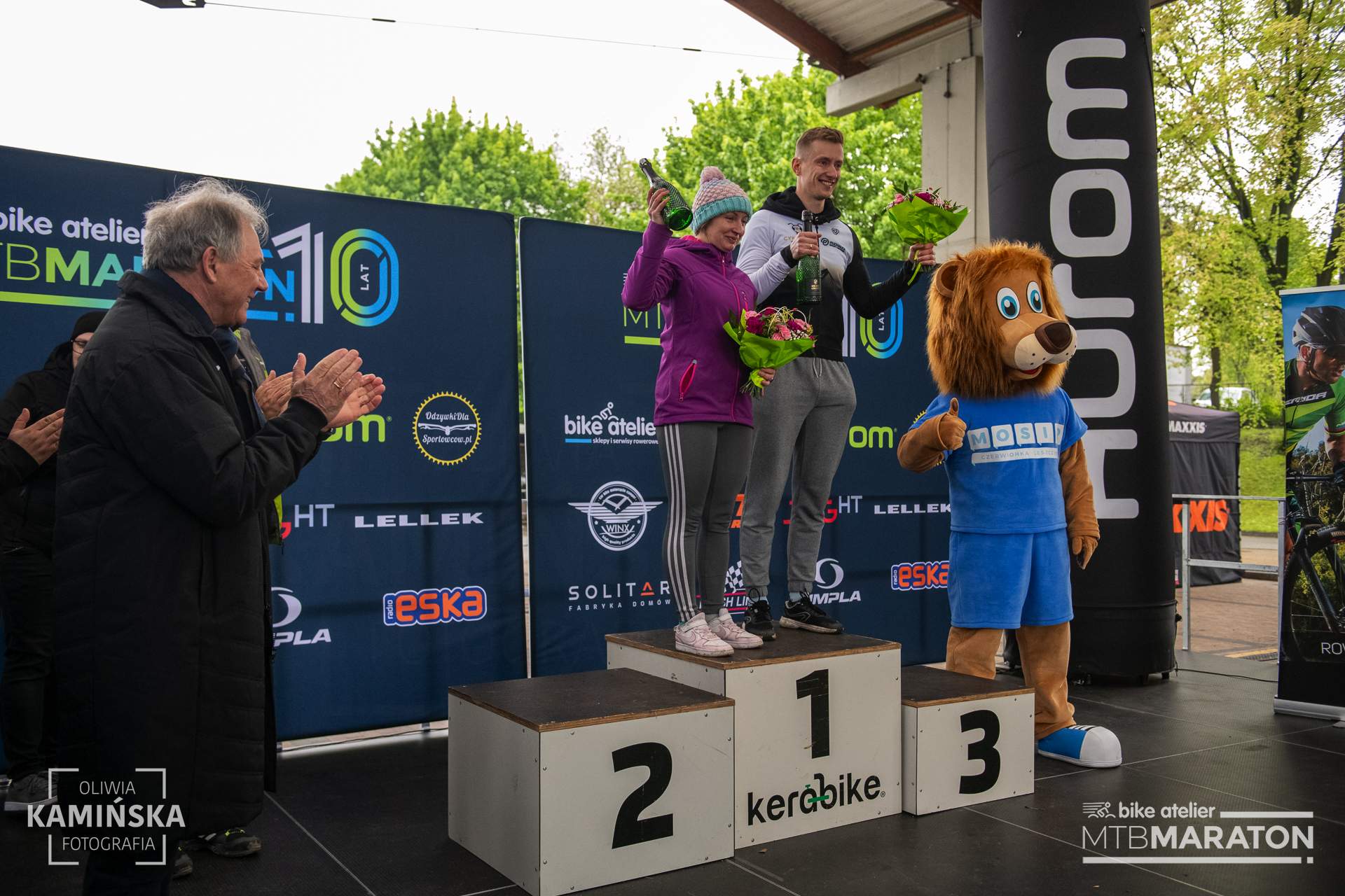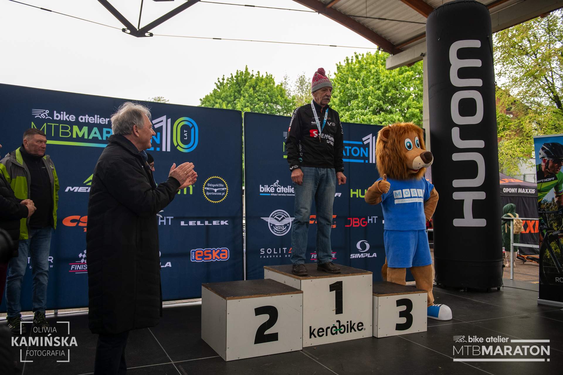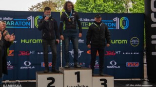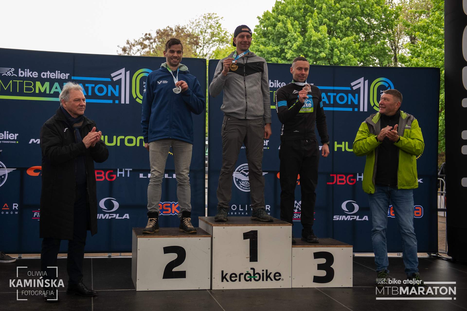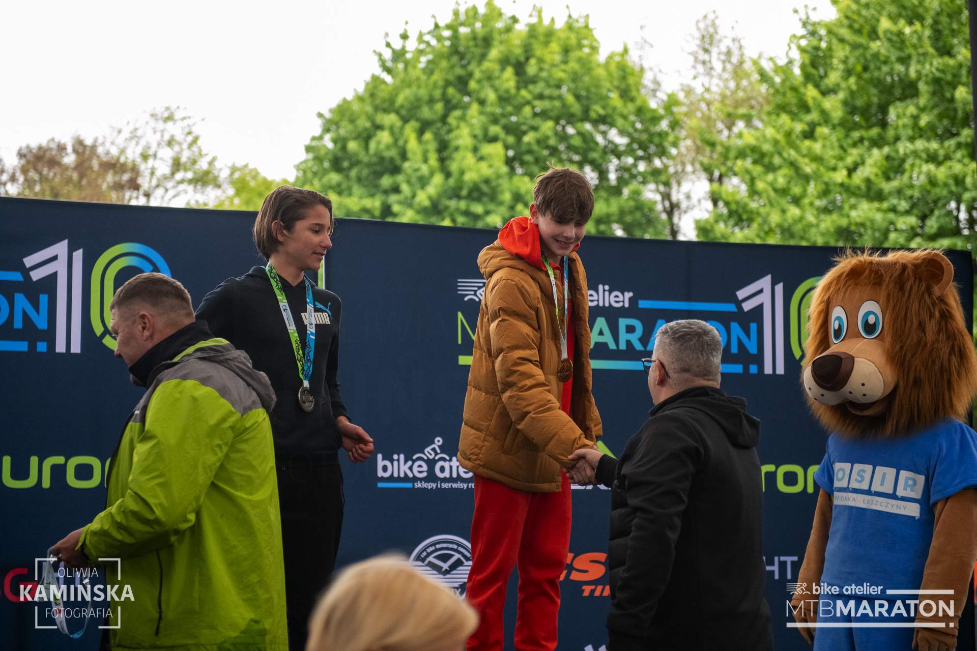 Ceremonie dekoracji najszybszych z najdzielniejszych zawodników, którzy wystartowali mimo surowych warunków na trasie maratonu w Czerwionce-Leszczynach. Foto: Oliwia Kamińska Fotografia