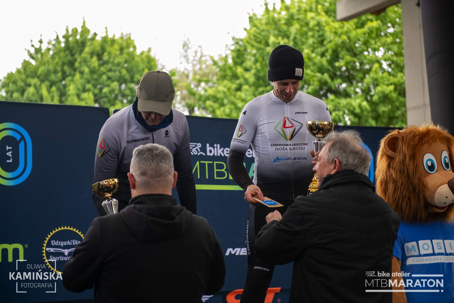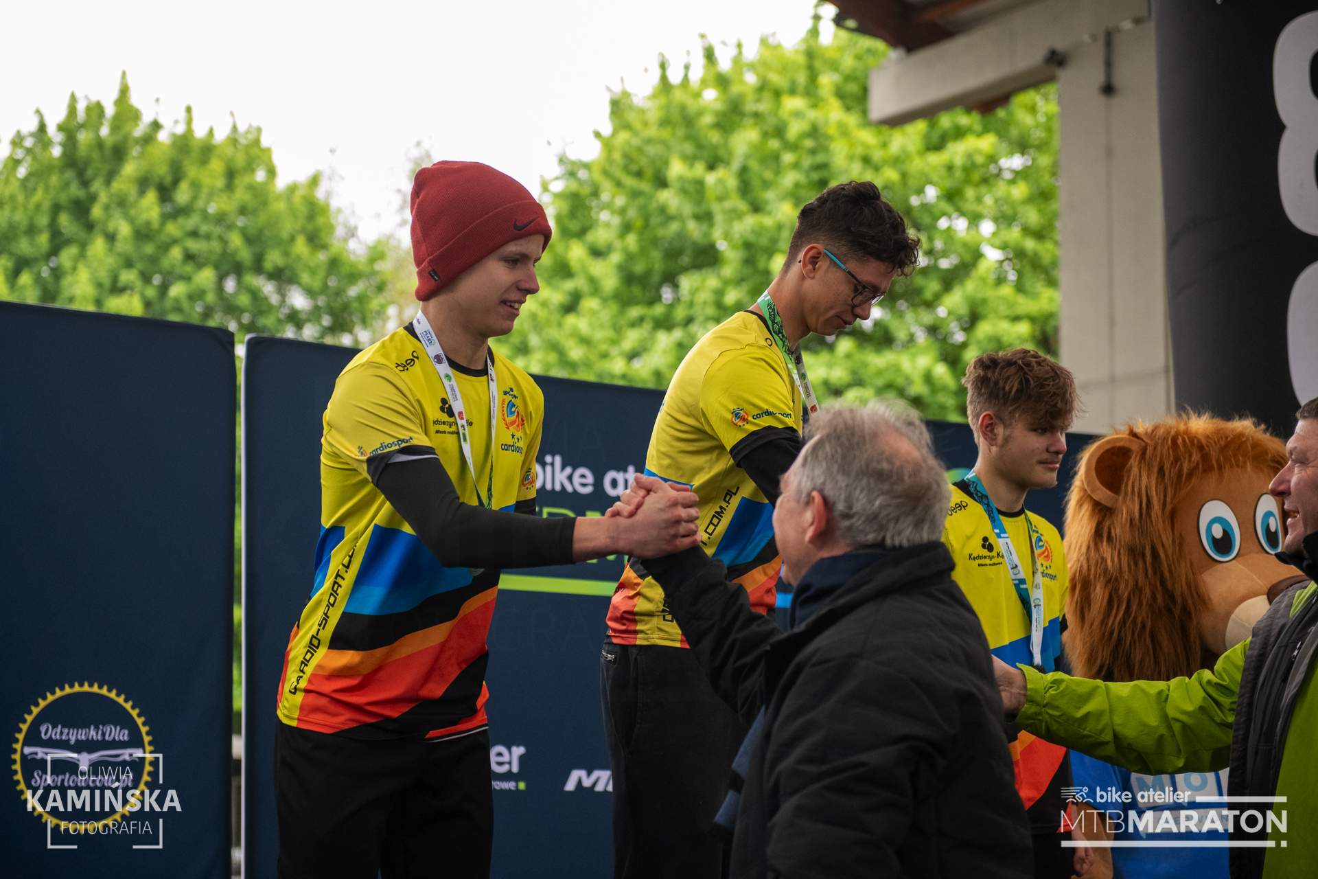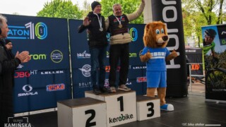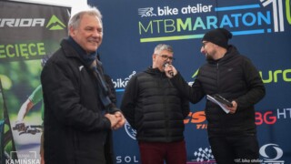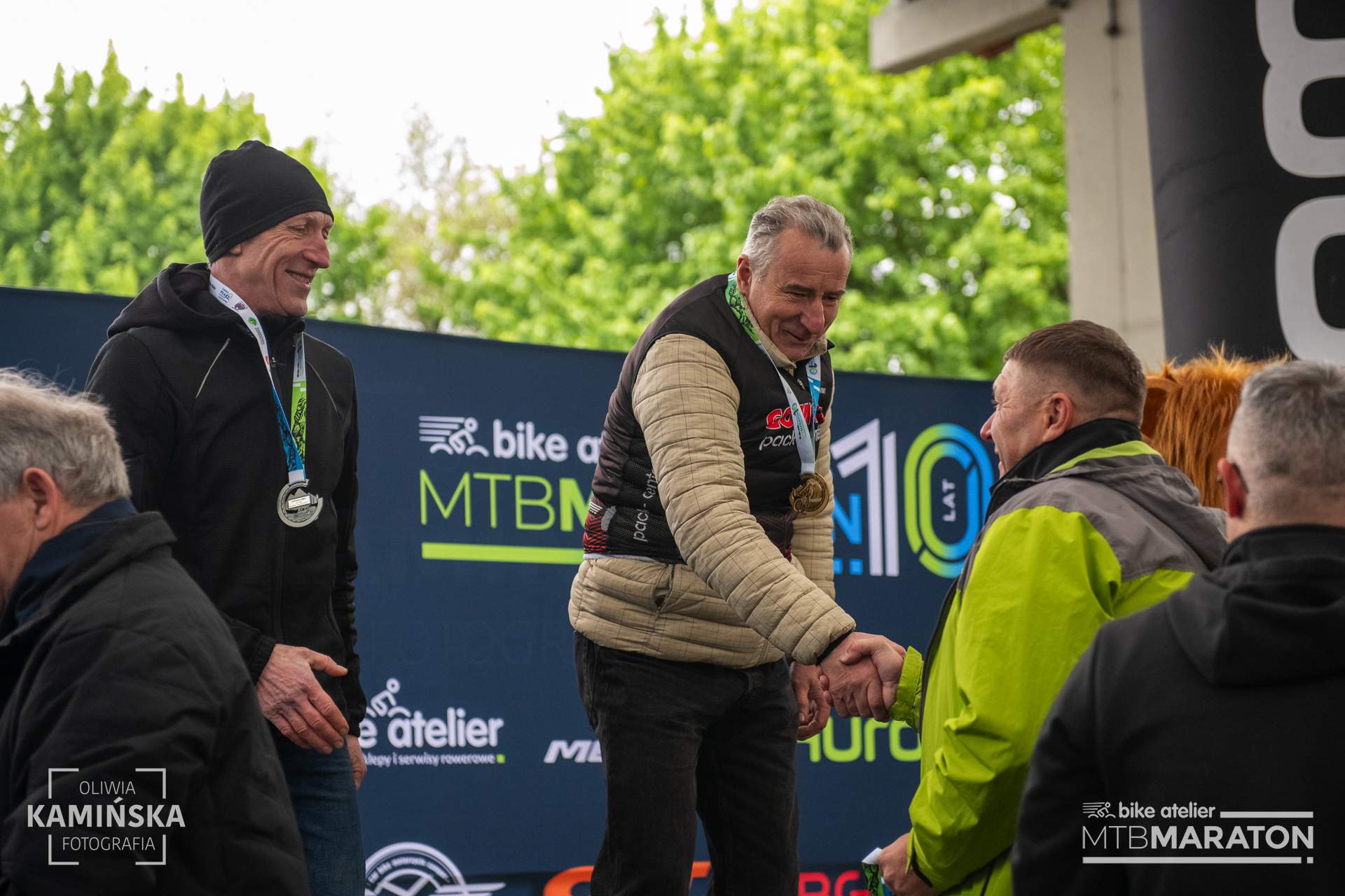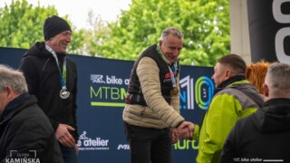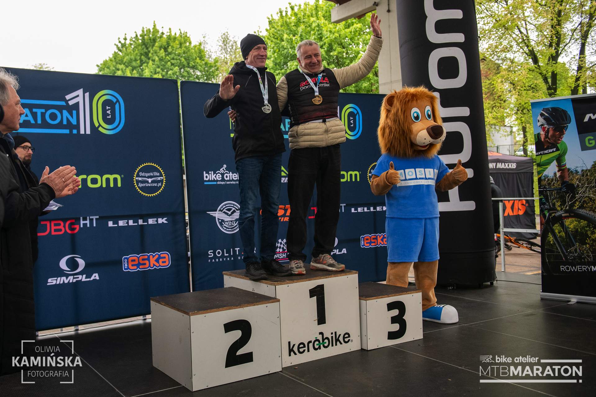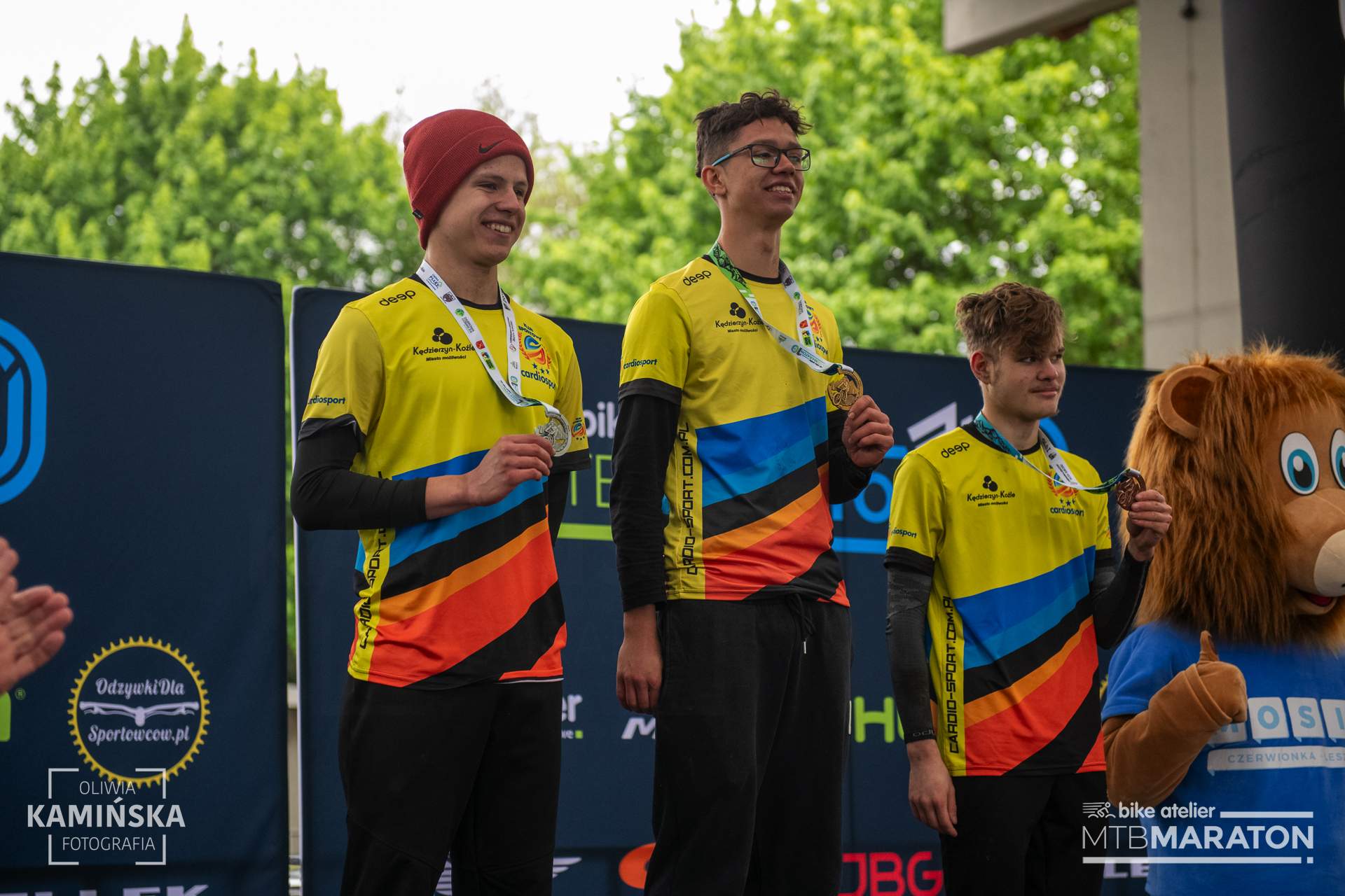 Ceremonie dekoracji najszybszych z najdzielniejszych zawodników, którzy wystartowali mimo surowych warunków na trasie maratonu w Czerwionce-Leszczynach. Foto: Oliwia Kamińska Fotografia