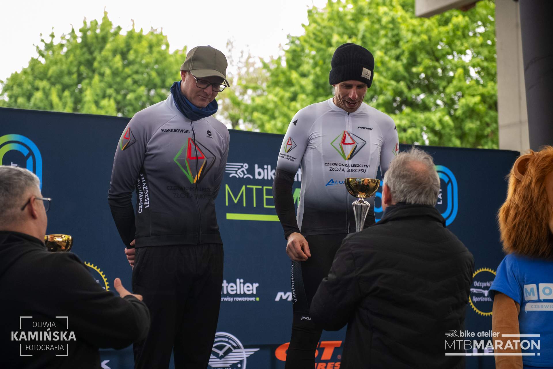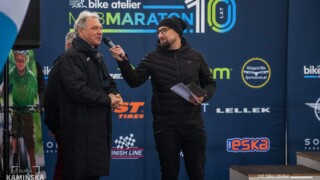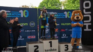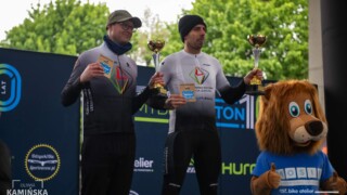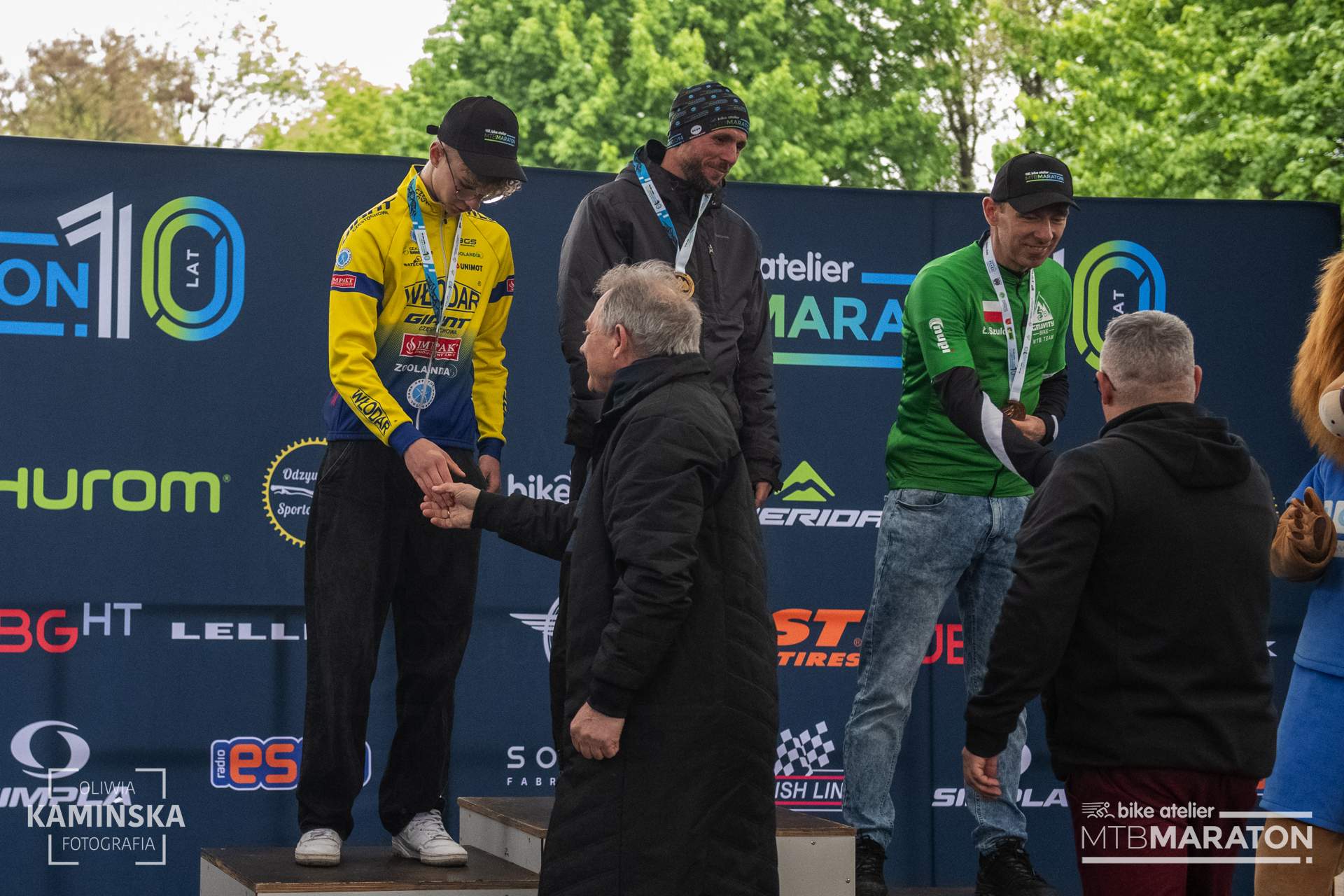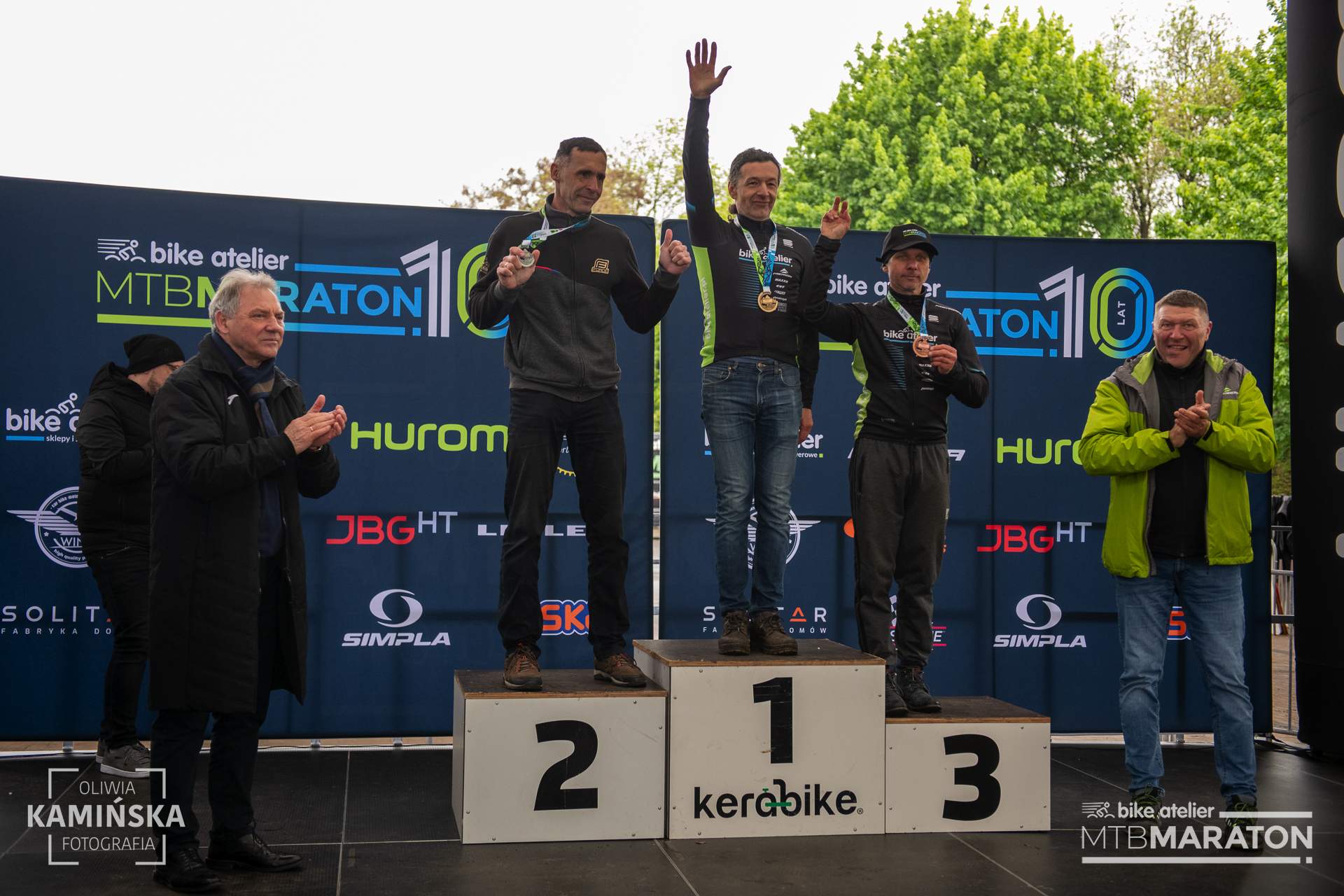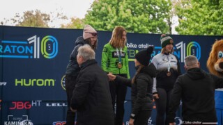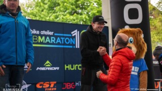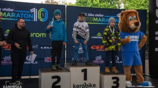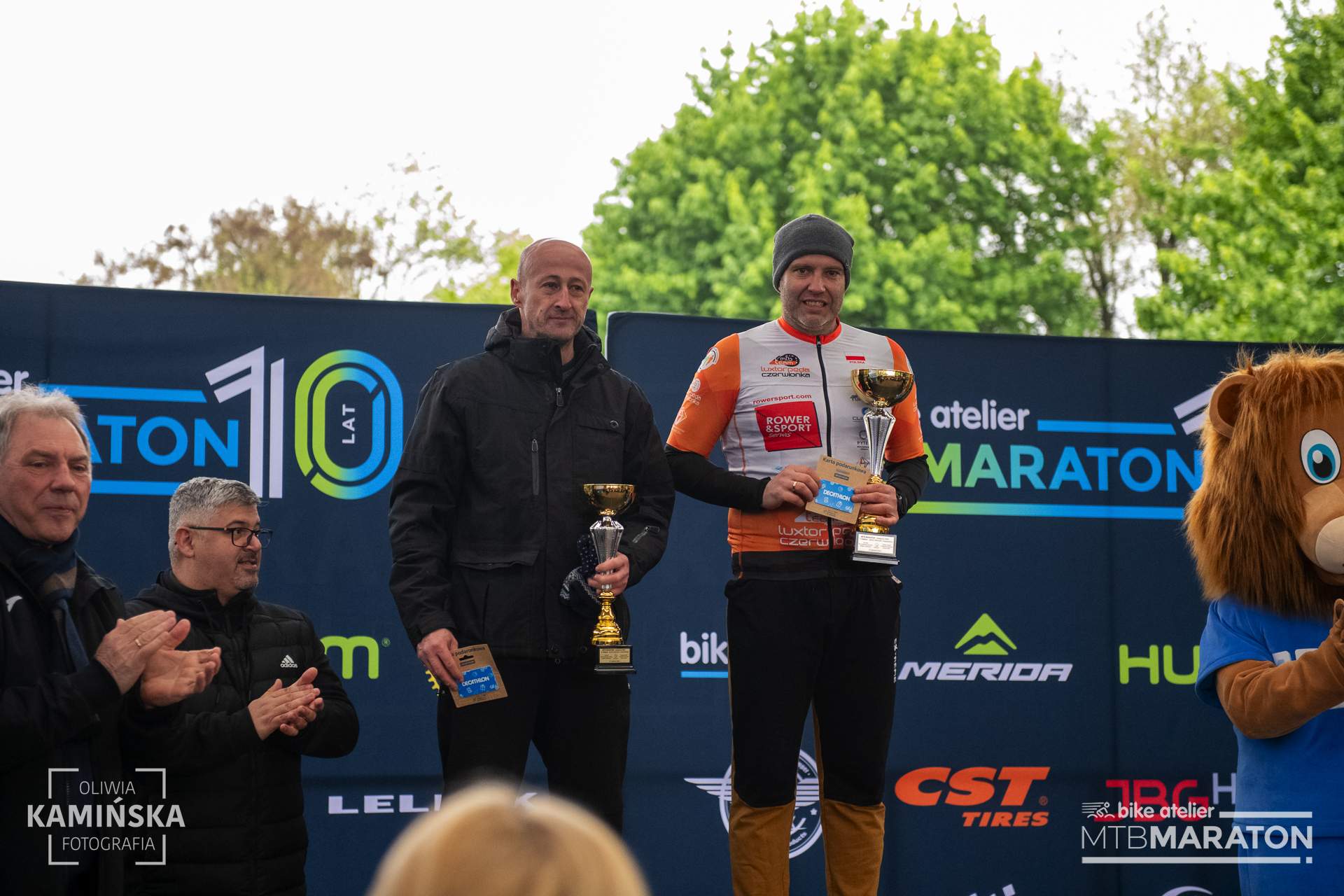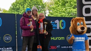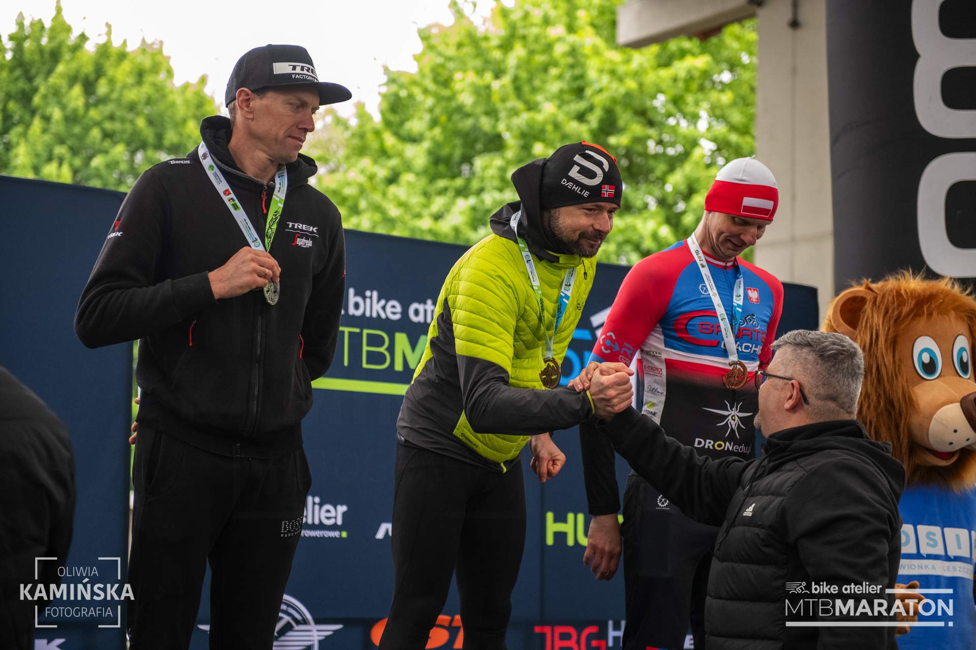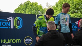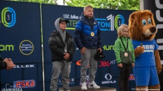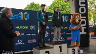 Ceremonie dekoracji najszybszych z najdzielniejszych zawodników, którzy wystartowali mimo surowych warunków na trasie maratonu w Czerwionce-Leszczynach. Foto: Oliwia Kamińska Fotografia