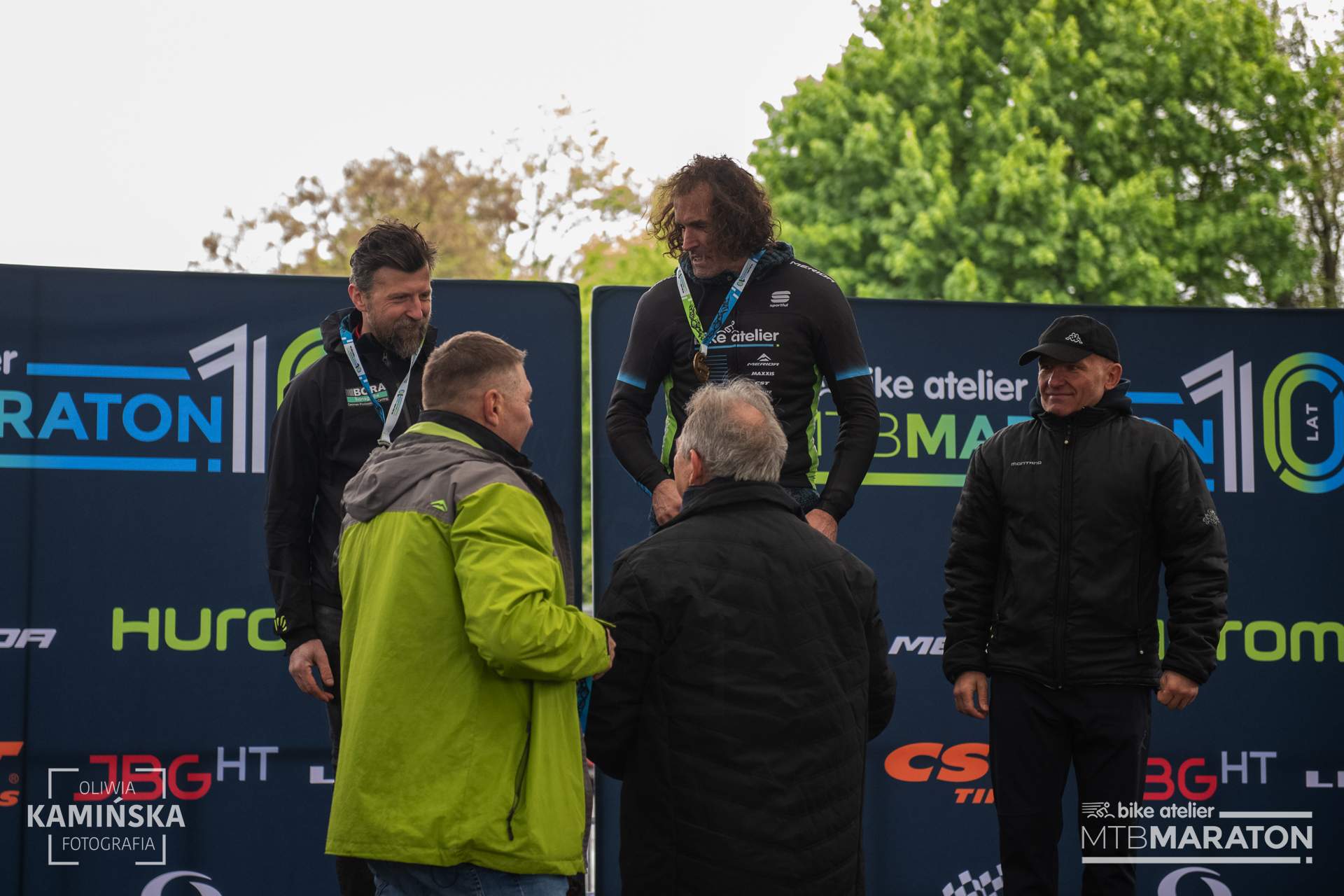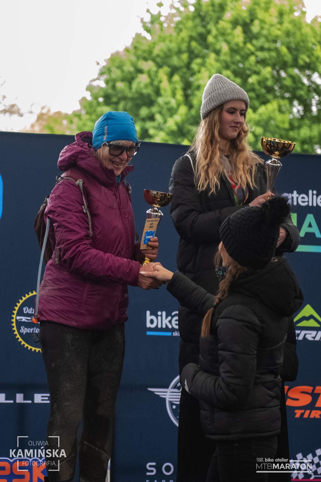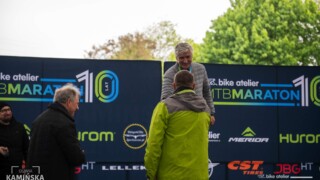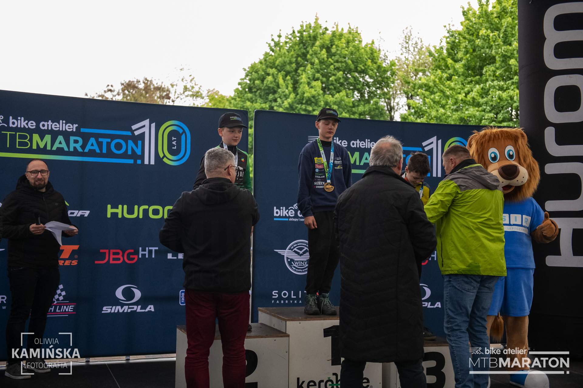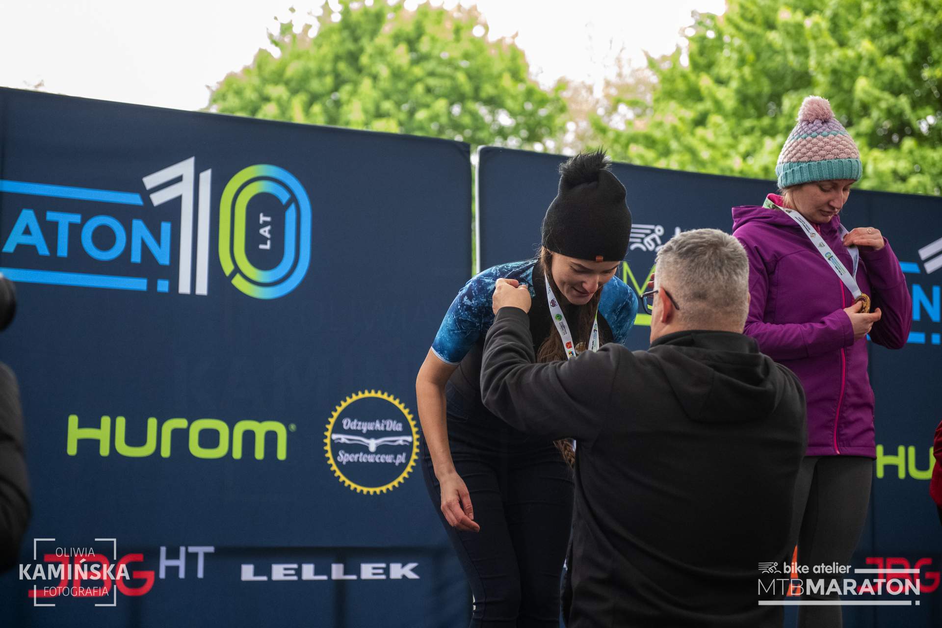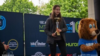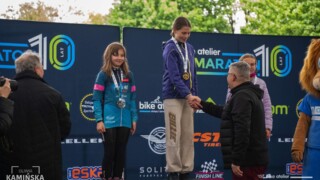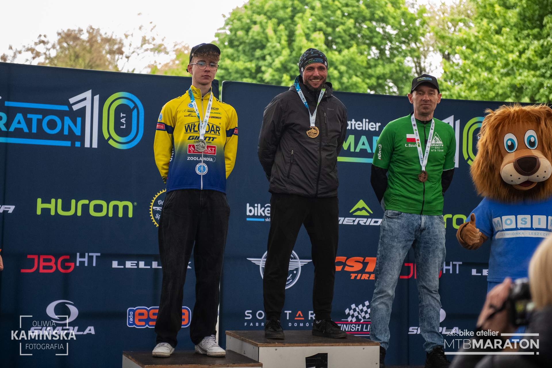 Ceremonie dekoracji najszybszych z najdzielniejszych zawodników, którzy wystartowali mimo surowych warunków na trasie maratonu w Czerwionce-Leszczynach. Foto: Oliwia Kamińska Fotografia