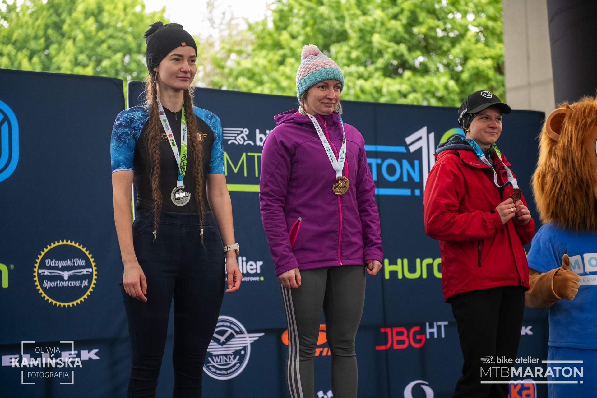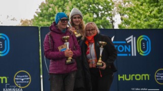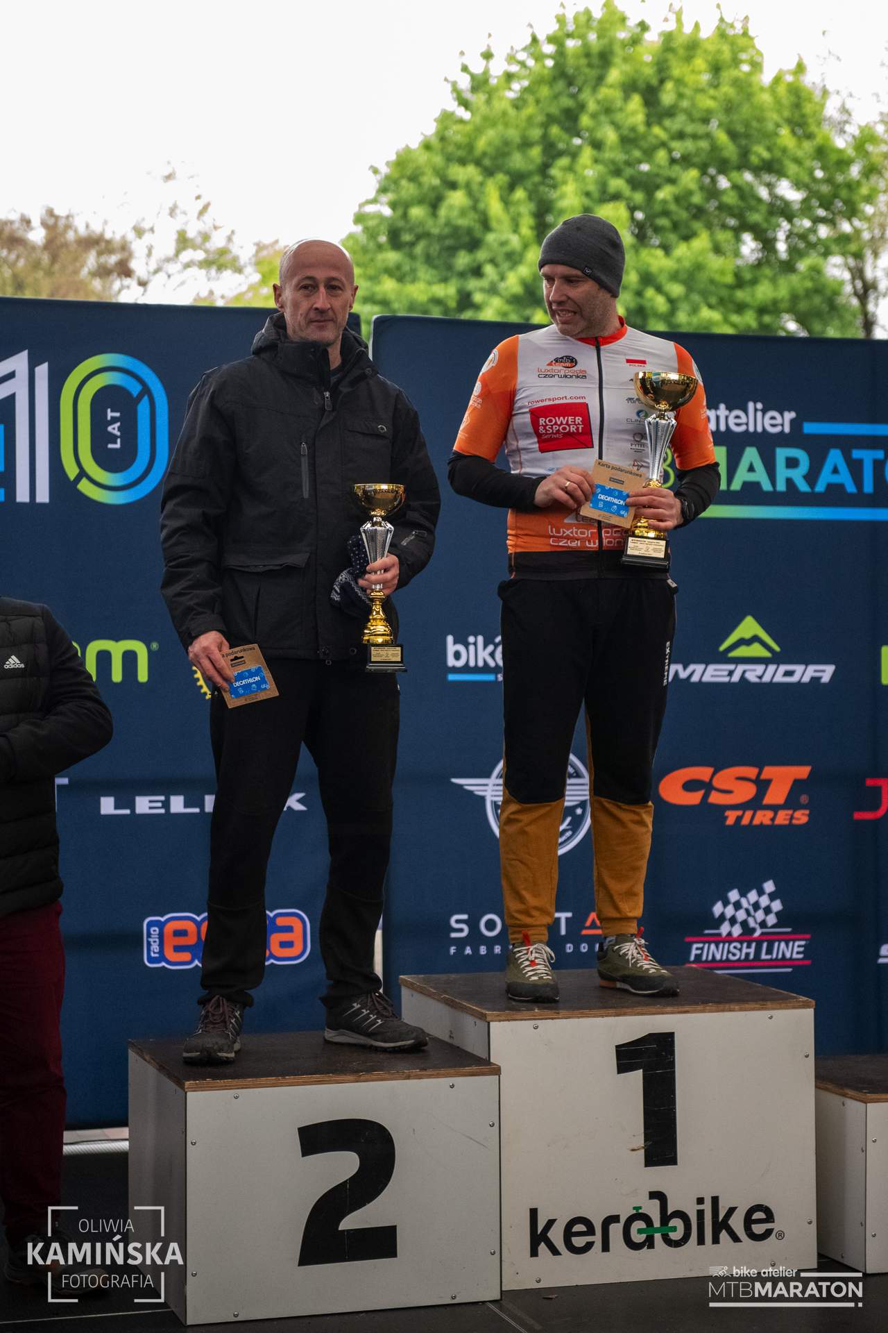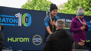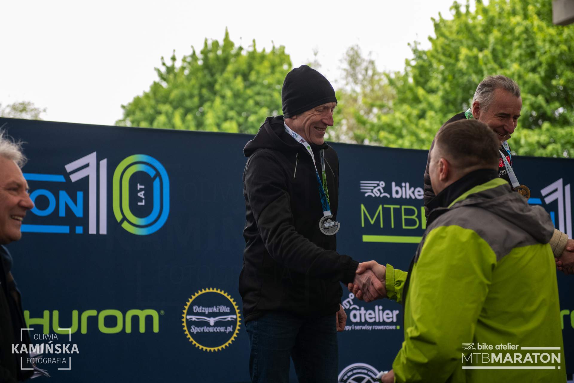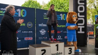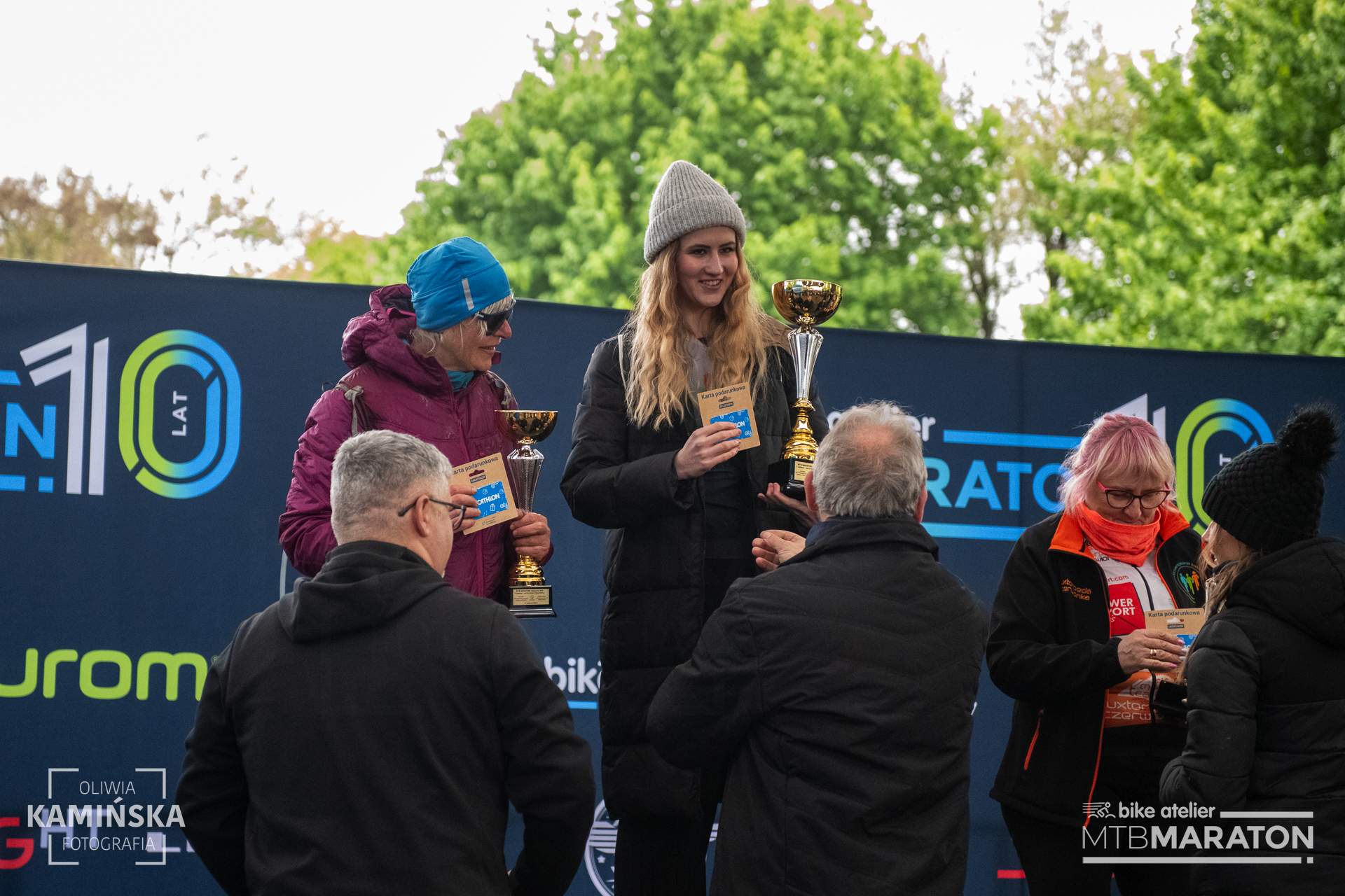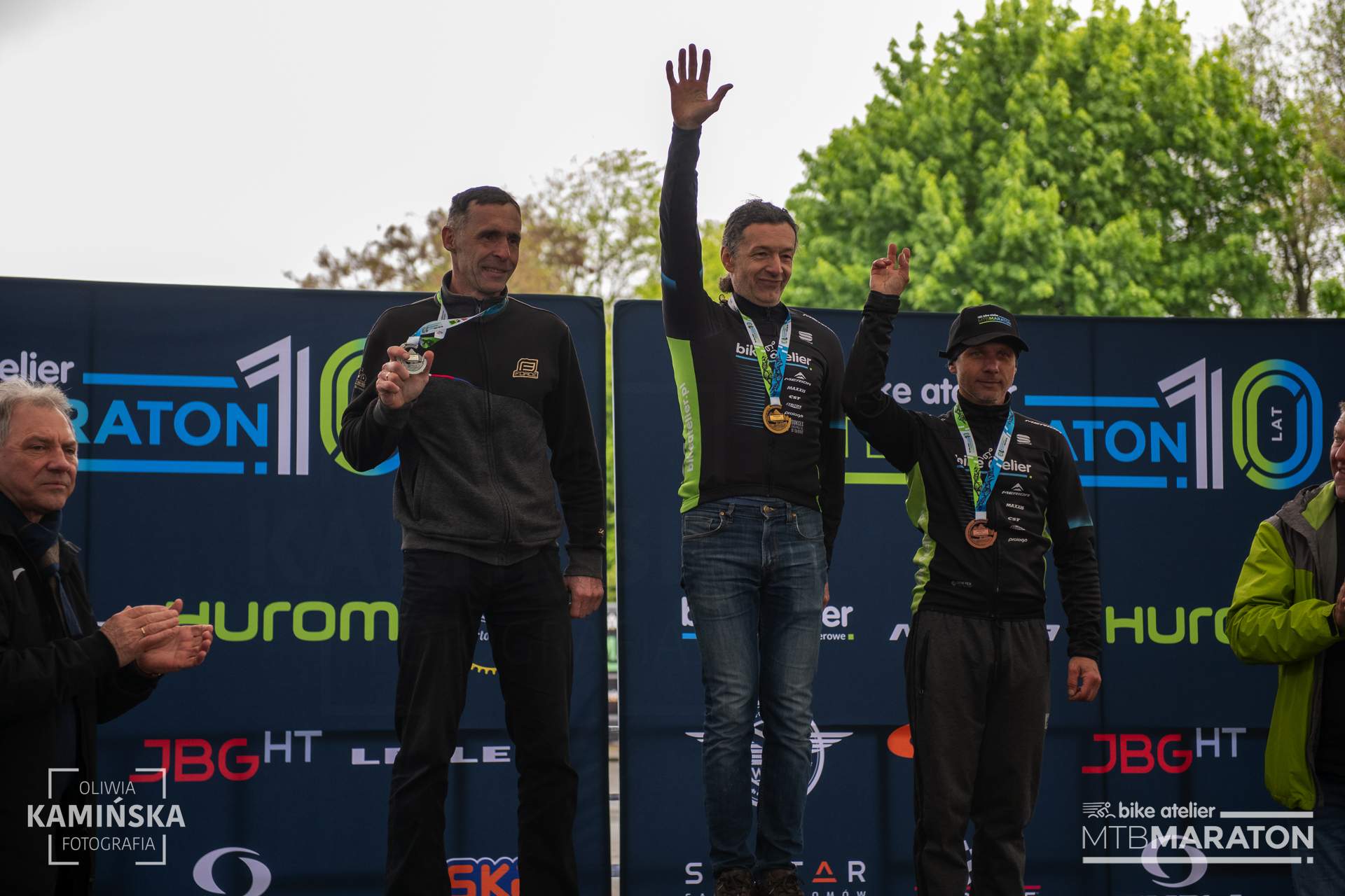 Ceremonie dekoracji najszybszych z najdzielniejszych zawodników, którzy wystartowali mimo surowych warunków na trasie maratonu w Czerwionce-Leszczynach. Foto: Oliwia Kamińska Fotografia