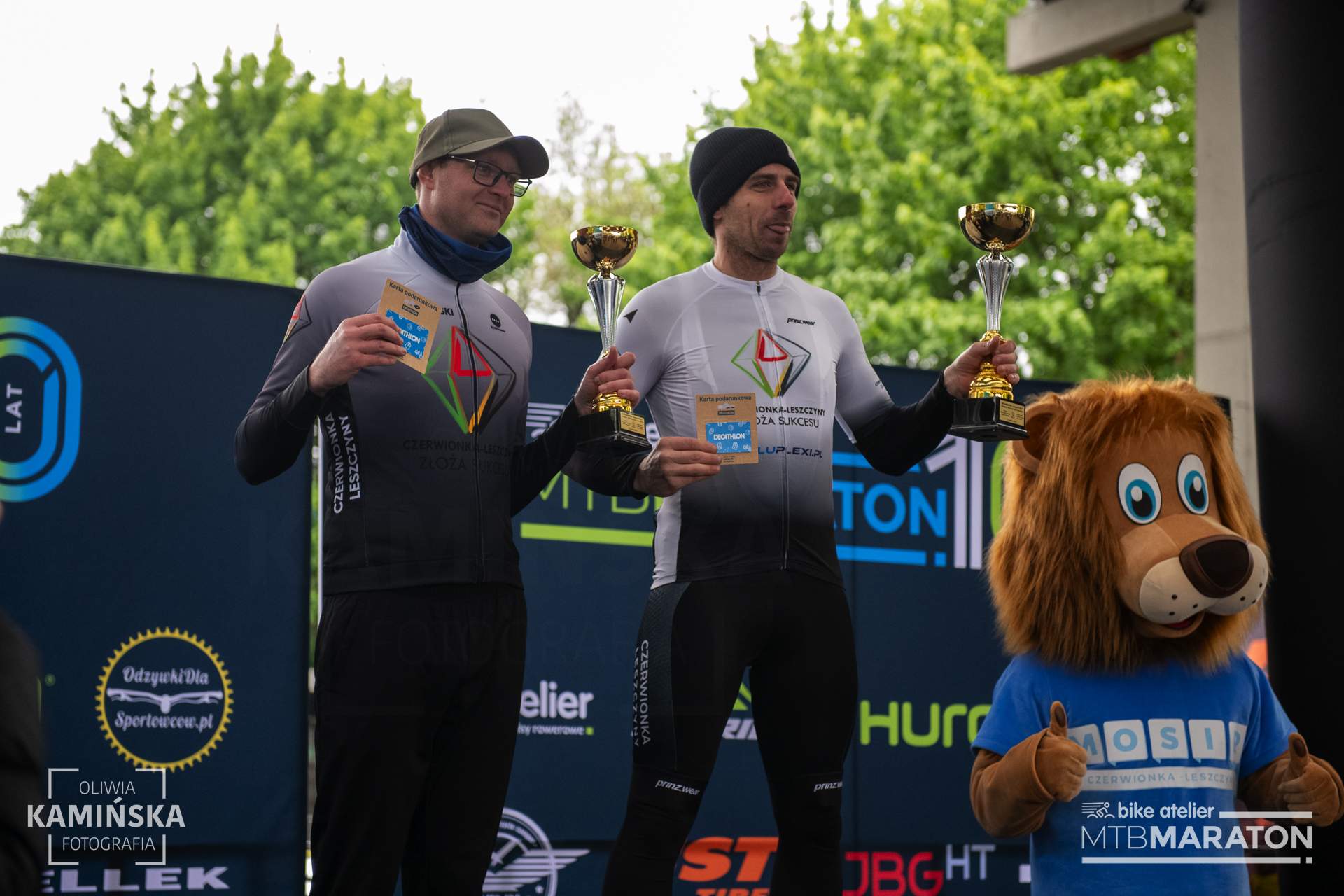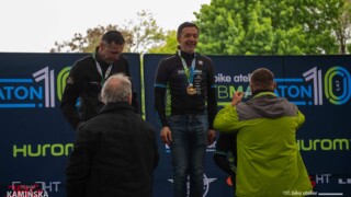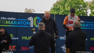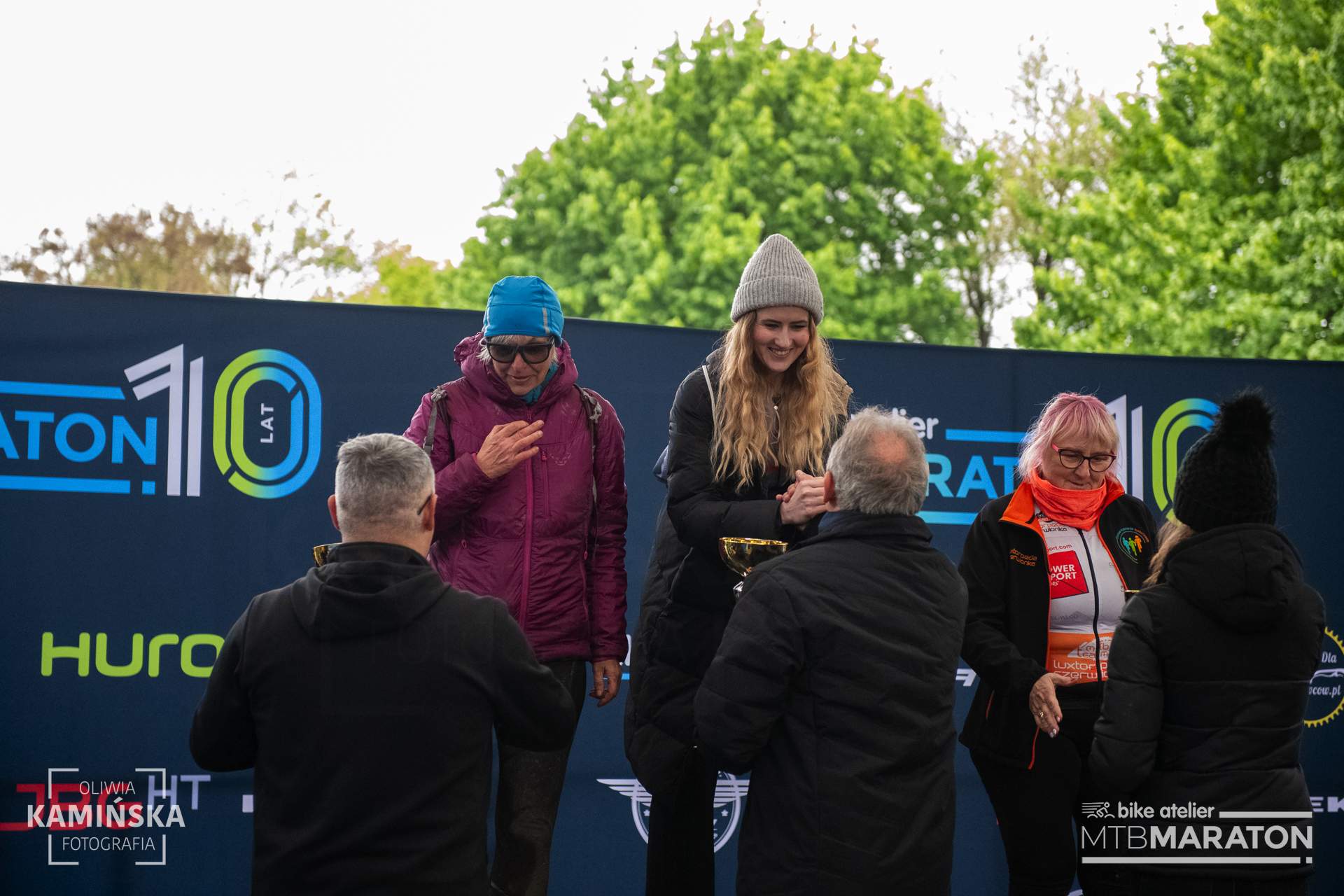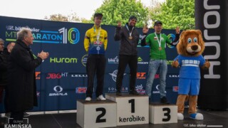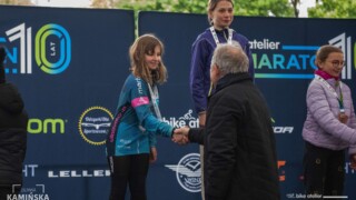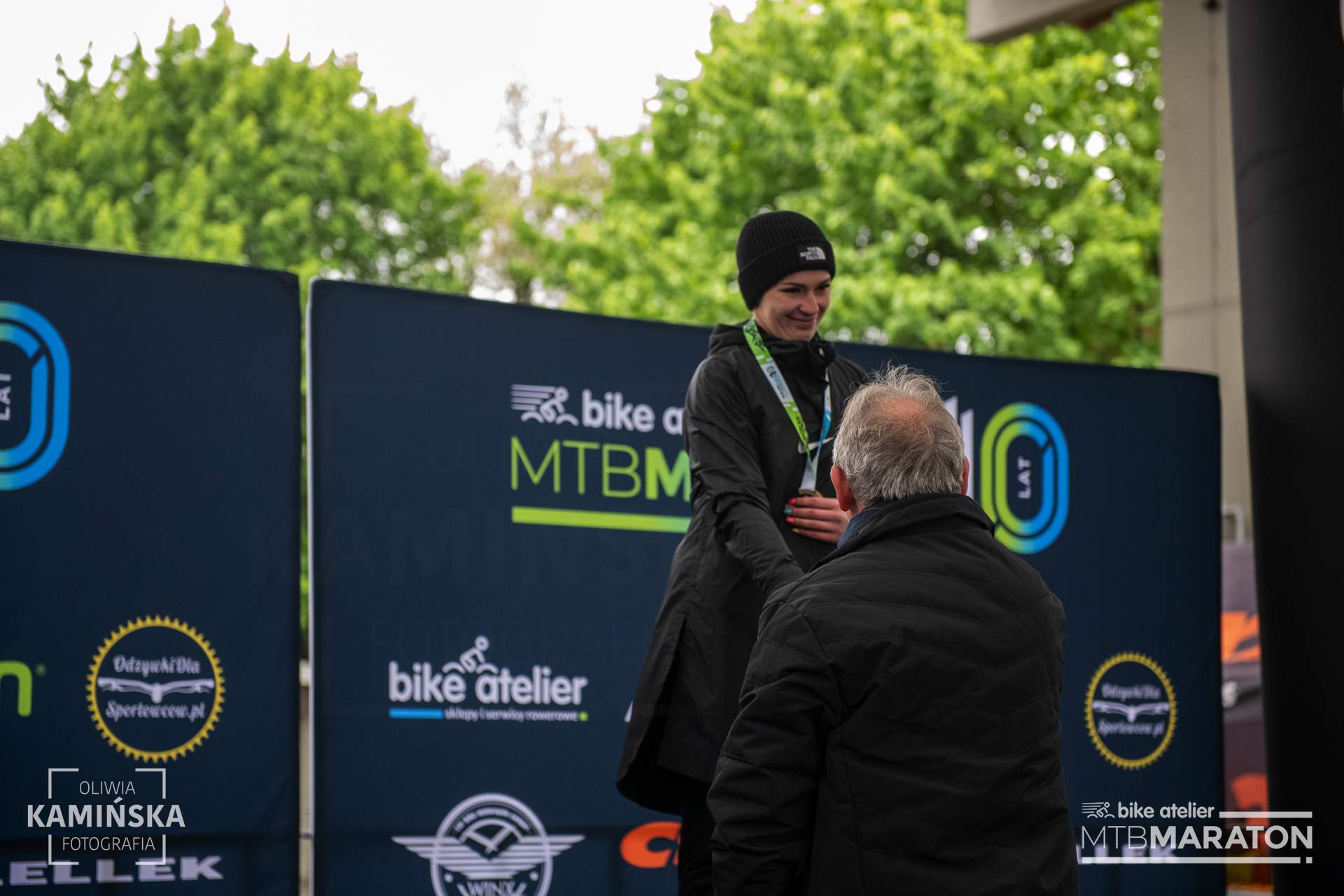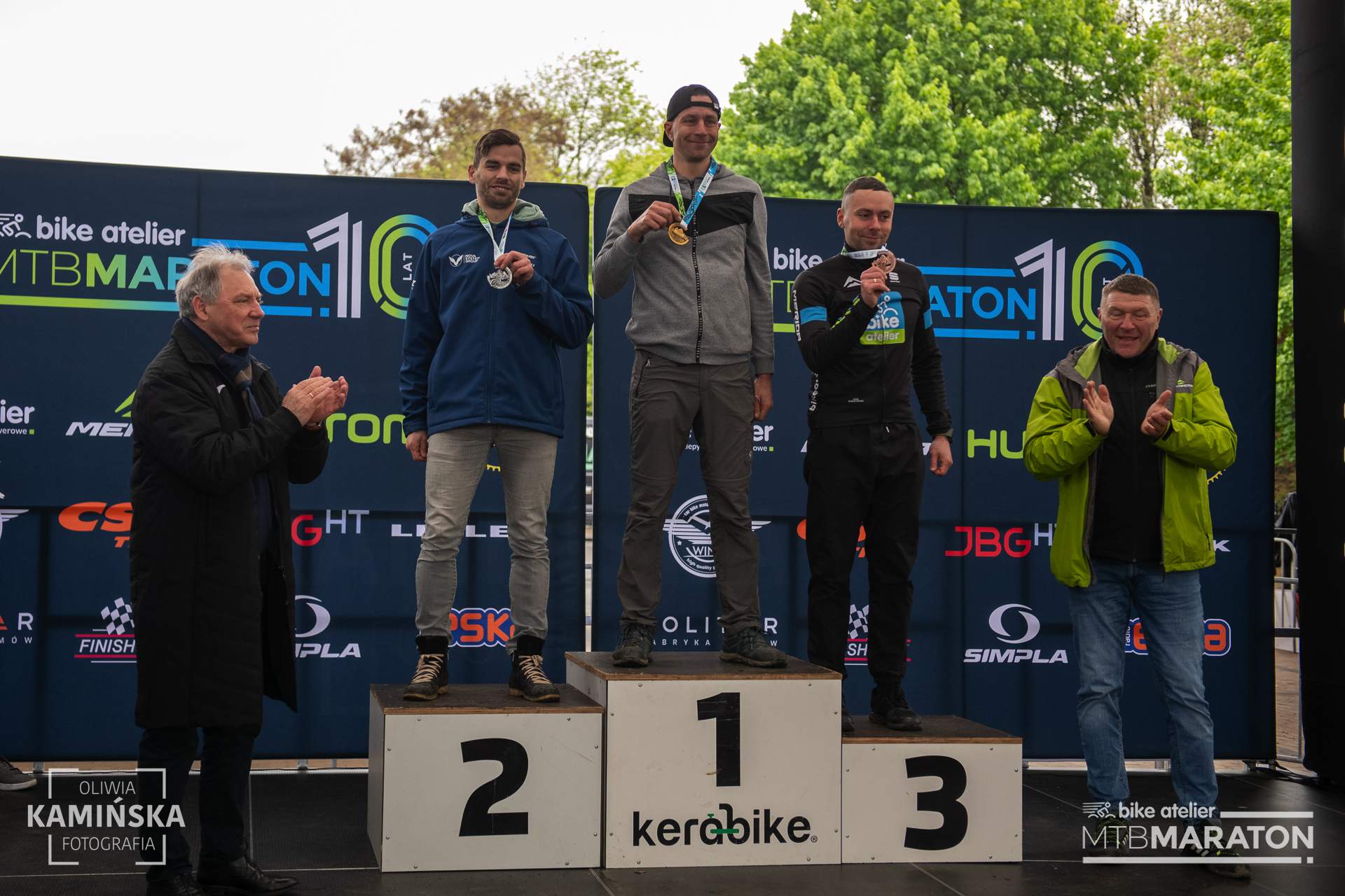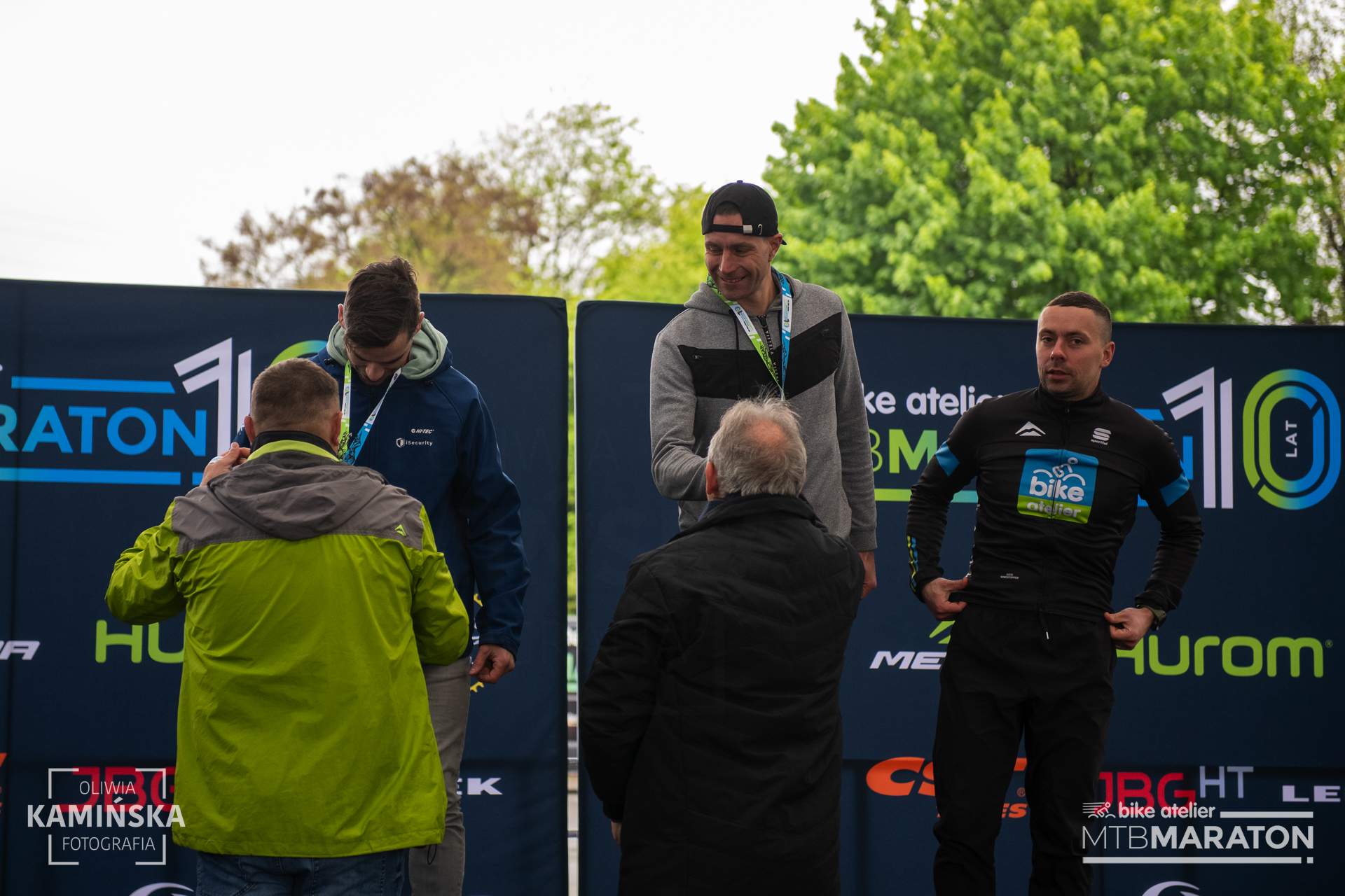Ceremonie dekoracji najszybszych z najdzielniejszych zawodników, którzy wystartowali mimo surowych warunków na trasie maratonu w Czerwionce-Leszczynach. Foto: Oliwia Kamińska Fotografia