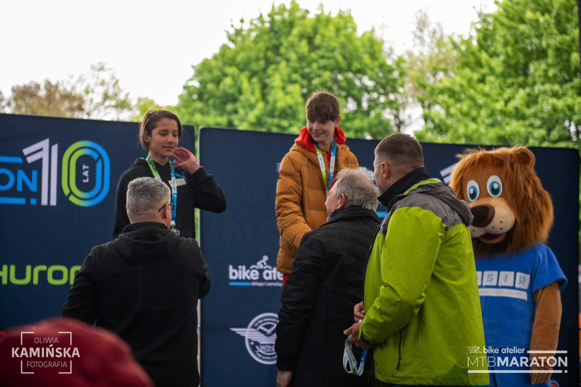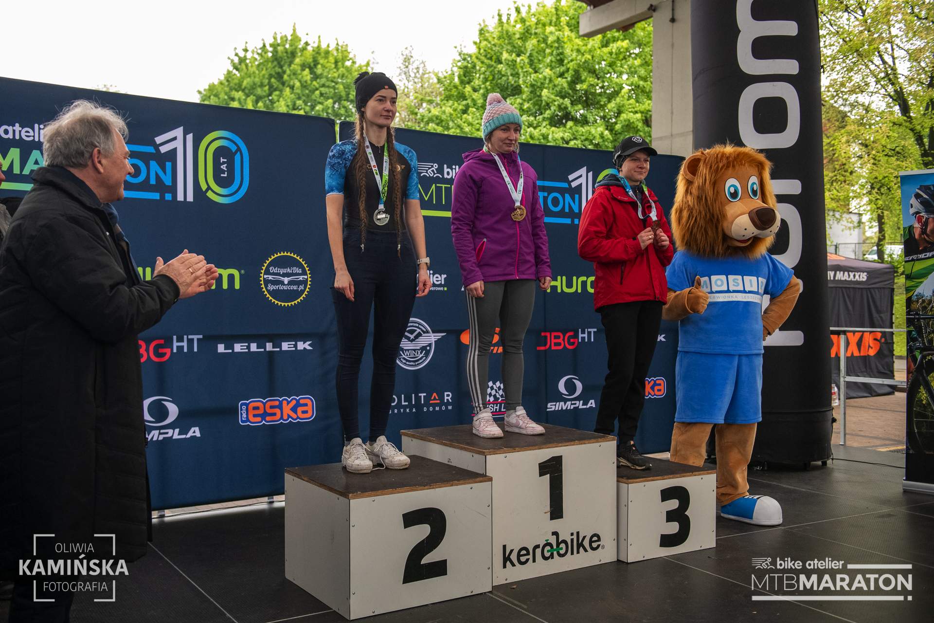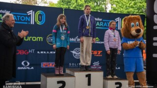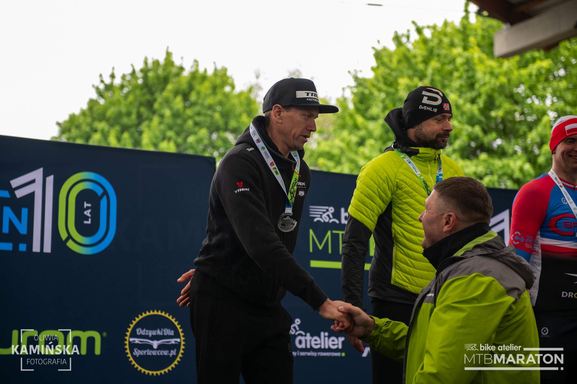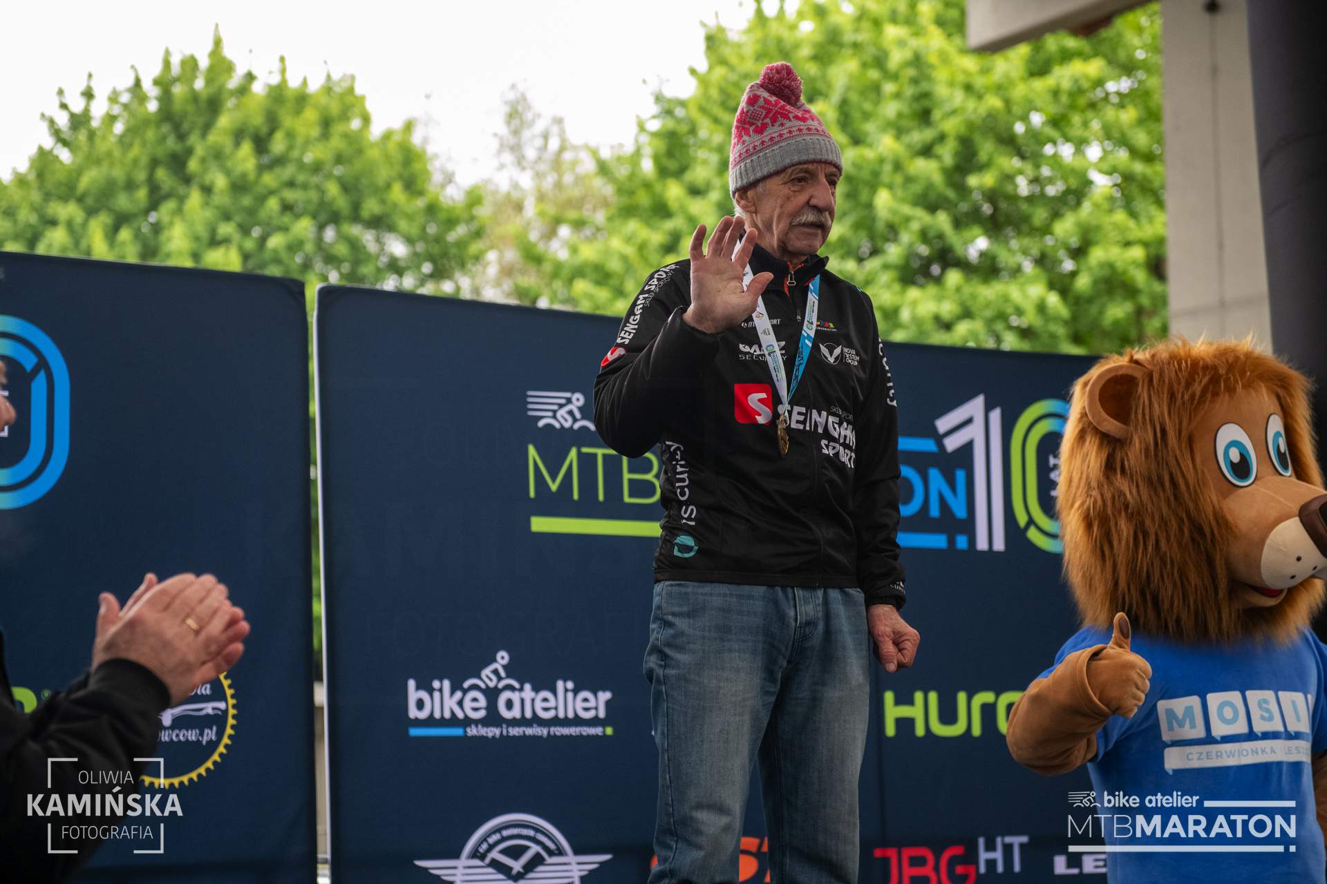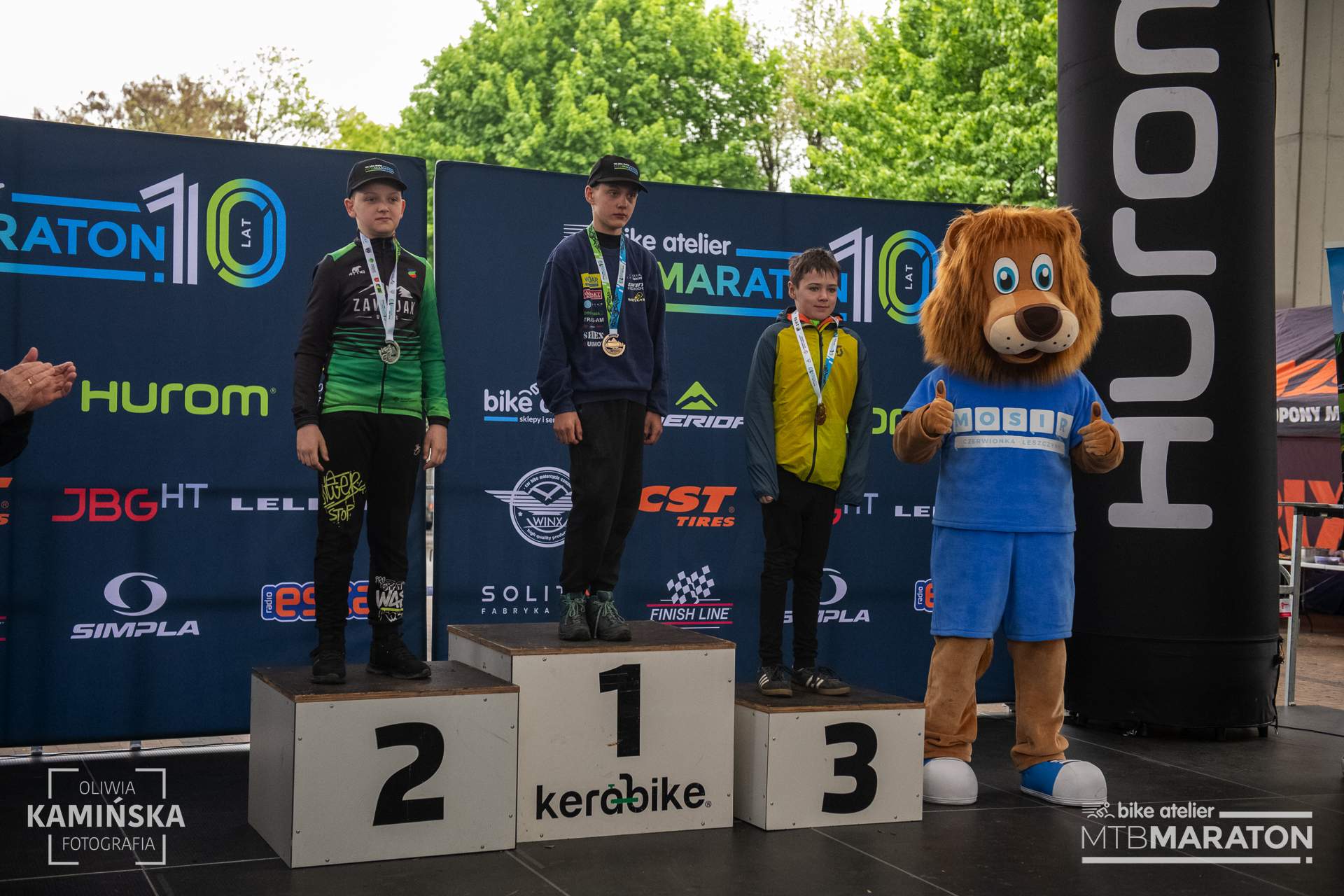 Ceremonie dekoracji najszybszych z najdzielniejszych zawodników, którzy wystartowali mimo surowych warunków na trasie maratonu w Czerwionce-Leszczynach. Foto: Oliwia Kamińska Fotografia