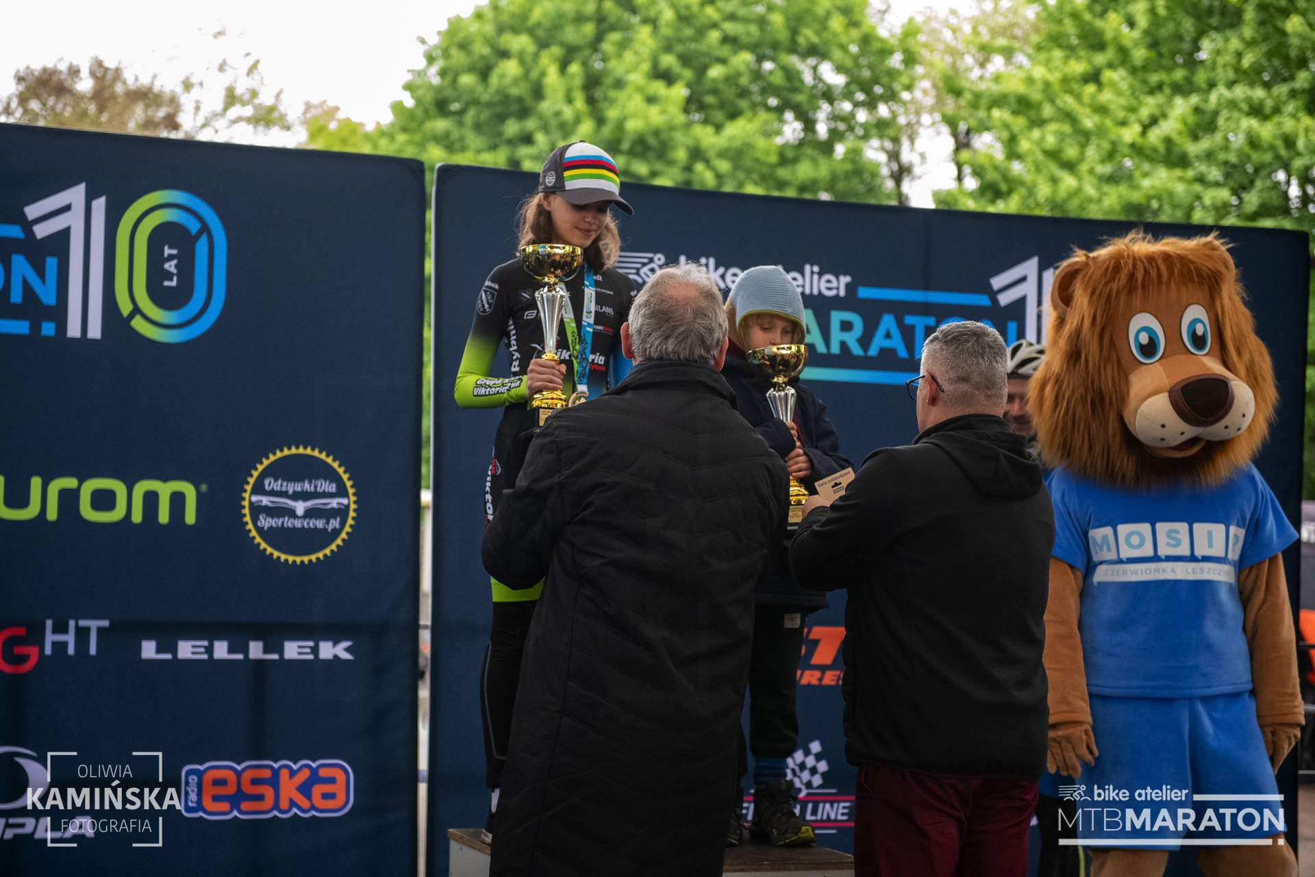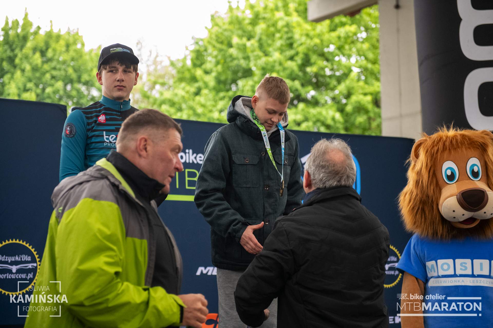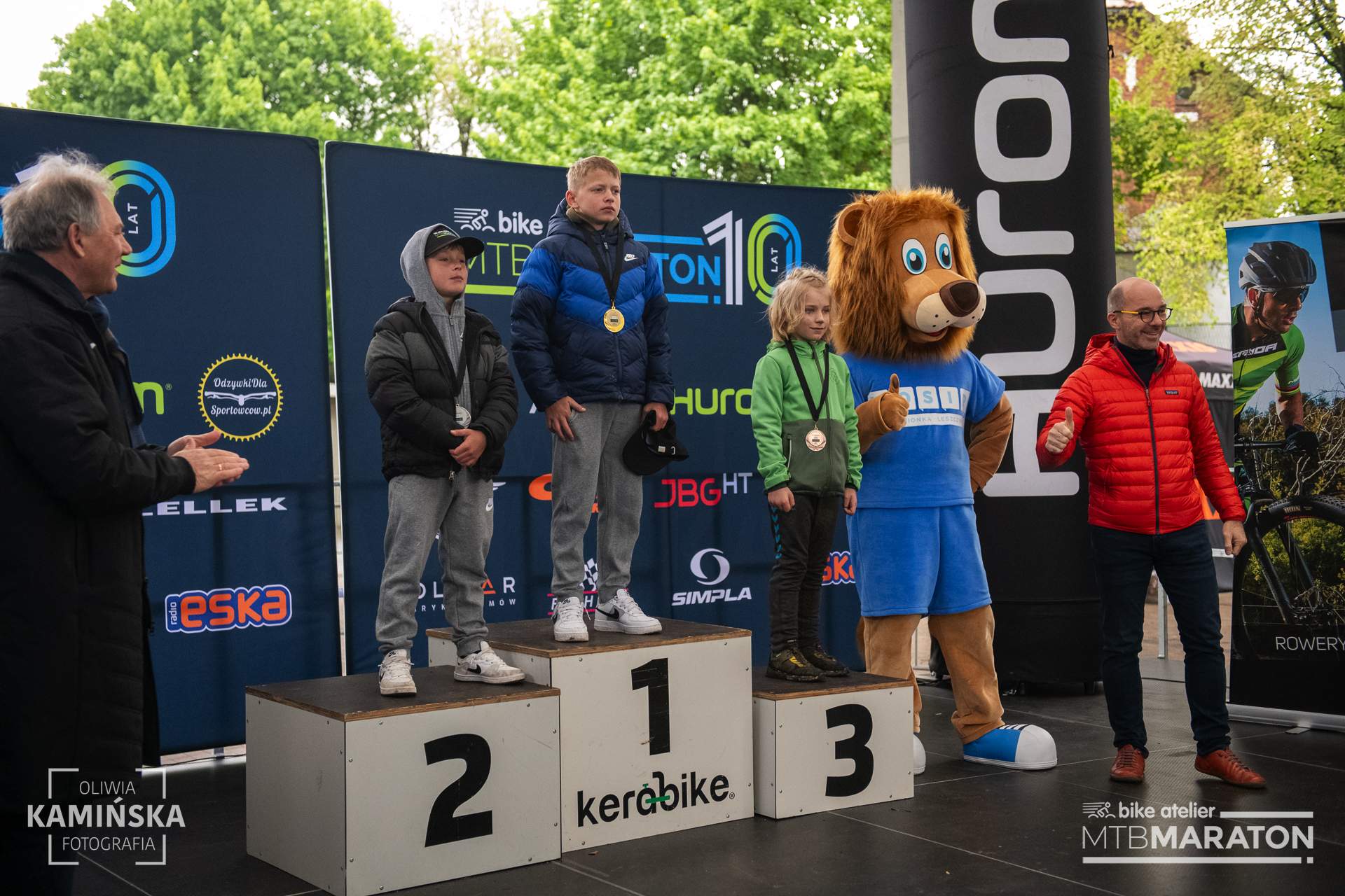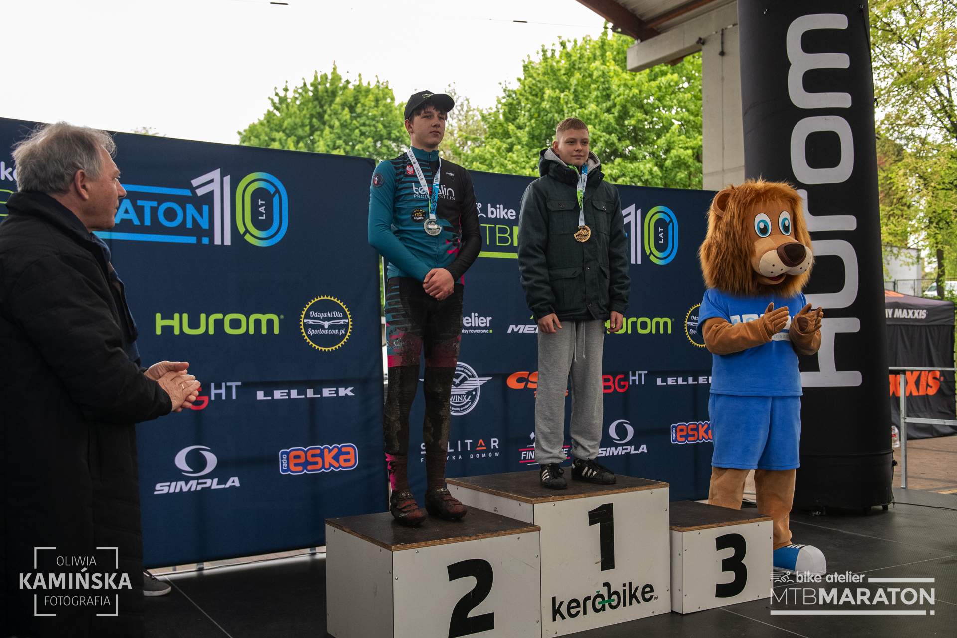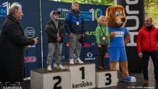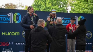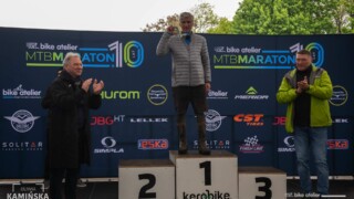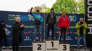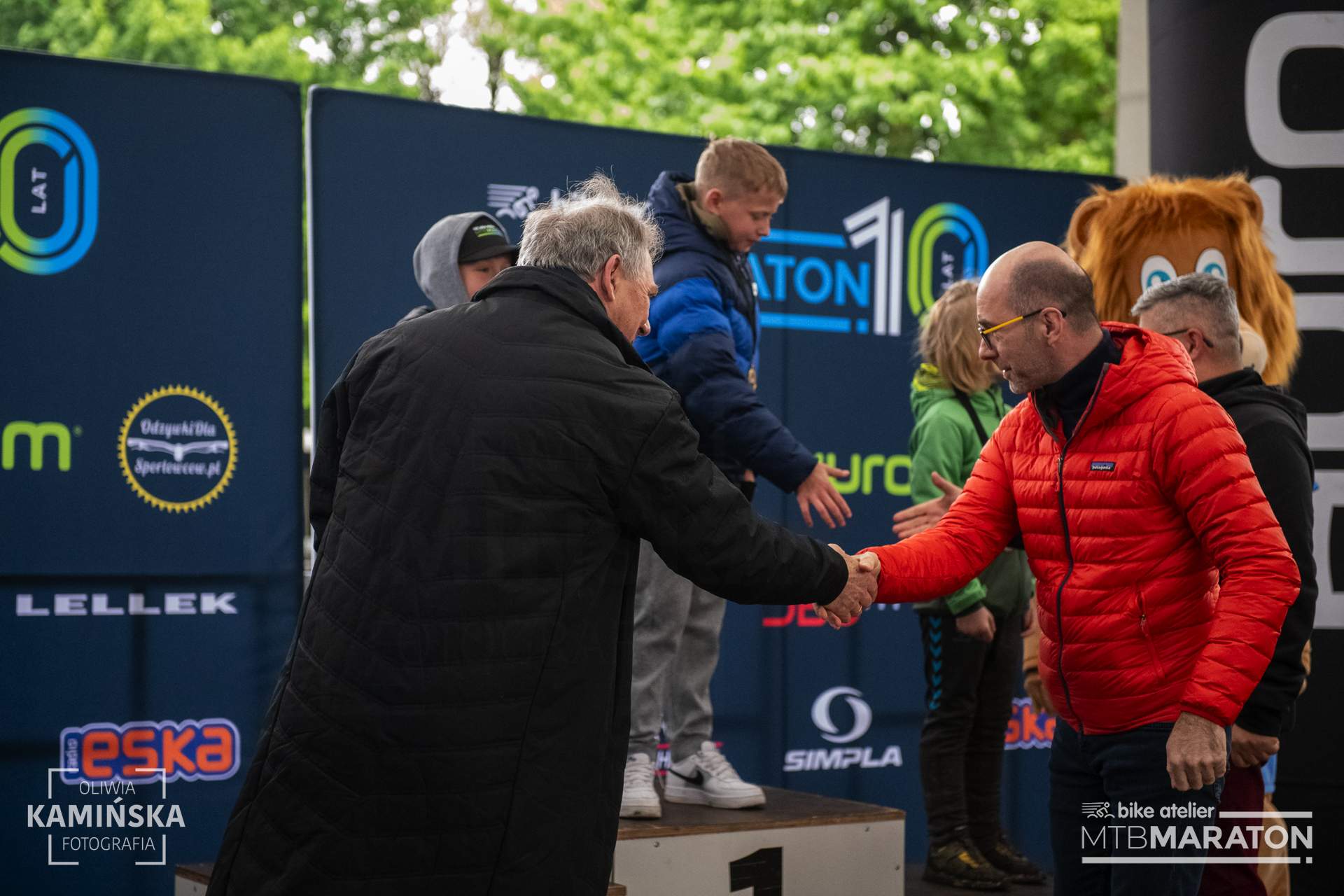 Ceremonie dekoracji najszybszych z najdzielniejszych zawodników, którzy wystartowali mimo surowych warunków na trasie maratonu w Czerwionce-Leszczynach. Foto: Oliwia Kamińska Fotografia