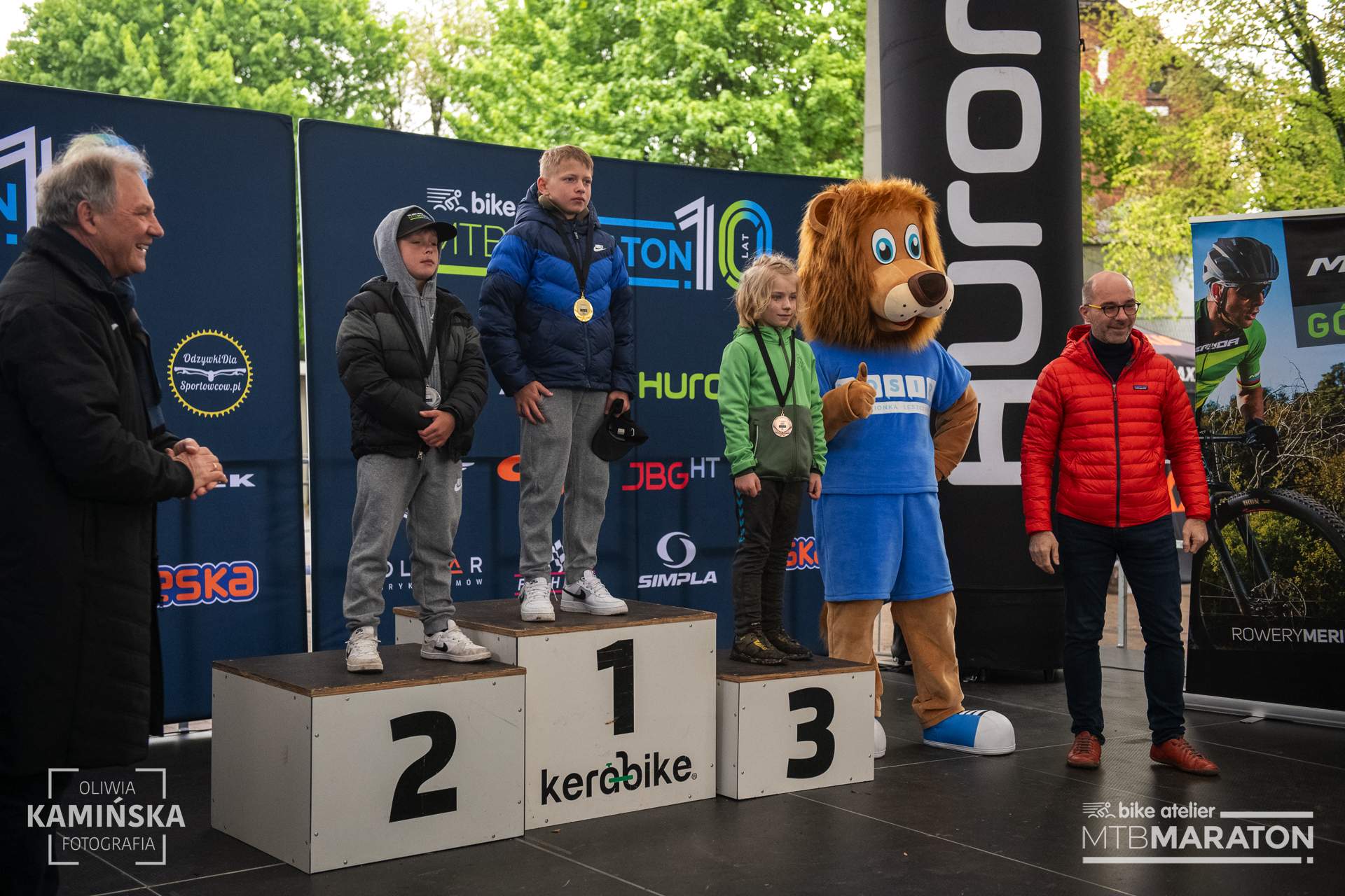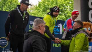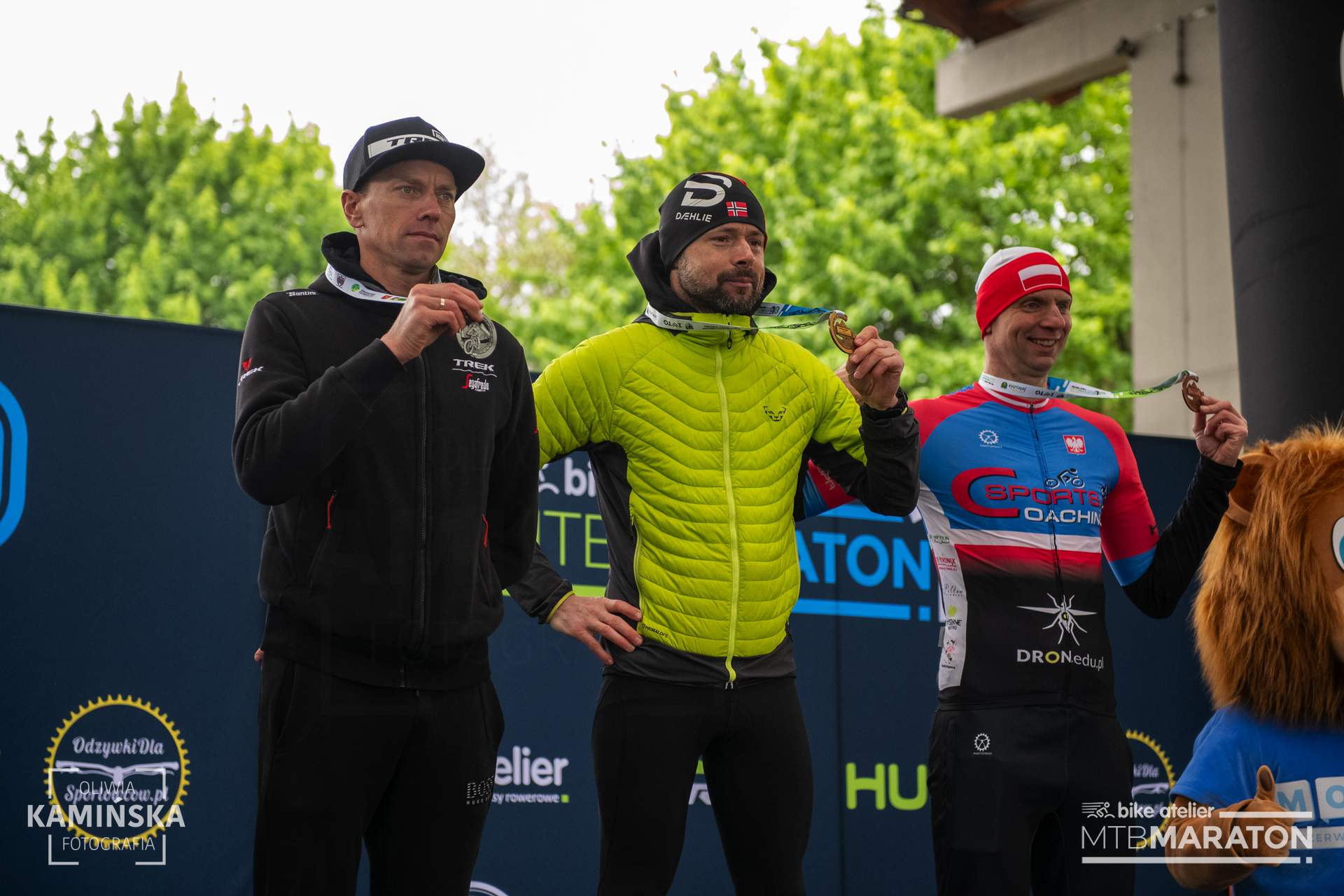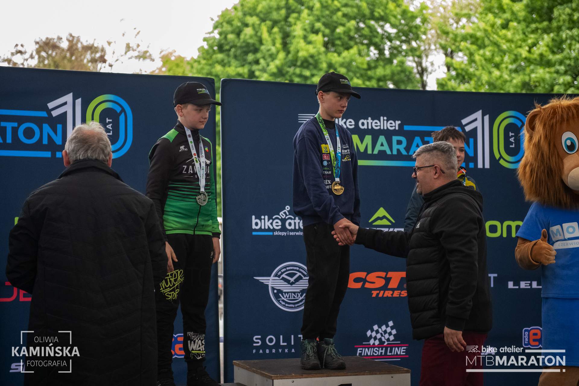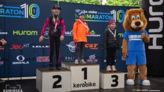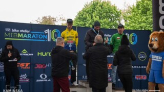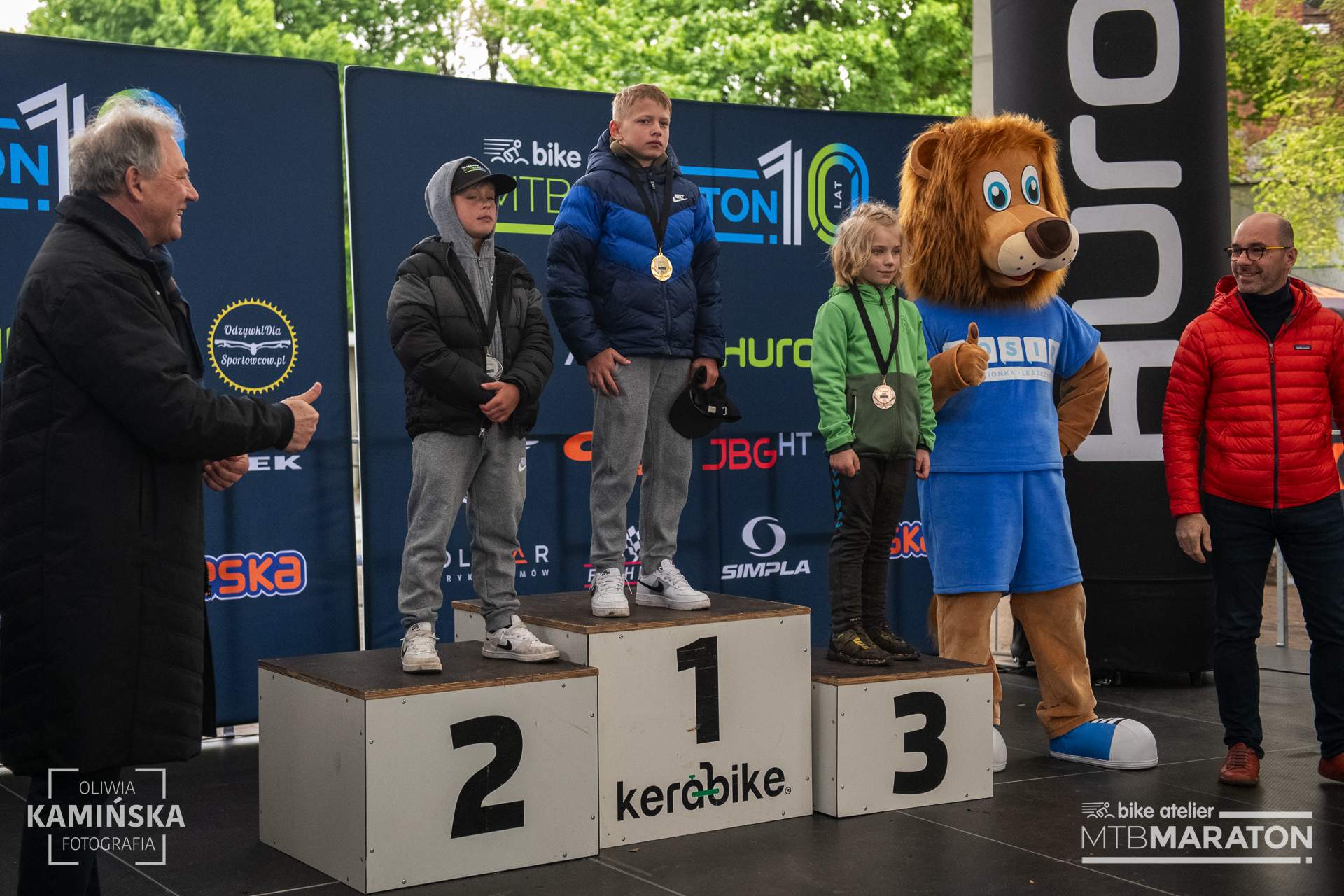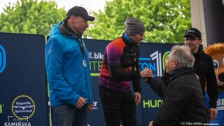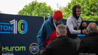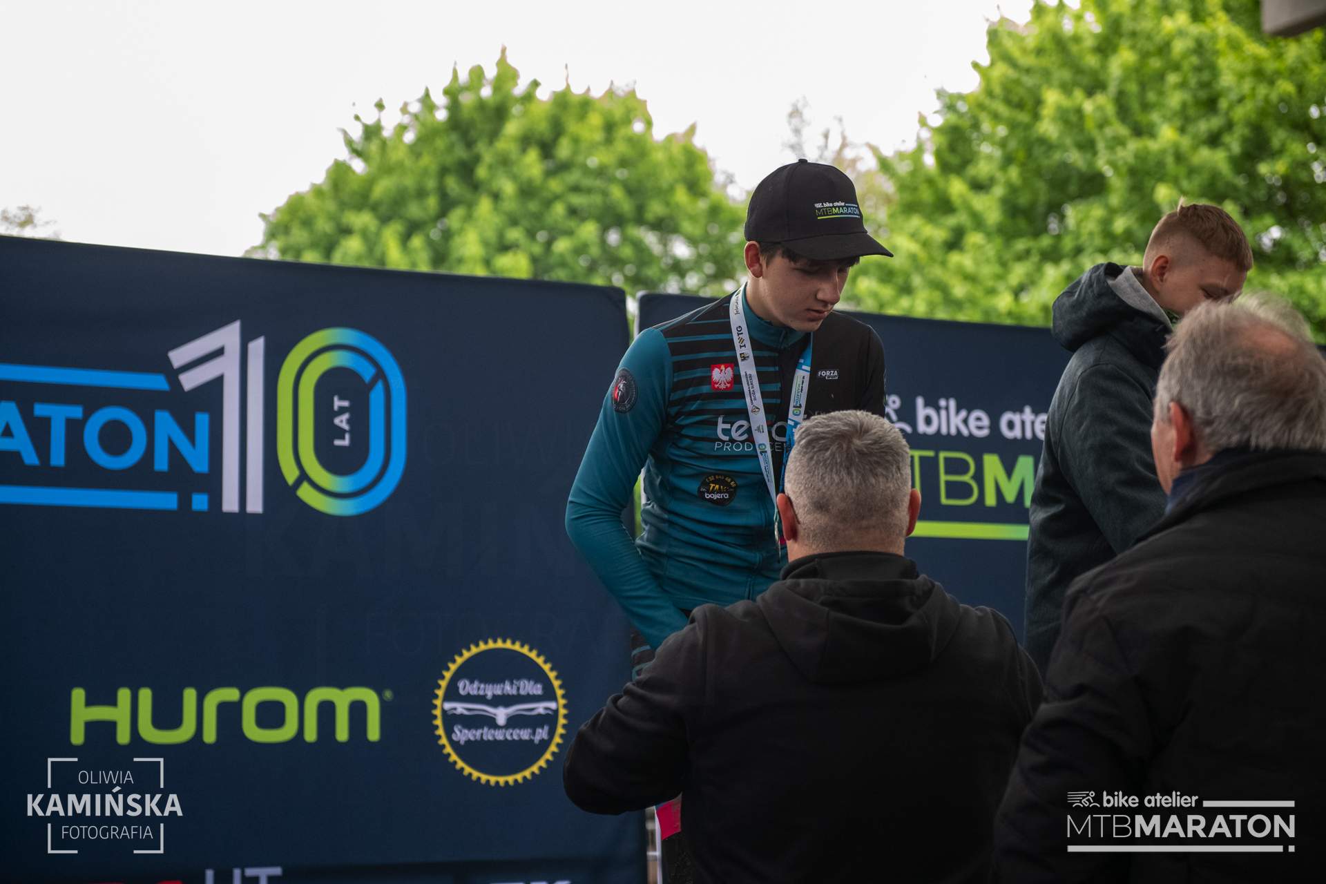 Ceremonie dekoracji najszybszych z najdzielniejszych zawodników, którzy wystartowali mimo surowych warunków na trasie maratonu w Czerwionce-Leszczynach. Foto: Oliwia Kamińska Fotografia