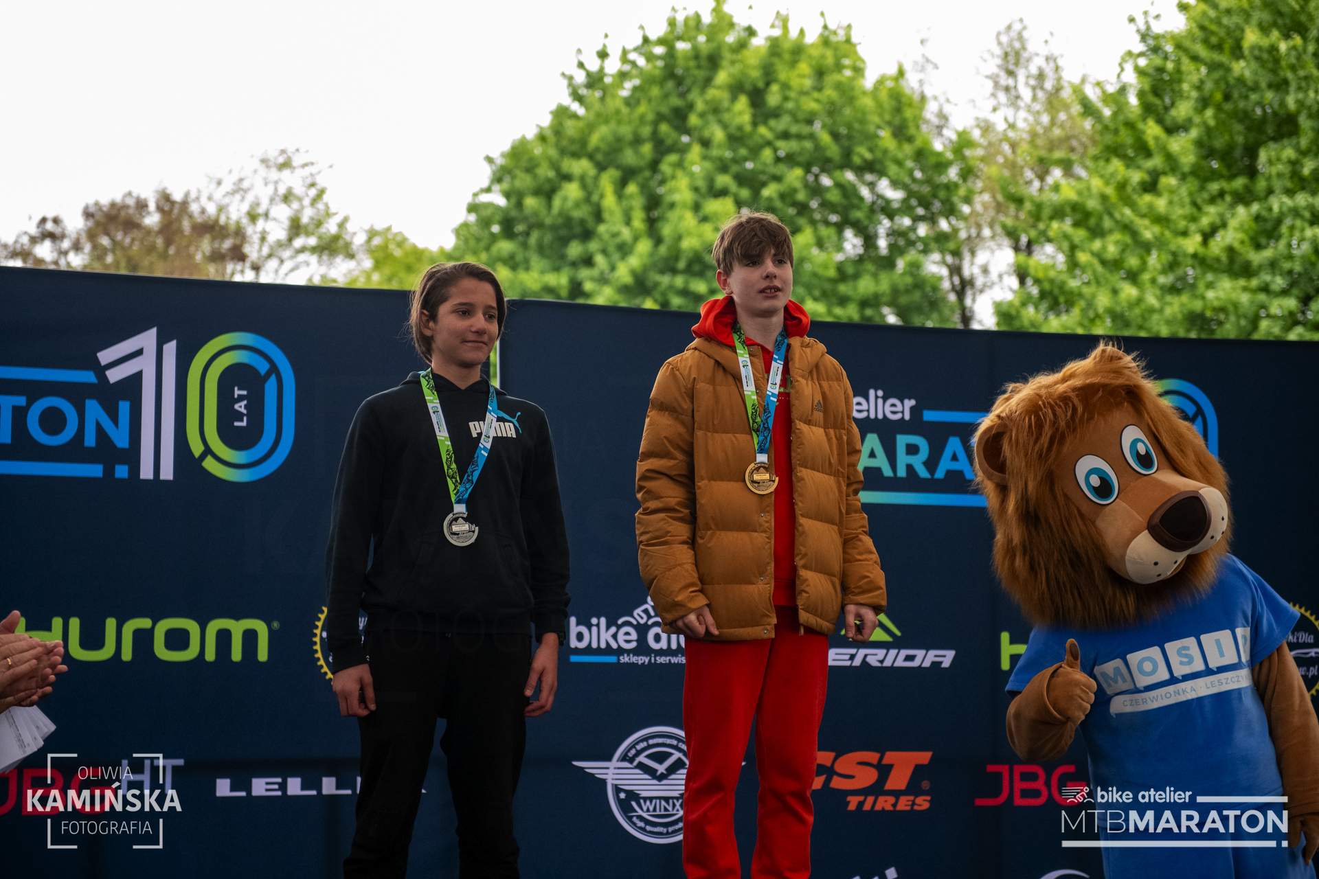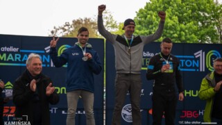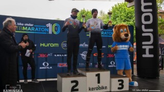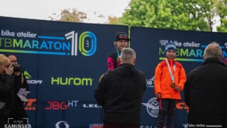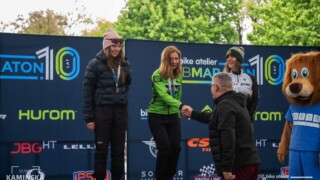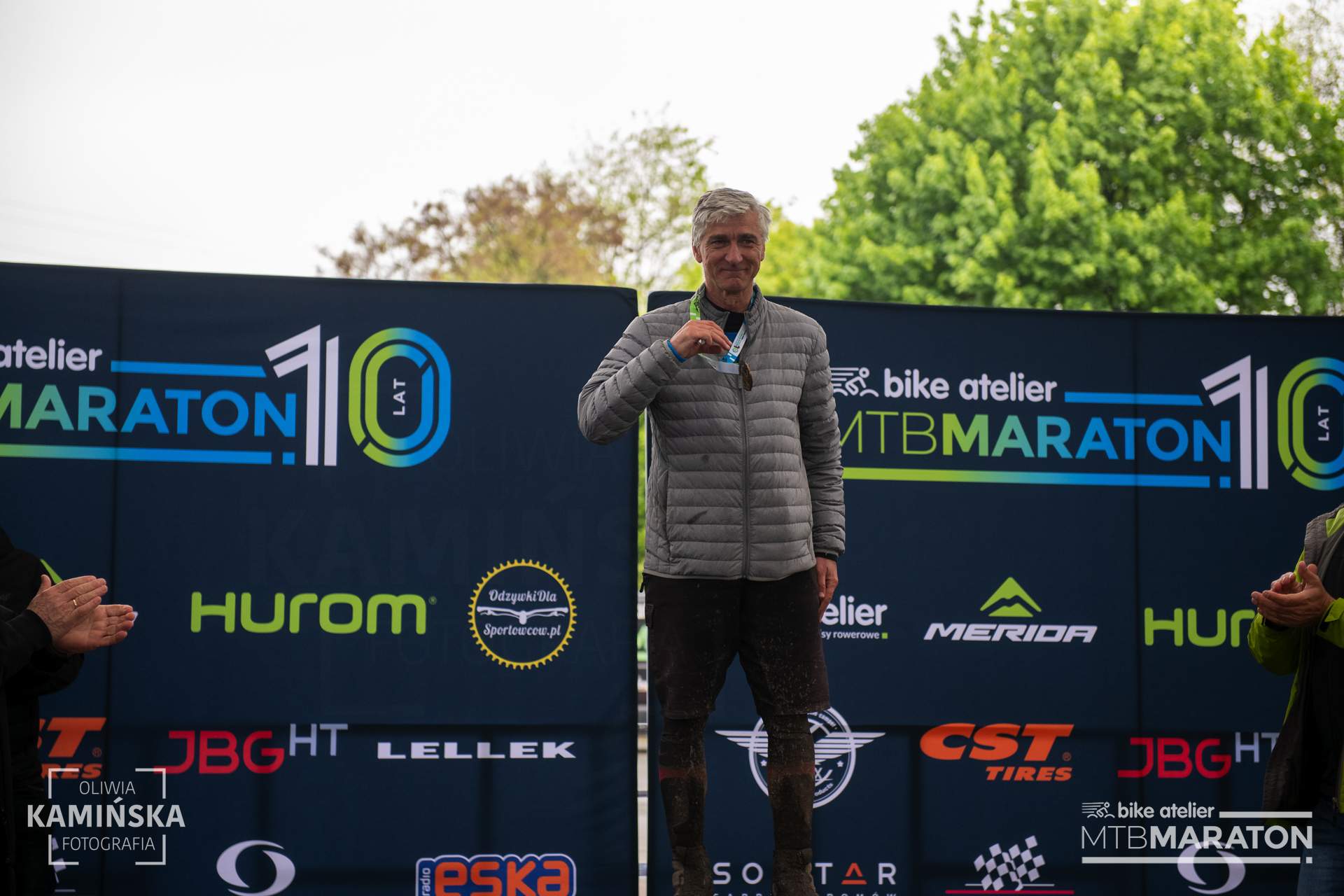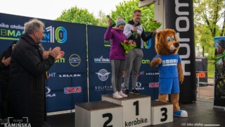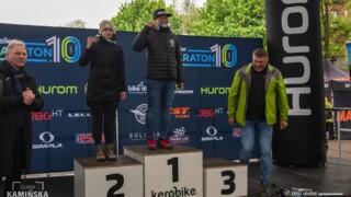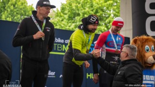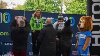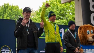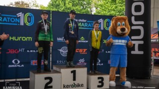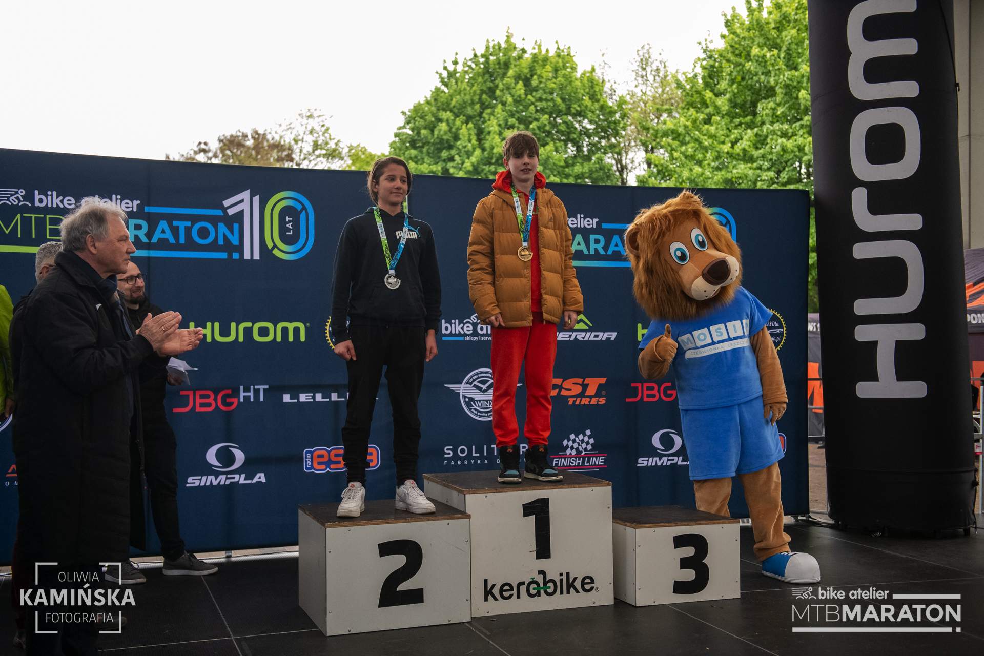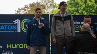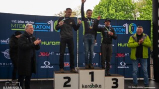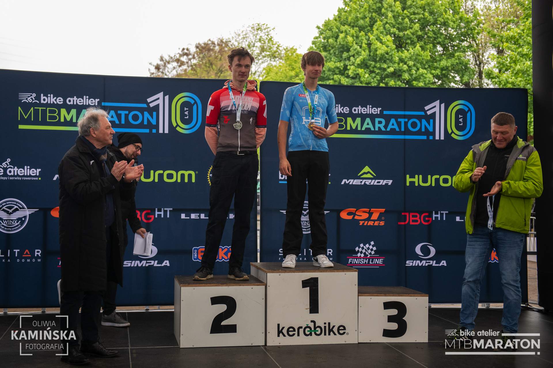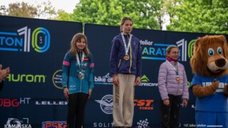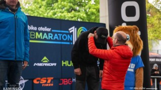 Ceremonie dekoracji najszybszych z najdzielniejszych zawodników, którzy wystartowali mimo surowych warunków na trasie maratonu w Czerwionce-Leszczynach. Foto: Oliwia Kamińska Fotografia
