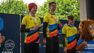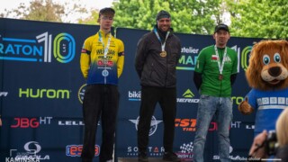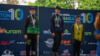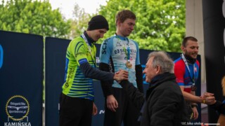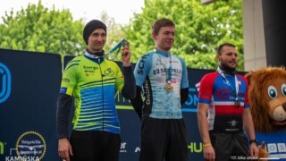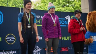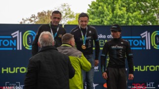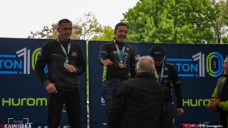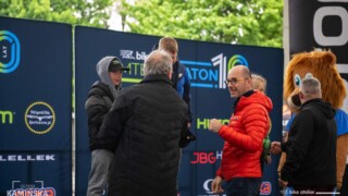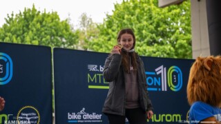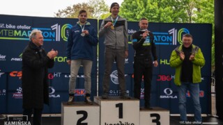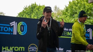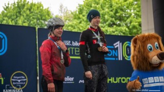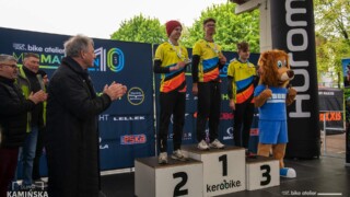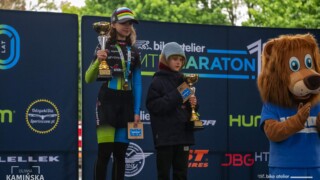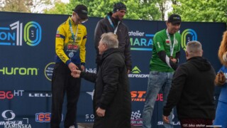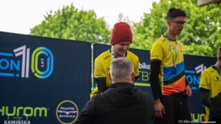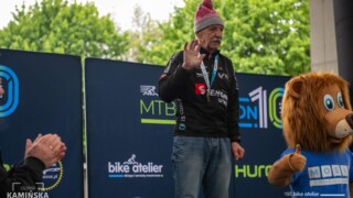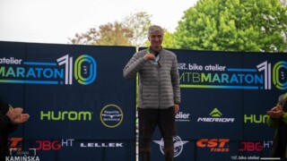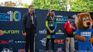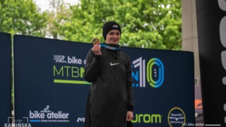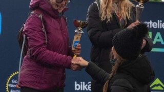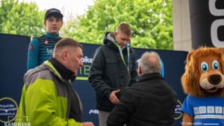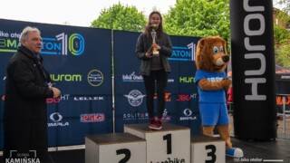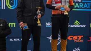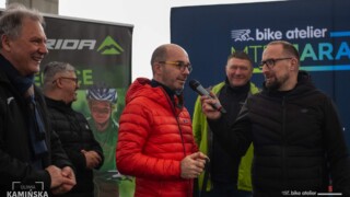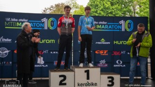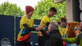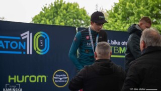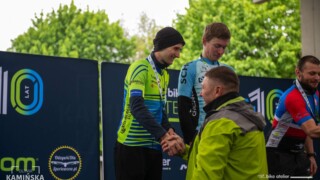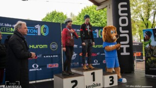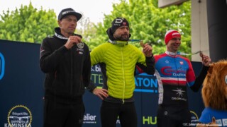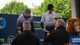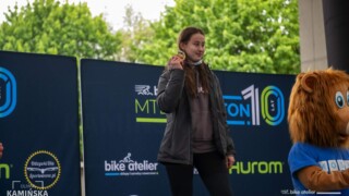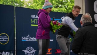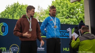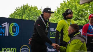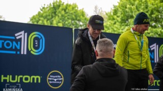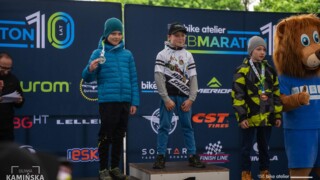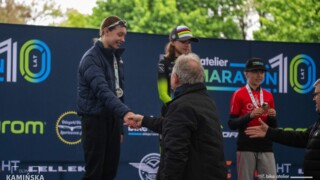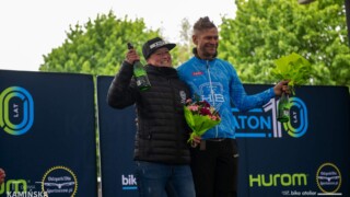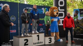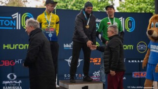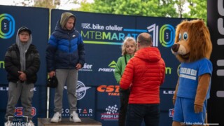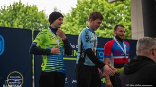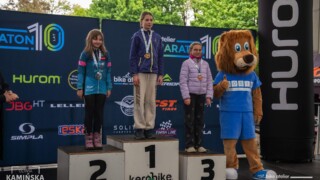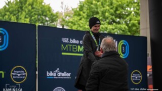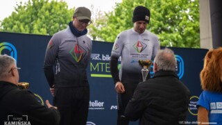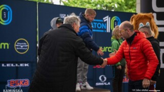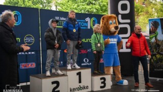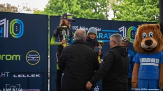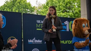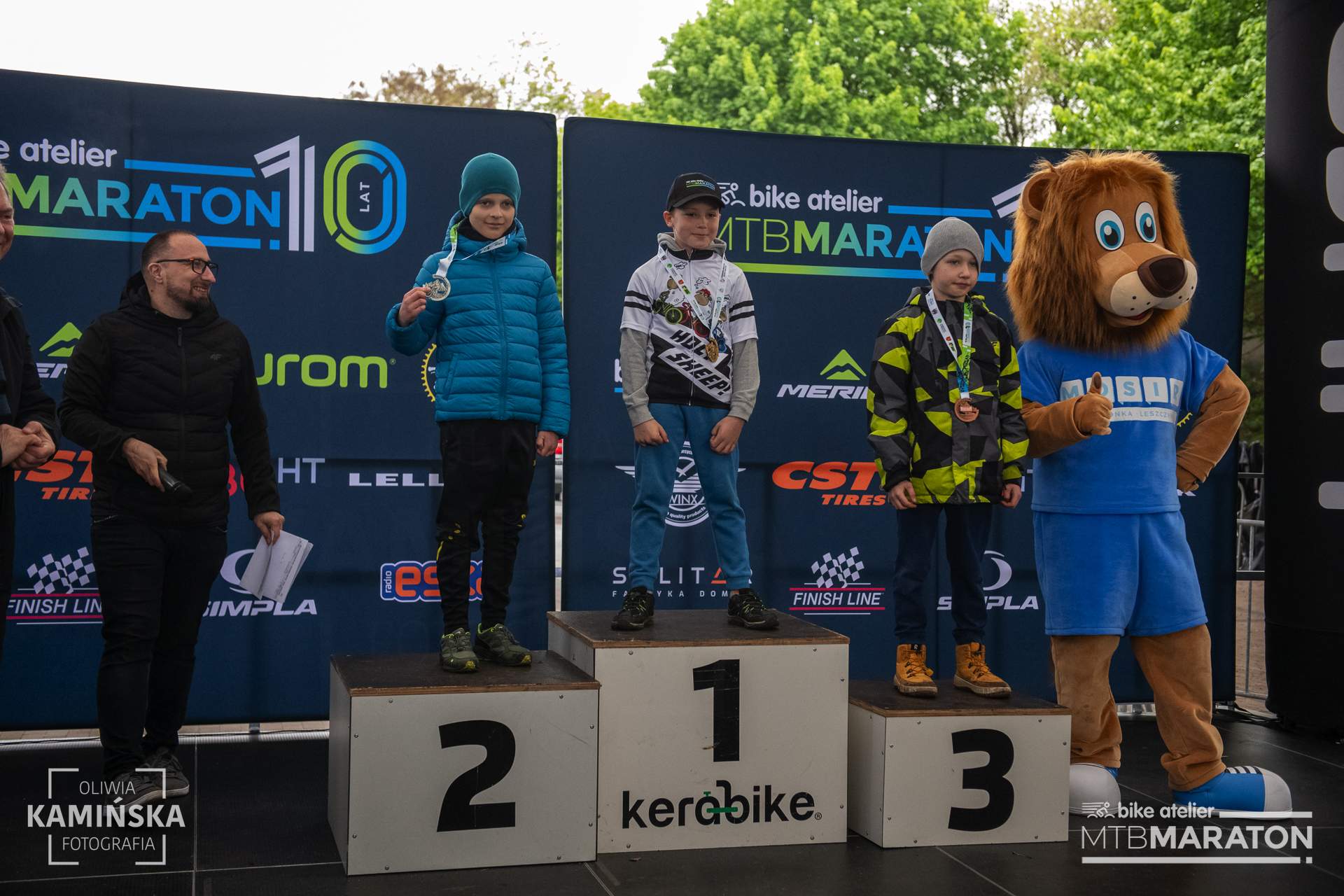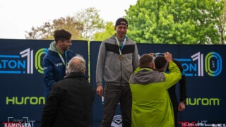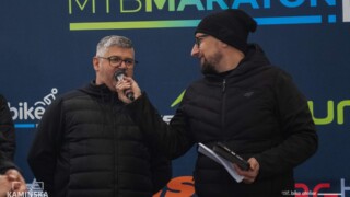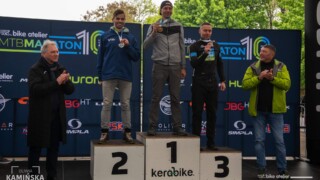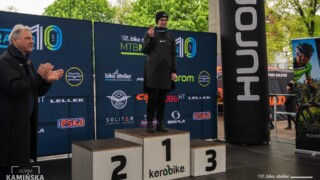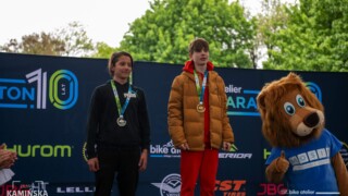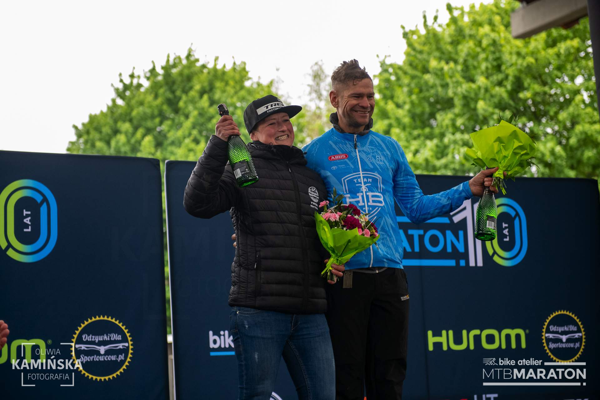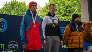 Ceremonie dekoracji najszybszych z najdzielniejszych zawodników, którzy wystartowali mimo surowych warunków na trasie maratonu w Czerwionce-Leszczynach. Foto: Oliwia Kamińska Fotografia